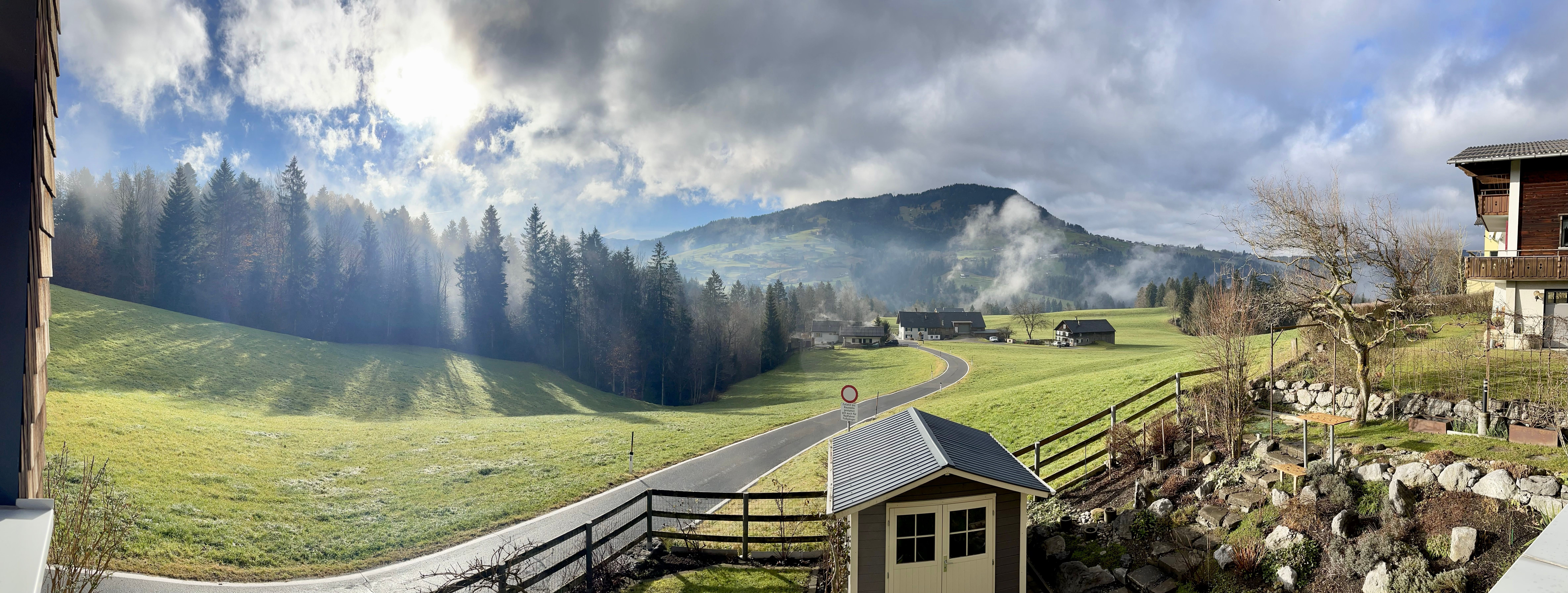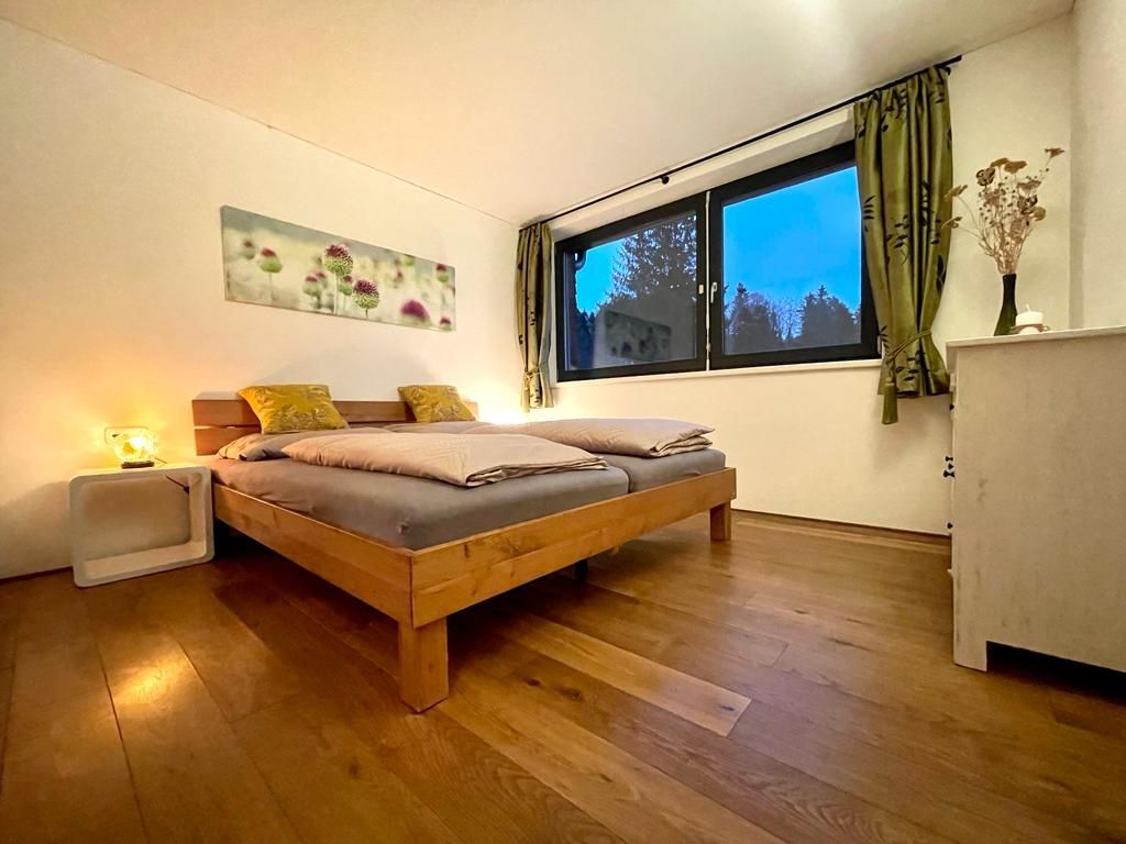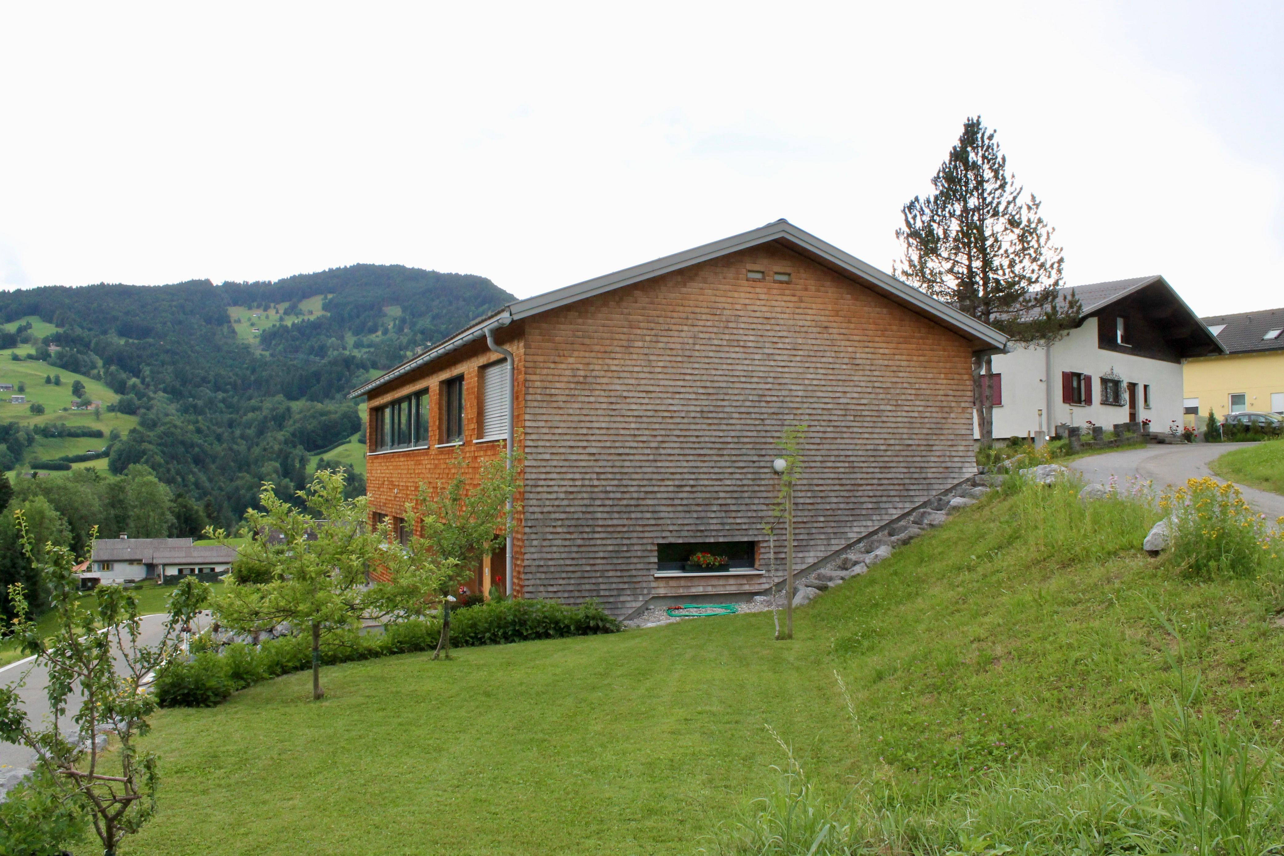 Vollholz Eichenboden und Fliesen, Fussbodenheizung, Erdwärmepumpe, Luftaustausch durch kontrollierte Be- und Entlüftung, moderne bregenzerwälder Bauweise mit Holzschindeln, hoher offener Wohnbereich mit Raumhöhe bis zu 4 m, moderner Holzofen, komplett ausgestattete Wohn-/ Essküche, Bad mit Badewanne und begehbarer Dusche, Schlafzimmer, Büro, überdachte große Terrasse nach Süden, direkter Zugang zum Garten, Parkplätze vor dem Haus