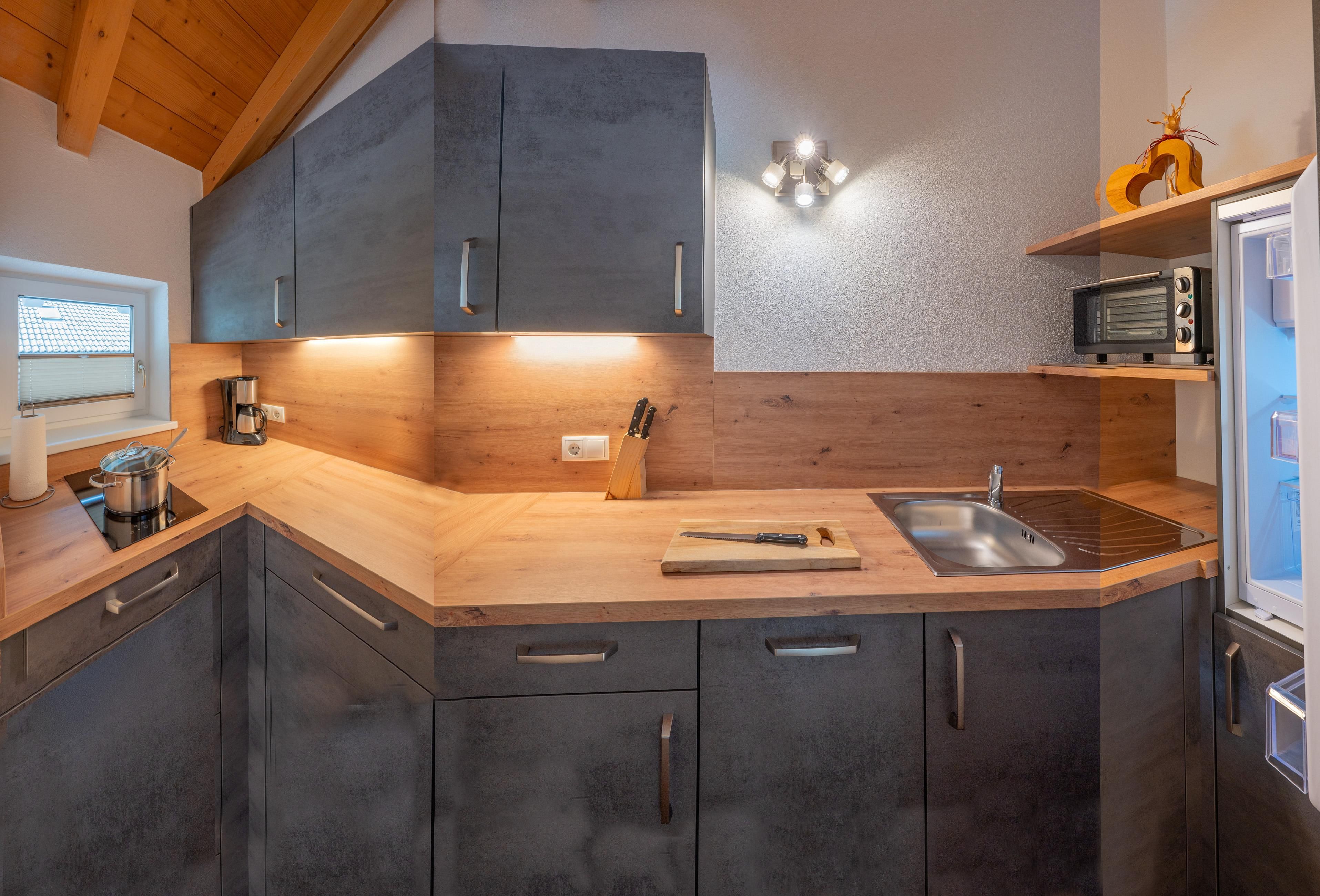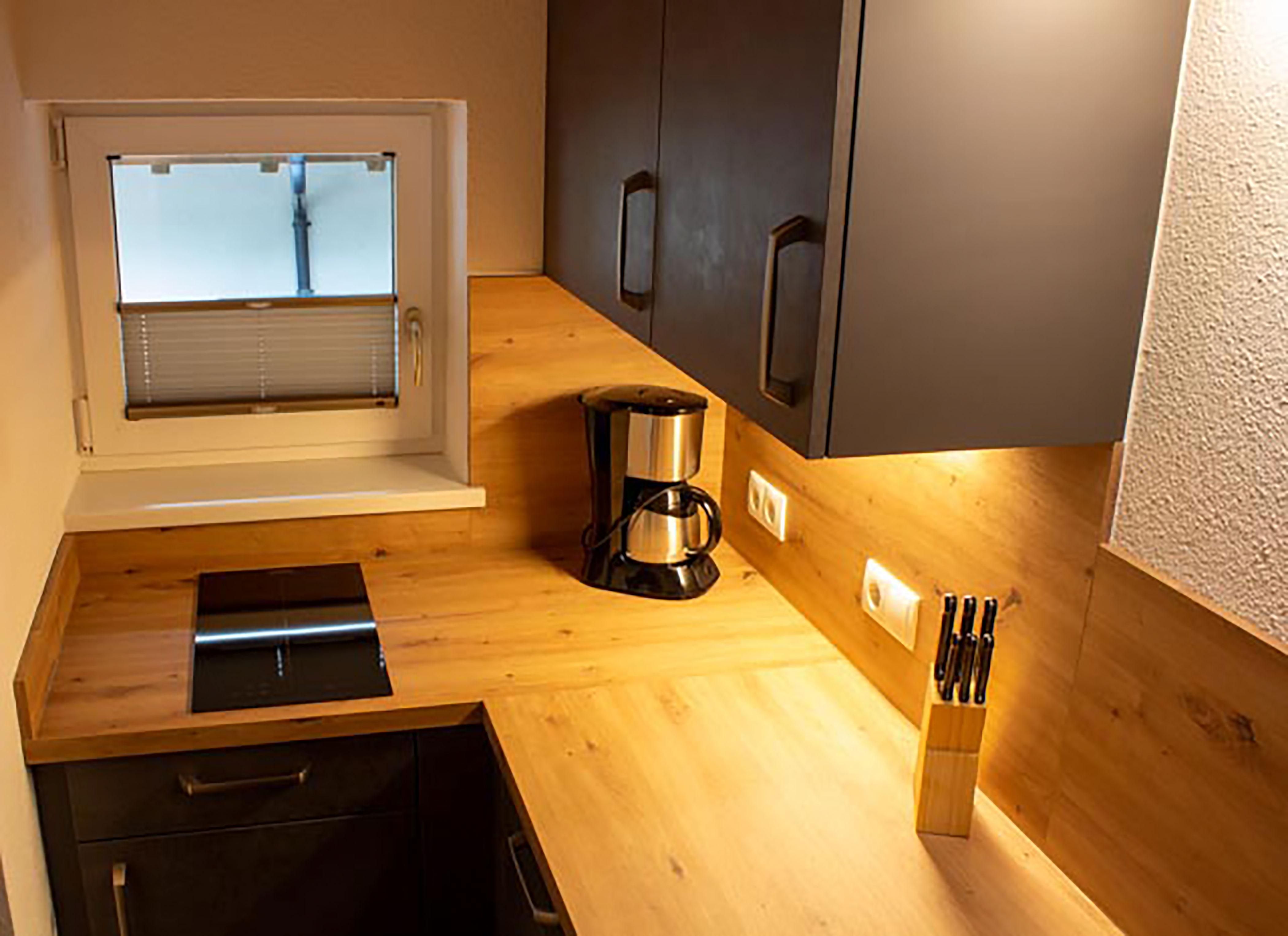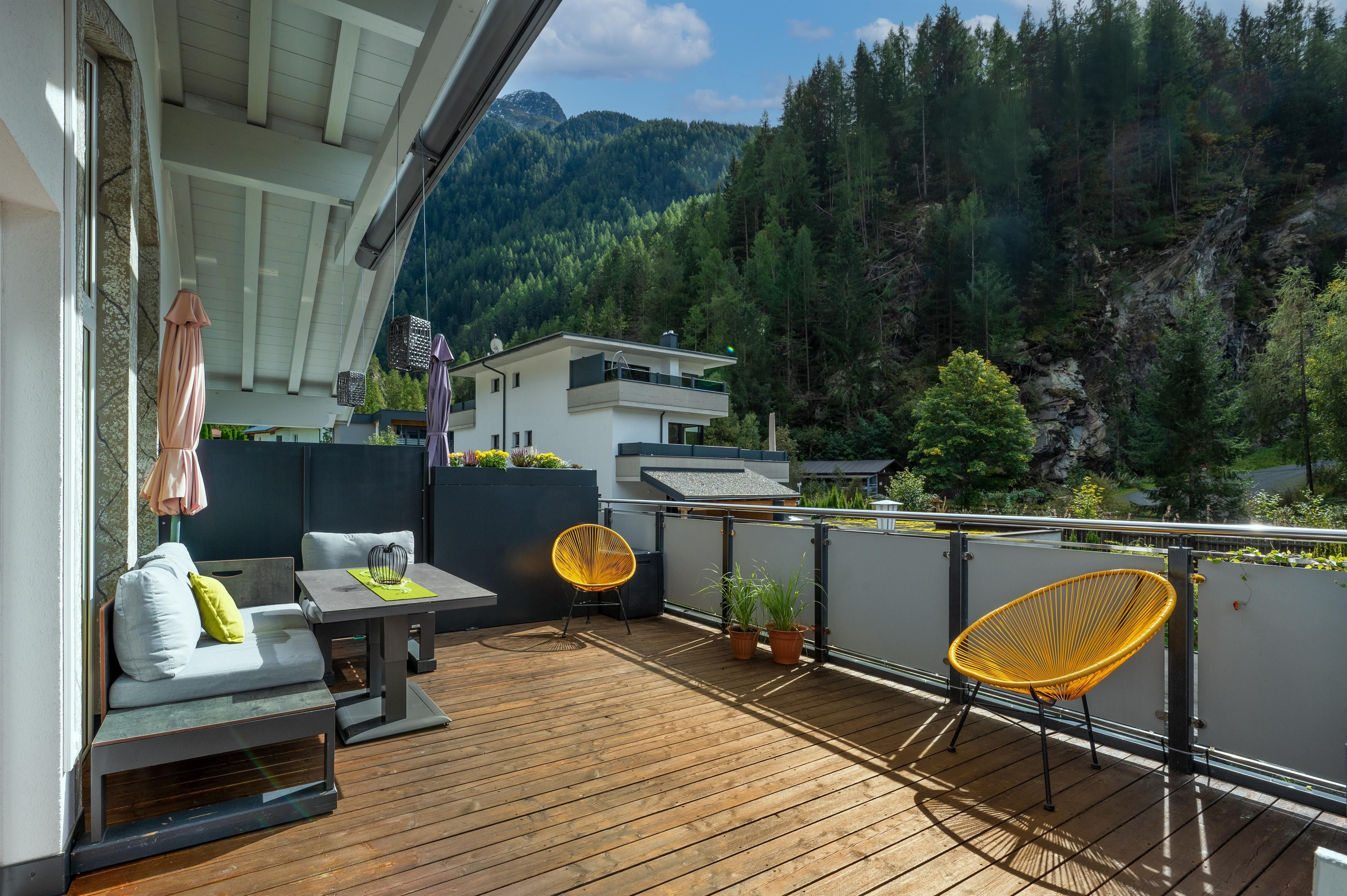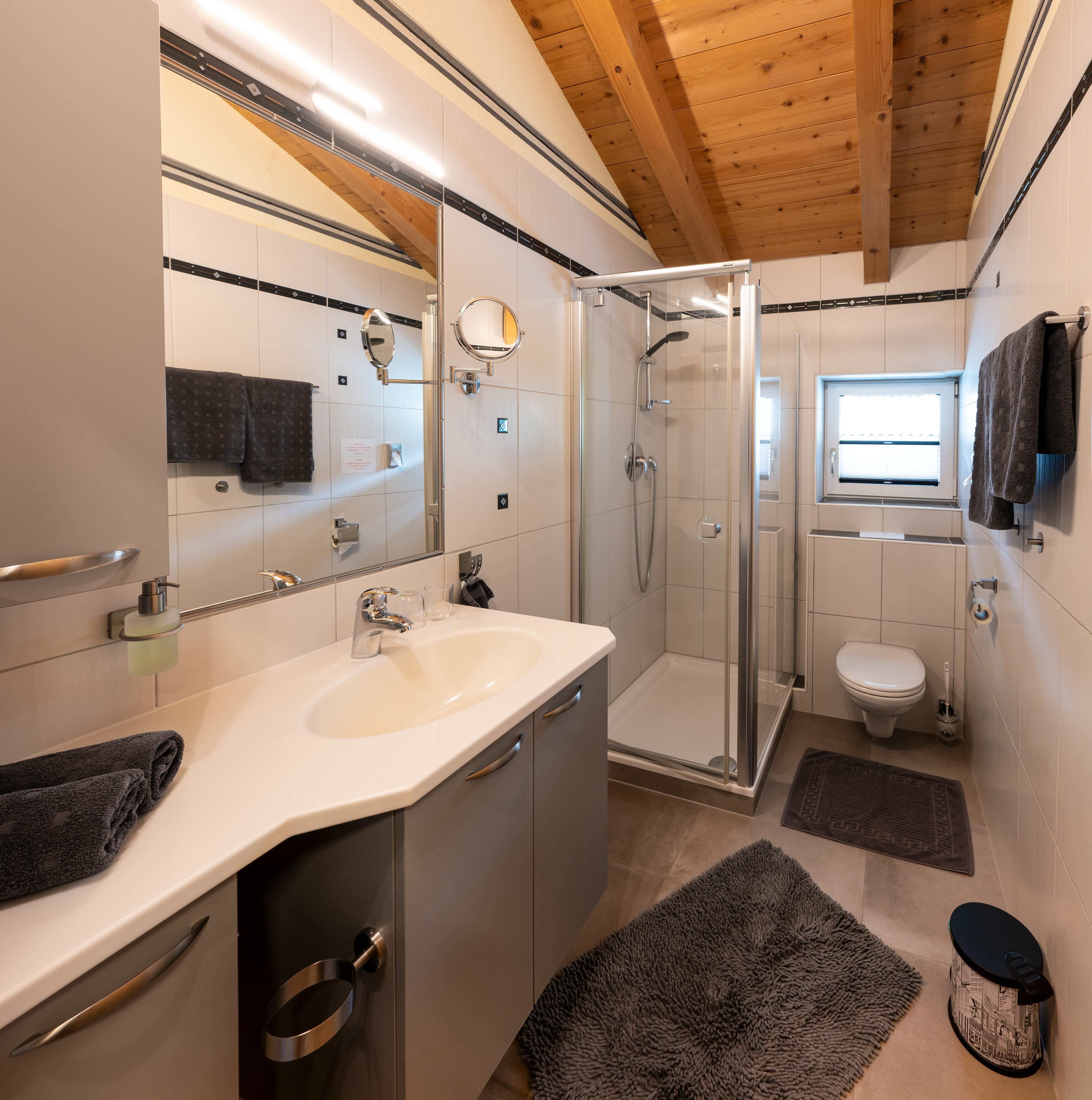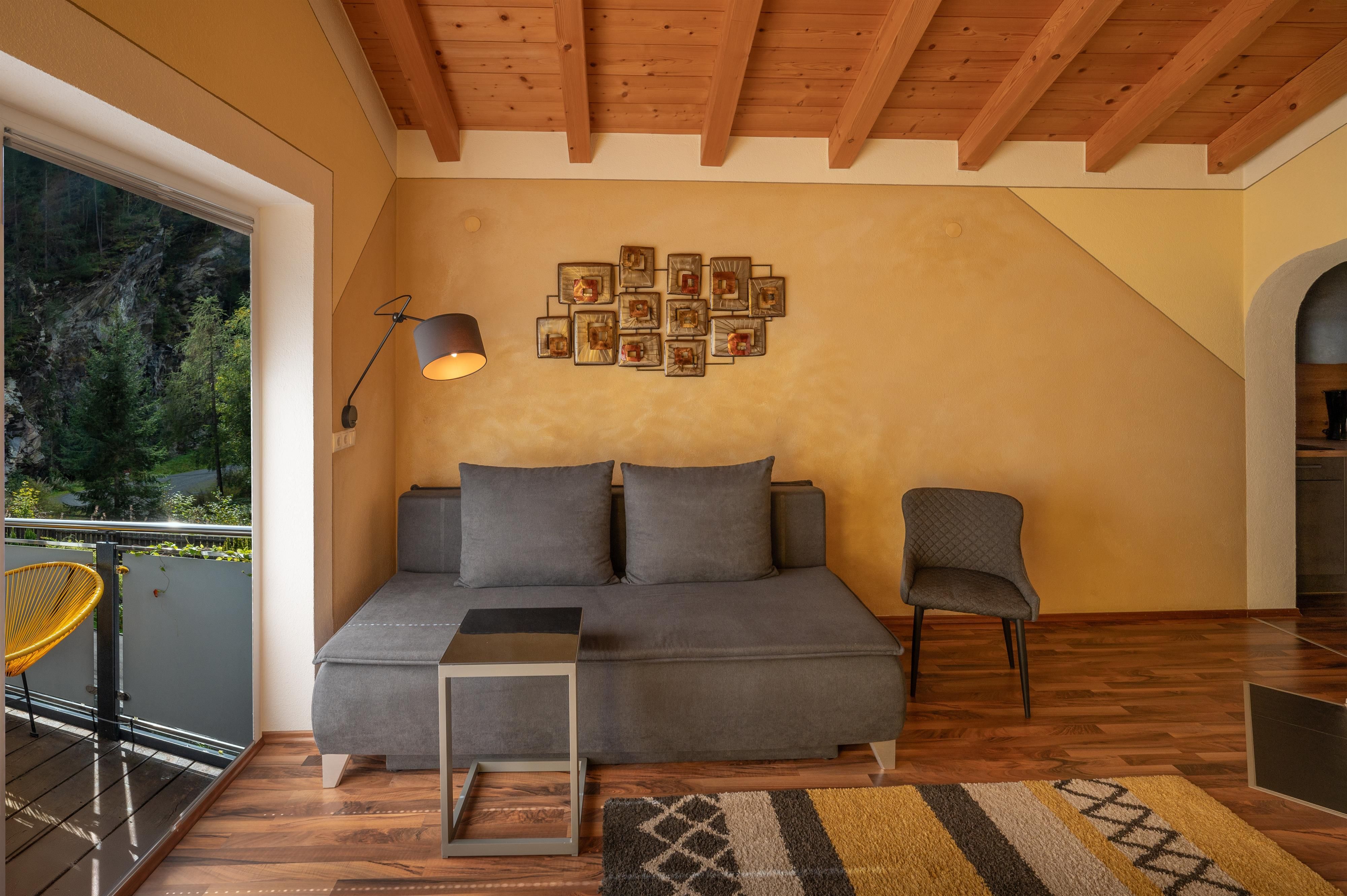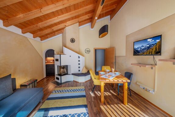 Eine großzügige, gemütlich möblierte Terrasse bietet unser Apartment Veranda. Ein eigenen Aufgang führt in den 1. Stock. Die herrliche Aussicht und die ruhige Lage - das sind die Highlights dieses Apartments. Es verfügt über (ca. 50 m²), eine Küche (Induktionsherd, Spülmaschine, Kühlschrank/Gefrierfach, Mikrowelle, Filter-Kaffee Maschine uvm.). Im Wohnzimmer befindet sich ein gemütlicher Kachelofen - der auf Wunsch beheizt wird - ein großzügiger Esstisch, Flat-TV und riesige Panoramafenster sowie ein ausziehbares Boxspringbett (1,80 m). Doppelbett mit großem Kleiderschrank, separates Badezimmer mit Dusche und WC.