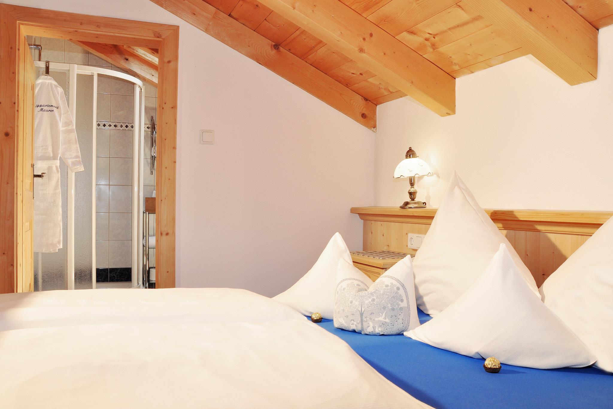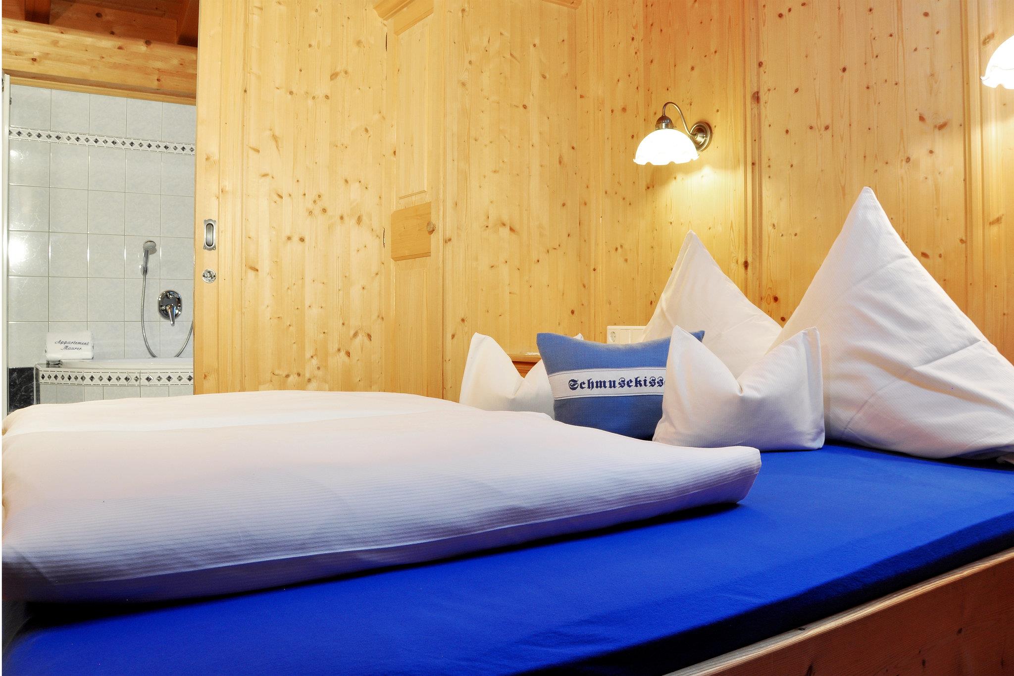 Unser Appartement für 2 Personen ist in Naturholz eingerichtet. Ein Doppelbett mit Bad/WC befindet sich angebunden an die komplett eingerichtete Küche mit Geschirrspüler, Backrohr, Kaffeemaschine, Wasserkocher, Eierkocher und Toaster. Im Wohnbereich gibt es einen Kachelofen, Sat-TV, Radio und einen Balkon.