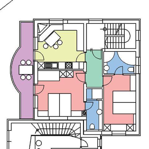 1 Doppelzimmer mit Bad und Dusche, WC und 1 Doppelzimmer mit gemütlichem Sofa, Dusche, WC und Balkon. Größe ca. 65 m²