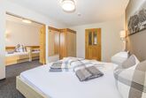 3-Zimmer-Wohnung ca.90 m². 1Doppelbett Zimmer, 1 grosses Schlafzimmer mit einer Schiebetüre trennbar, 2 Badezimmer mit Dusche/WC - eines davon mit Badewanne. Über die ganze Länge der Wohnung ist ein Südbalkon. Küche (4 Ceranfelder, Backofen, Geschirrspüler, Kaffeemaschine, Toaster)Eßtisch, Radio.