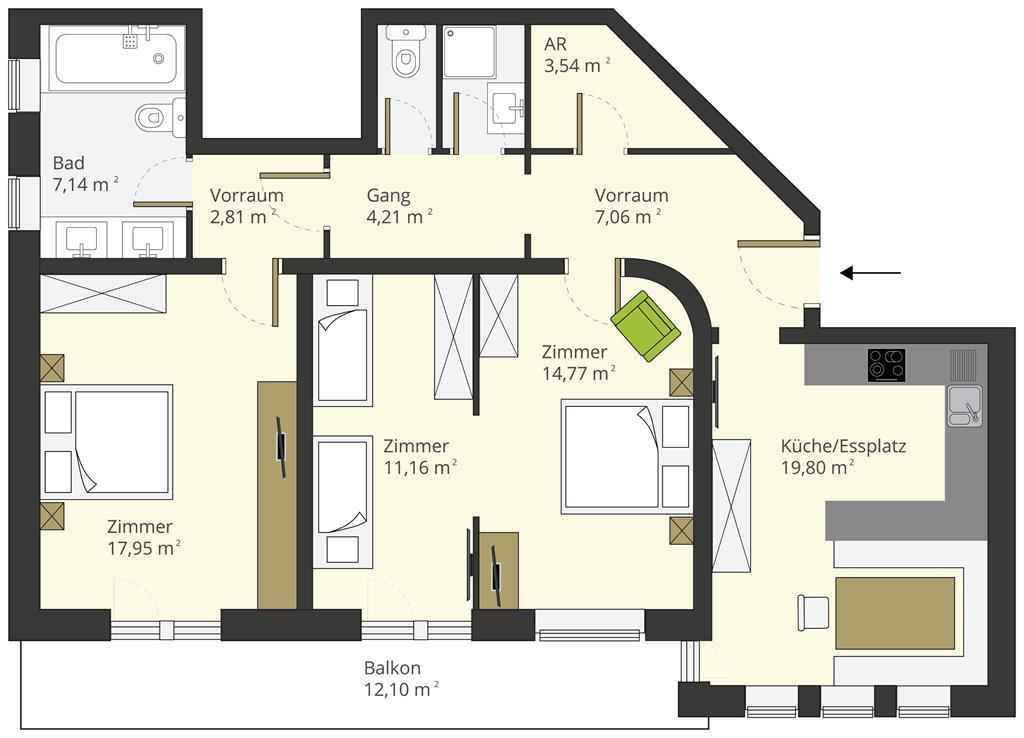 - Wohn/Schlafraum kombi.