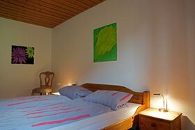 * 1 Schlafzimmer mit Doppelbett und Wendelsteinblick