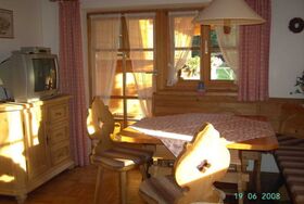 Die gemütlich eingerichtete Ferienwohnung eignet sich für 1-5 Personen. Sie verfügt über 1 separates Schlafzimmer(ausgestattet mit Teppichboden, Doppelbett 200x200), Wohnschlafraum (1 Schlafcouch für 2 Personen und ein Klappbett) und einer offenen Küche. Das Bad ist neben Dusche und WC noch mit einer Fußbodenheizung ausgestattet. Bettwäsche sowie Hand-/Geschirrtücher befinden sich in der Wohnung. Der nach südwesten ausgerichtete Balkon bietet einen herrlichen Bergblick und lädt zum Sonnen ein.