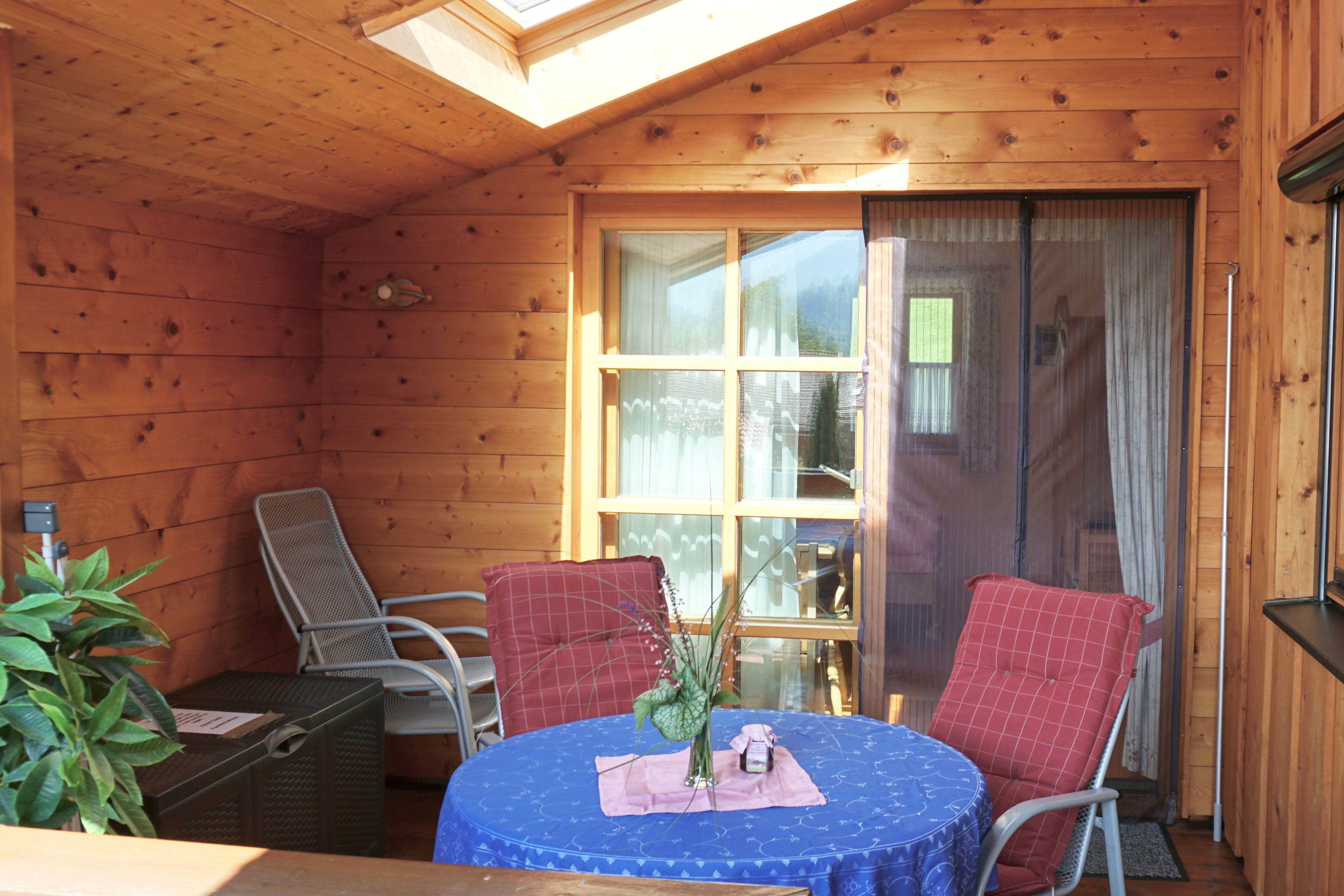 Die zur Wohnung gehörende überdachte Loggia (ca. 15 qm) bietet Ihnen eine traumhafte Aussicht auf den Ort und freien Bergblick. Selbstverständlich stehen Ihnen Sat-TV, Highspeed-DSL- und Telefonanschluss sowie die hauseigene Sauna zur Verfügung.