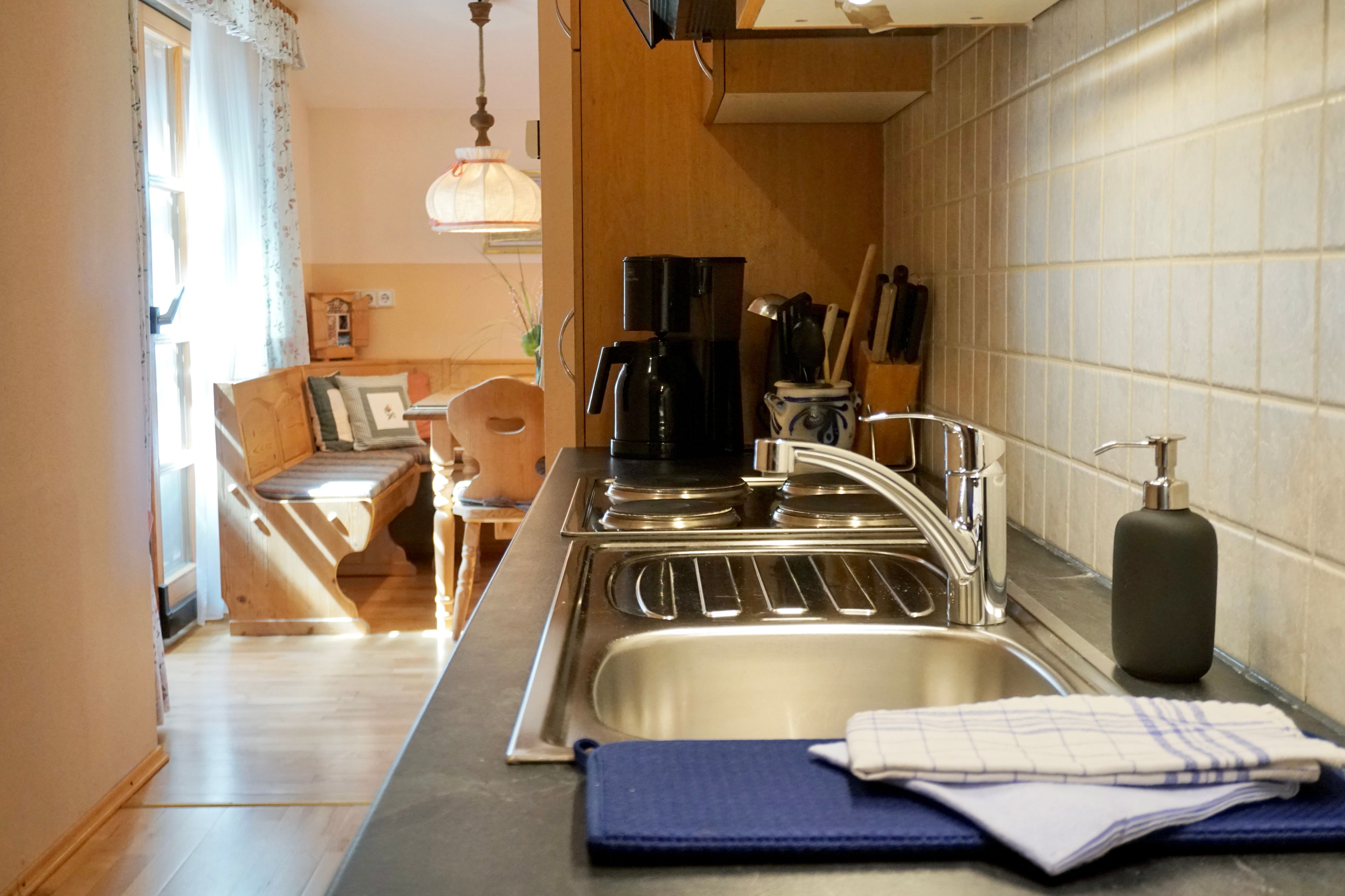 Die Ferienwohnung besteht aus einem Wohnschlafraum, einer großen, gut eingerichteten Küche und einem komfortablen Bad.