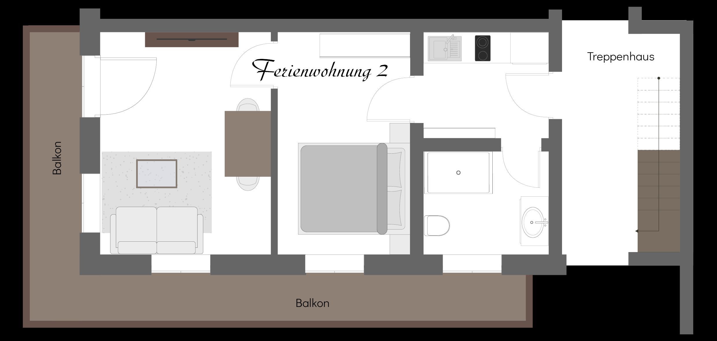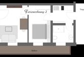 Ferienwohnung mit Schlafzimmer, Wohnzimmer, Küche, Dusche / WC, Kabel - TV, 1. Stock - Ostseite (43 qm)