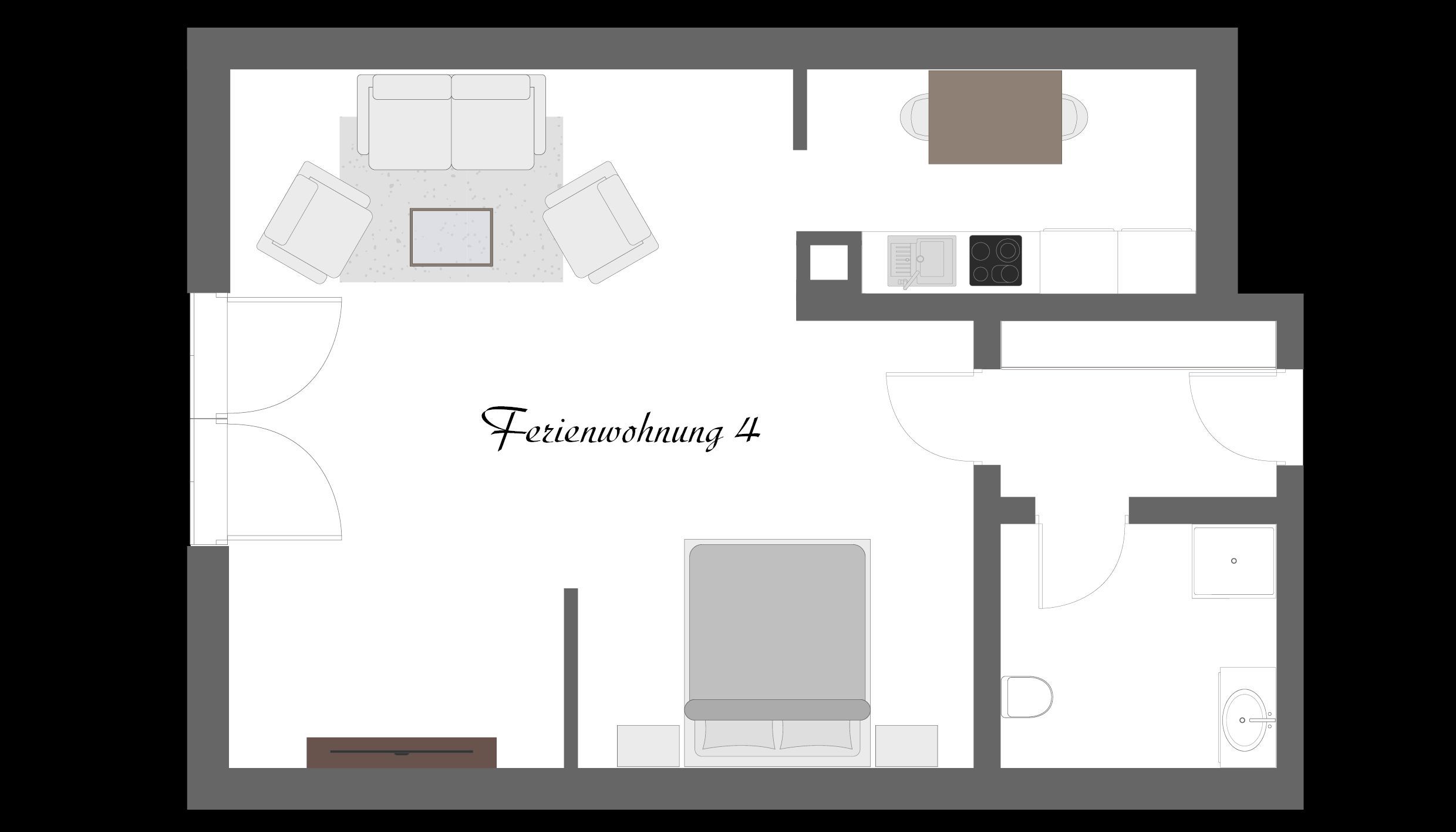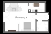 Ferienwohnung mit geräumigem Wohn-/Schlafzimmer, Küche, Dusche / WC, Kabel - TV, 2. Stock - Ostseite (45qm)