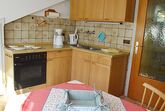 Küche komplett eingerichtet, vier Kochplatten mit Backofen,