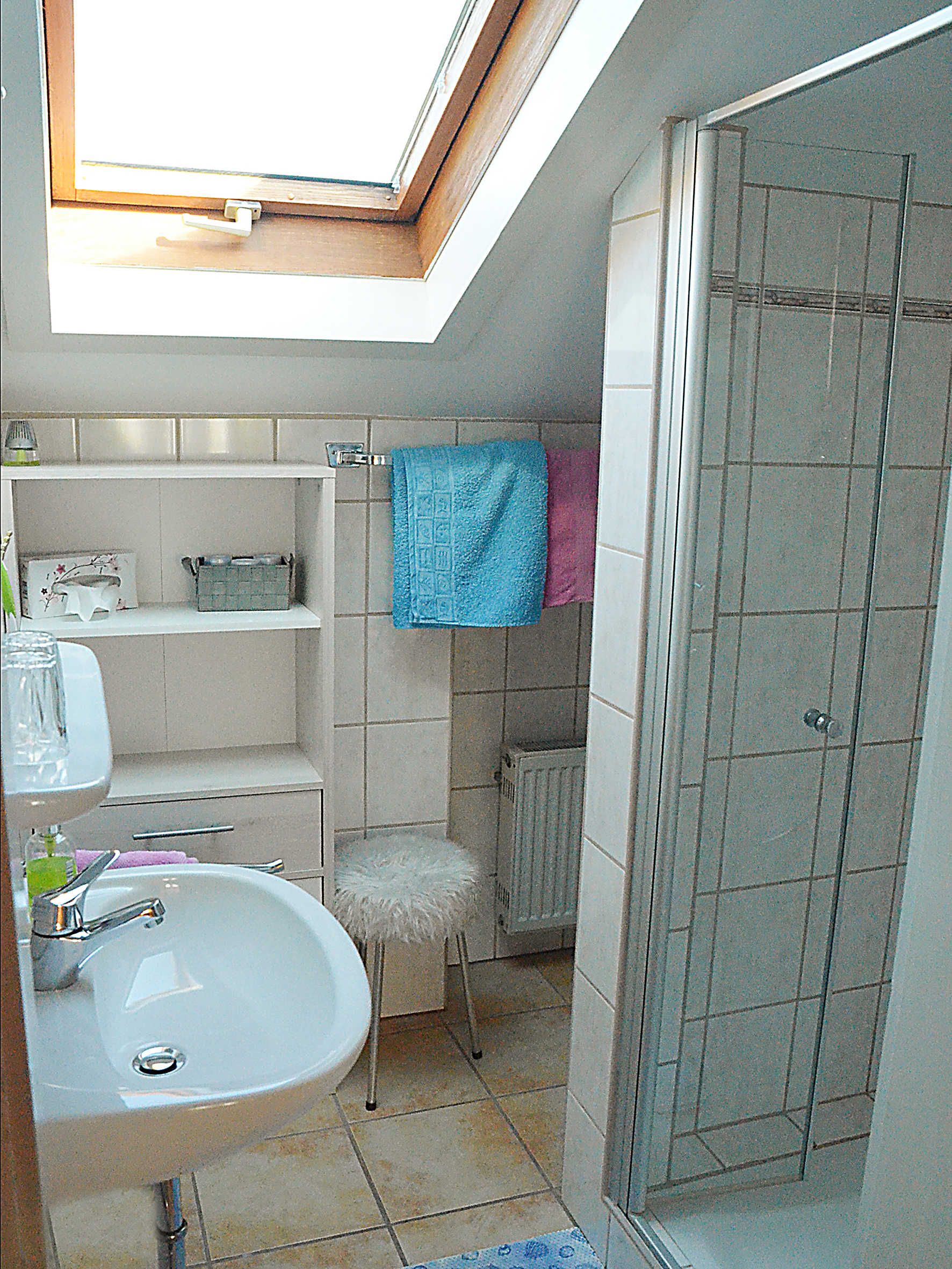 Bad mit Dusche, Föhn, Handtücher, seperates WC