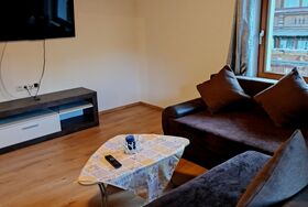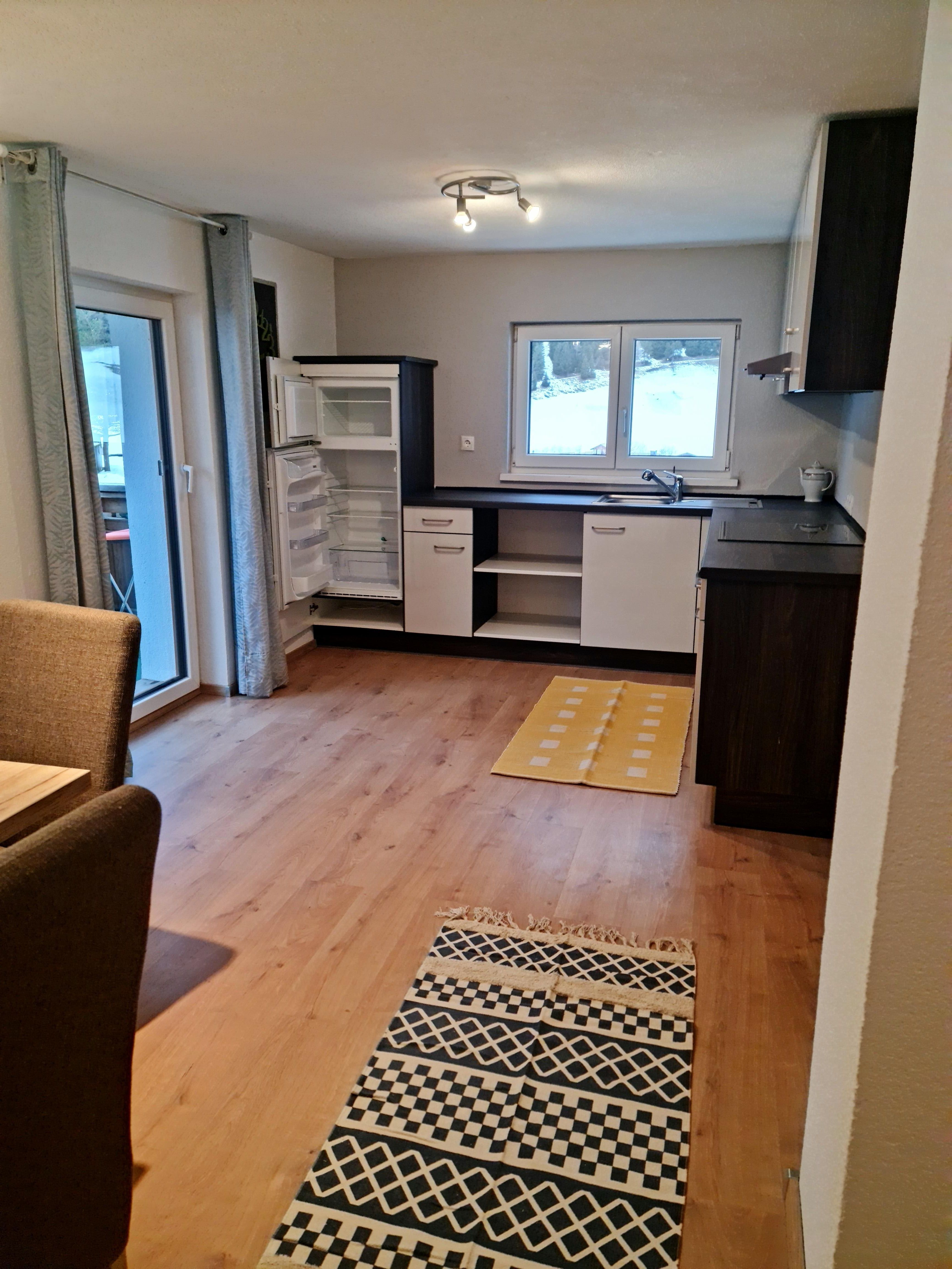 NEUES Appartement (ca. 70 m²) besteht aus 1 Dreibettzimmer, 1 Badezimmer mit Dusche und Badewanne/WC, 1 vollausgestatteten Wohnküche (Cerankochfeld, Backofen, Kühlschrank mit Gefrierfach, Toaster, Wasserkocher uvm.) mit Flat-TV und ausziehbarer Schlafcouch (für die 4. und 5. Person.) Genießen Sie die Ruhe und den traumhaften Ausblick auf unserem möblierten Balkon.