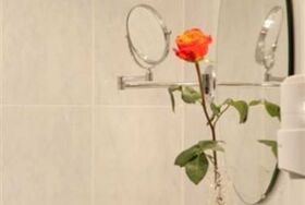 Schlafzimmer, Dusche, WC, Haarfön. Kosmetikspiegel