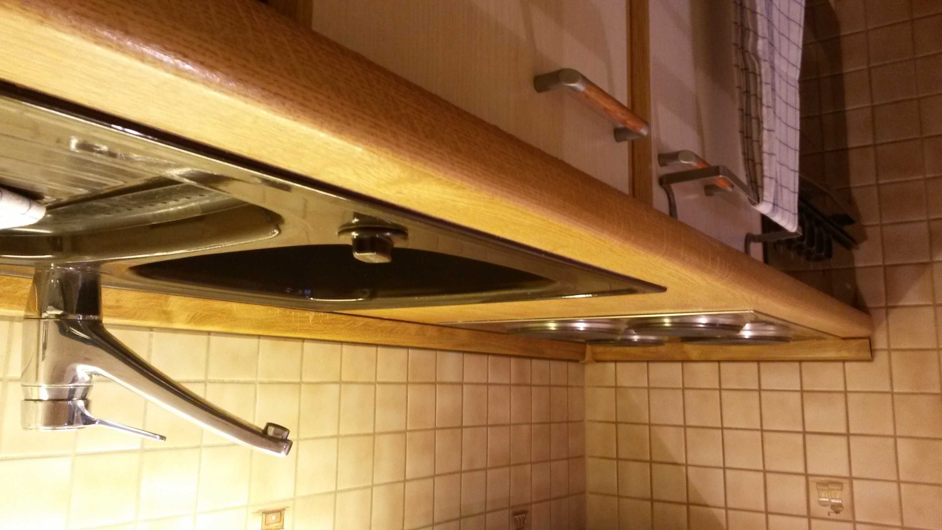 Die Küche verfügt über einen 4-Plattenherd mit Dunstabzugshaube, Backofen, Kühlschrank, Wasserkocher, Kaffeemaschine.