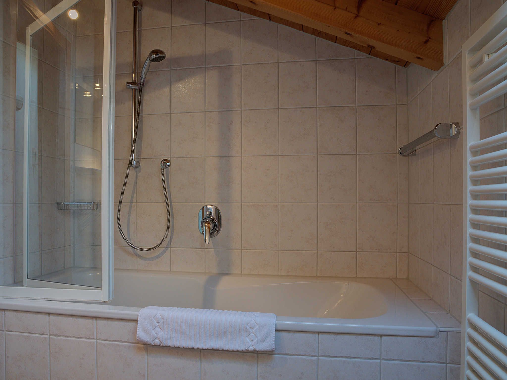 Im Schlafzimmer erwartet Sie ein bequemes Doppelbett, ein geräumiger Kleiderschrank, das Bad ist mit einer Badewanne und zusätzlicher aufklappbarer Glasduschwand ausgestattet und verfügt über ein Fenster.