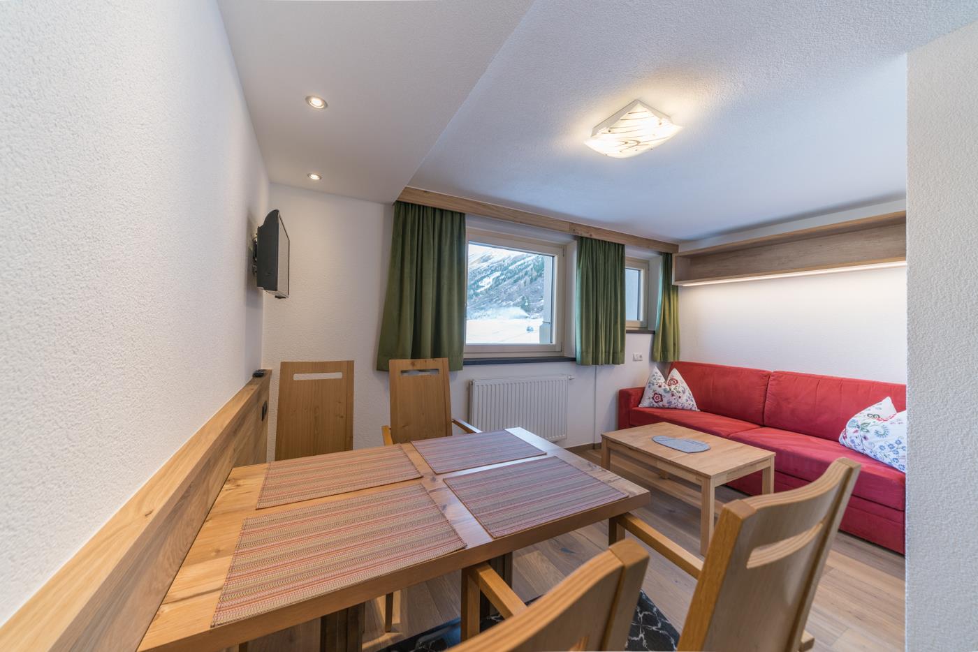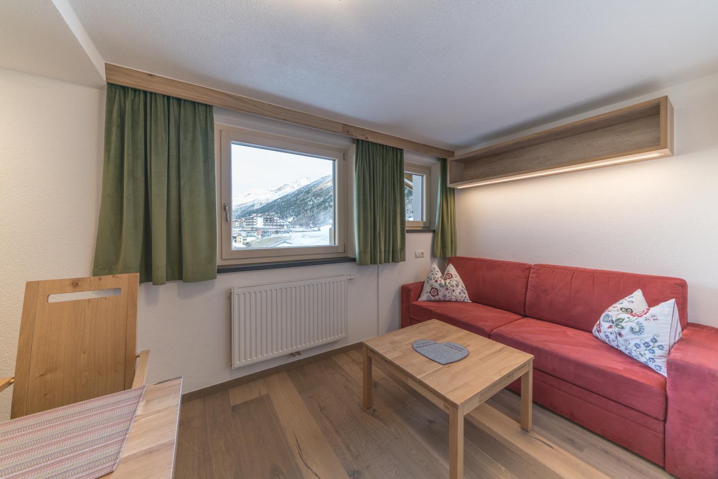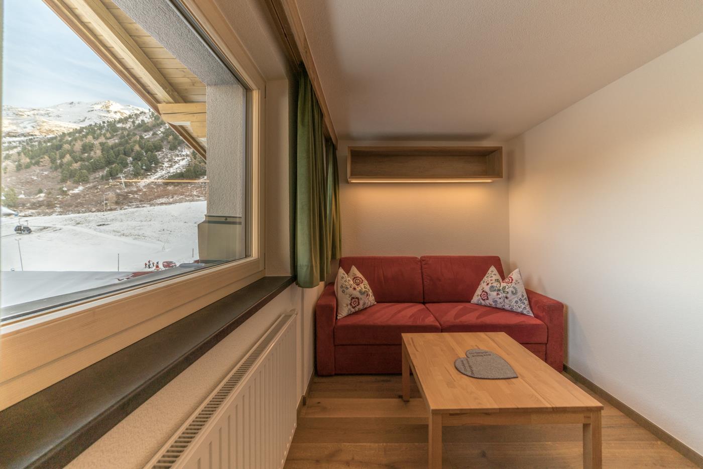 40m²; Traumhafter Ausblick nordseitig über Obergurgl, hoch hinaus bis zum Kirchenkar in Hochgurgl. Heimeliges Apartment mit hochwertiger Einrichtung mit Echtholzmöbel und Böden. 1 Schlafzimmer mit Netzfreischalter und Boxspringbett, Safe, 1 Badezimmer mit Walk-In Dusche und WC, Handtücher & Haar Fön, Soda Stream, 2 x Flachbildschirm mit Kabel-TV, Wohnzimmer mit Doppelschlafcouch und Esstisch.