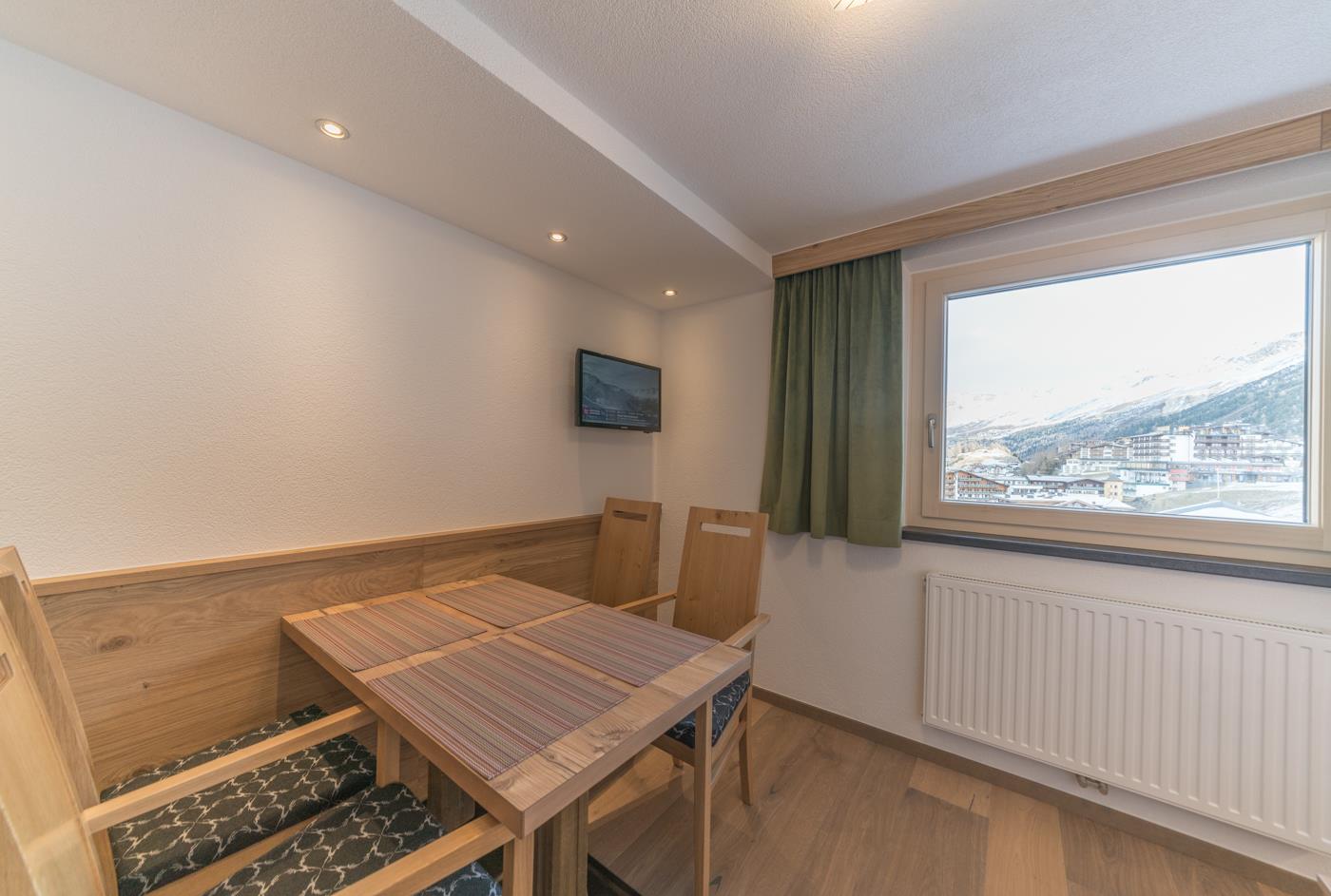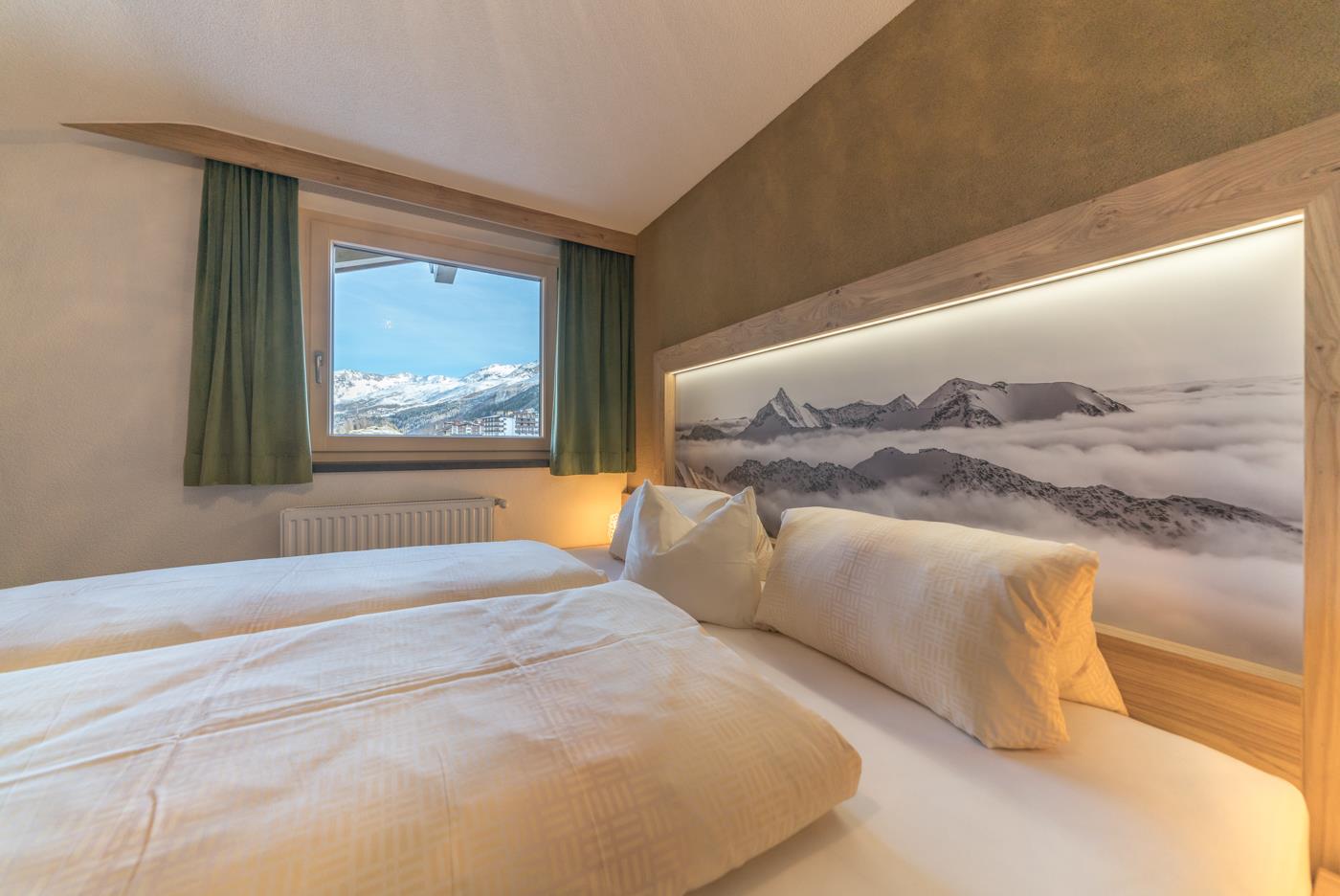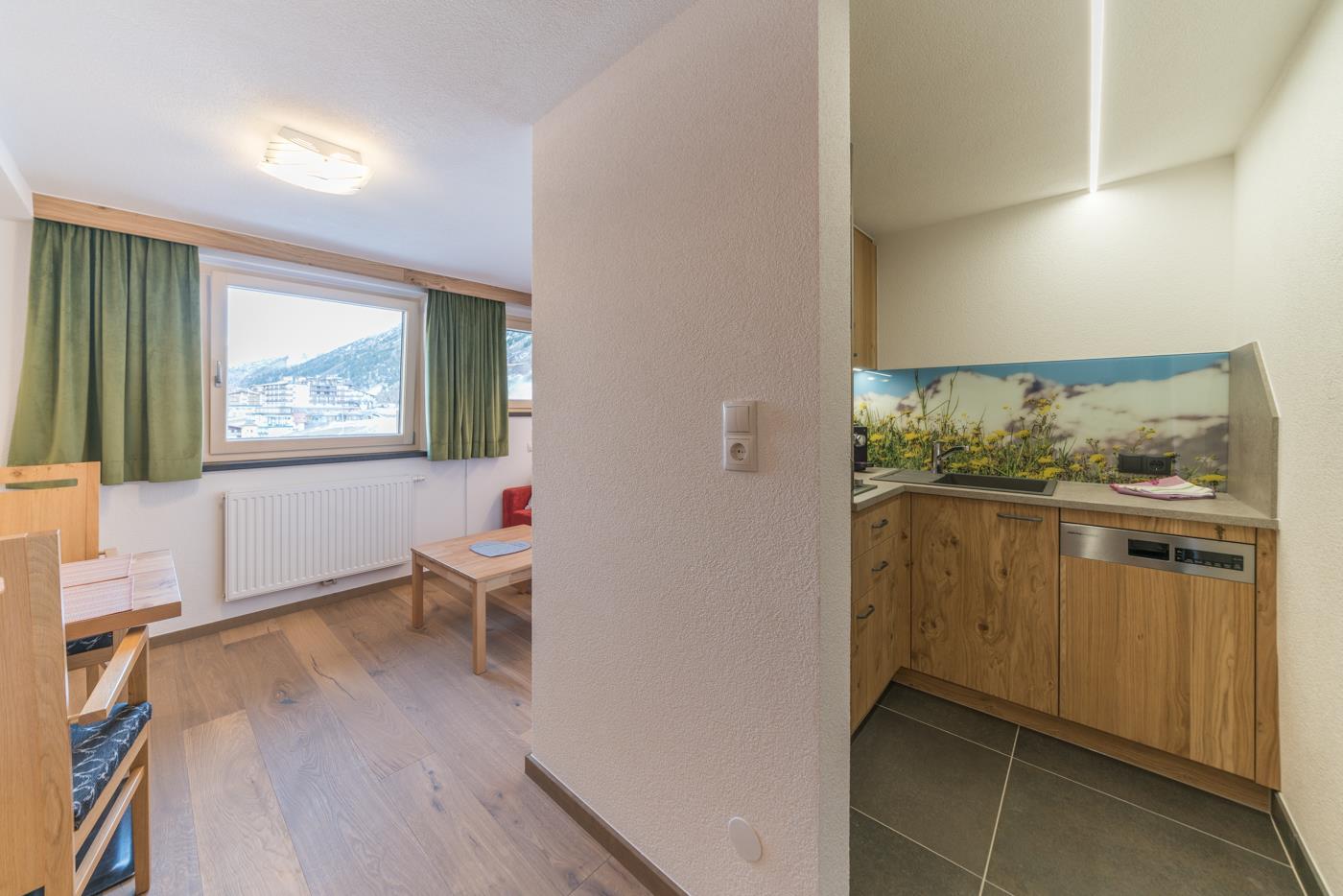 40m²; Traumhafter Ausblick nordseitig über Obergurgl, hoch hinaus bis zum Kirchenkar in Hochgurgl. Heimeliges Apartment mit hochwertiger Einrichtung mit Echtholzmöbel und Böden. 1 Schlafzimmer mit Netzfreischalter und Boxspringbett, Safe, 1 Badezimmer mit Walk-In Dusche und WC, Handtücher & Haar Fön, Soda Stream, 2 x Flachbildschirm mit Kabel-TV, Wohnzimmer mit Doppelschlafcouch und Esstisch.