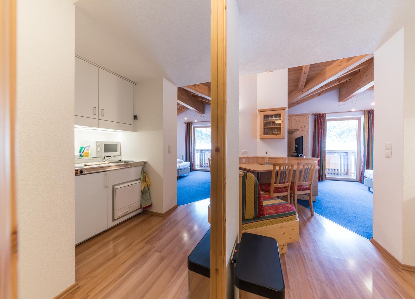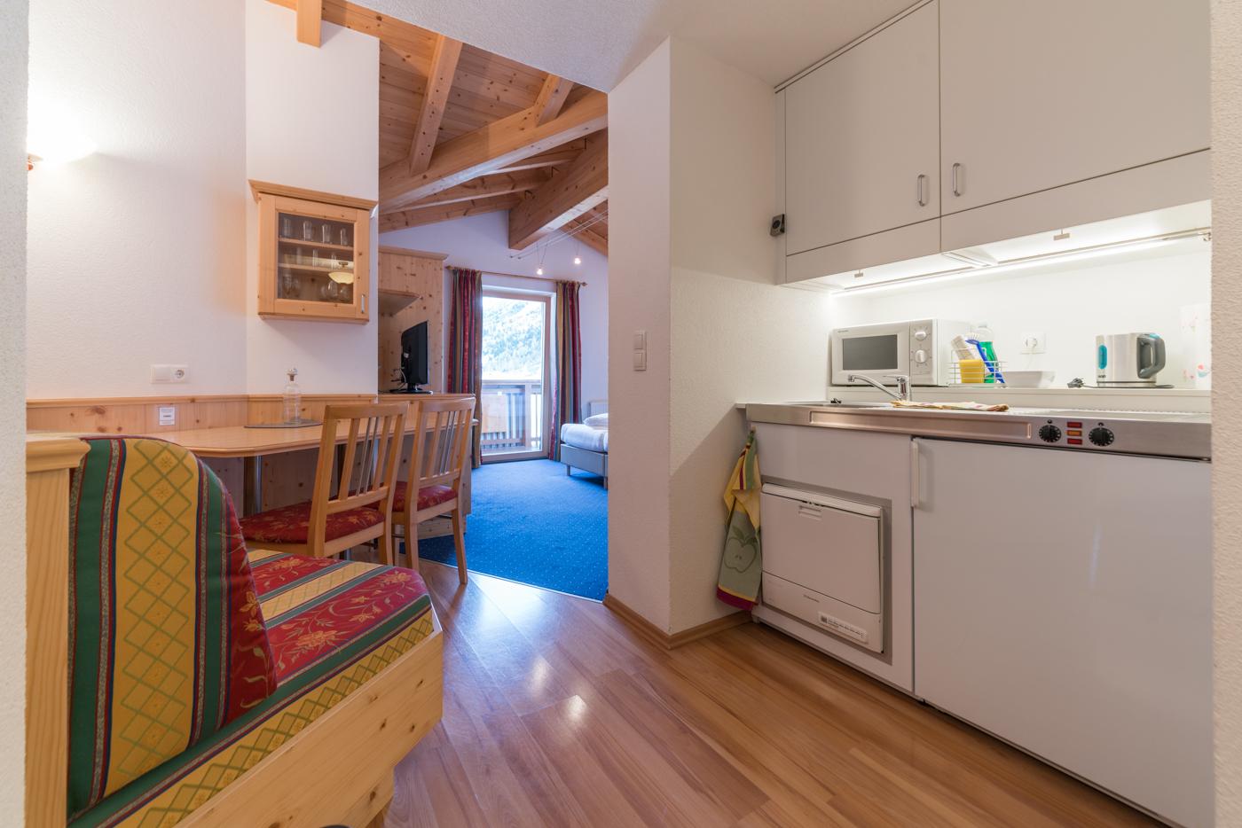 Ca. 28 m² - Unser beliebtes Studio mit Netzfreischalter, Sichtdachstuhl, Echtholzmöbel aus Fichte, 1 Doppelbett Boxspring, Safe. 1 Badezimmer mit großer Dusche, WC, Handtücher & Haar Fön. Großzügige Sitzecke, voll ausgestattete Küchenzeile inklusive Ess- und Kochgeschirr, Tücher, Reinigungsmittel, Mikrowelle, Geschirrspüler & Tabs, Kühlschrank, Cremesso Kapsel-Kaffeemaschine, Melitta Kaffeefilter Kanne, 1 Flachbildschirm mit Kabel-TV und Balkon mit traumhaften Bergblick über Obergurgl Richtung Kirchenkar.
