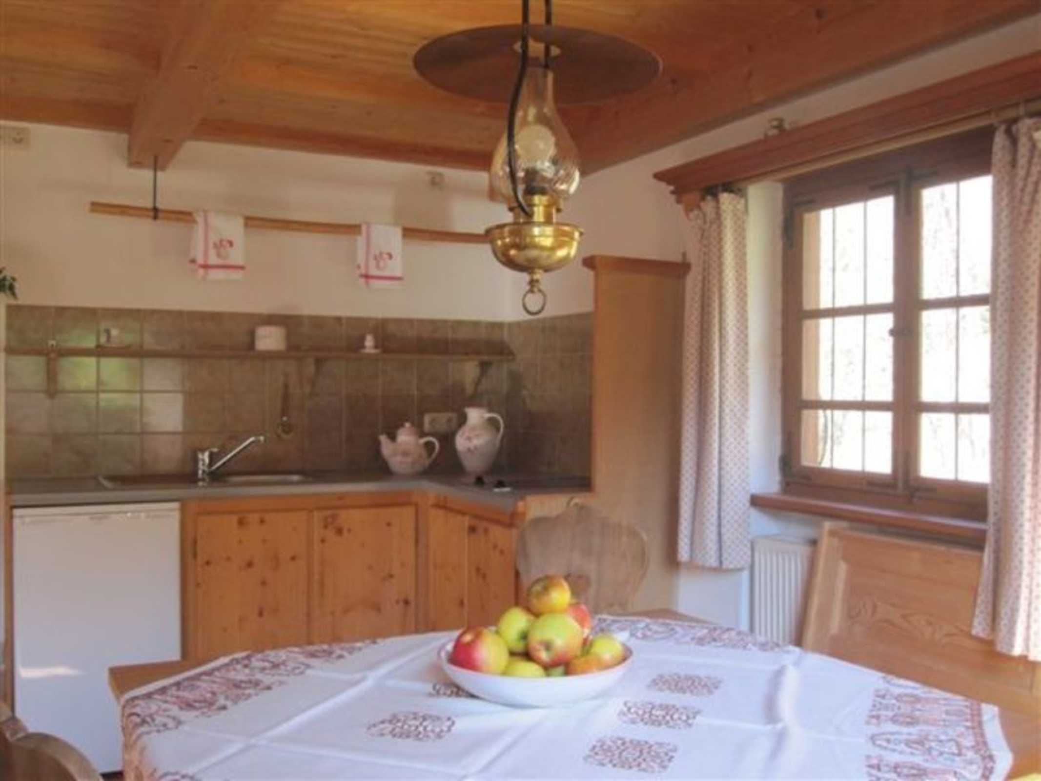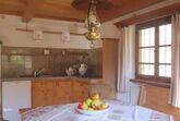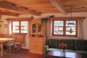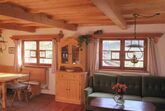 Die im bayerischen Stil eingerichtete Ferienwohnung mit eigenem Eingang hat eine Gesamtfläche von 71 qm. Sie erstreckt sich über 2 Stockwerke und bietet Platz für 2-3 Personen. Im Erdgeschoß liegt neben einem Eingangsbereich mit WC die große Wohnstube mit Holzboden und Holzdecke, handgefertigten Möbeln und einer Küchenzeile. Im Obergeschoß mit seinem Balkon und den gemütlichen Holzbalkenwänden liegen: Flur mit Kommode, Schlafzimmer mit Doppelbett und offenem Durchgang zu einem kleineren Zimmer mit Einzelbett sowie eine Dusche mit WC.