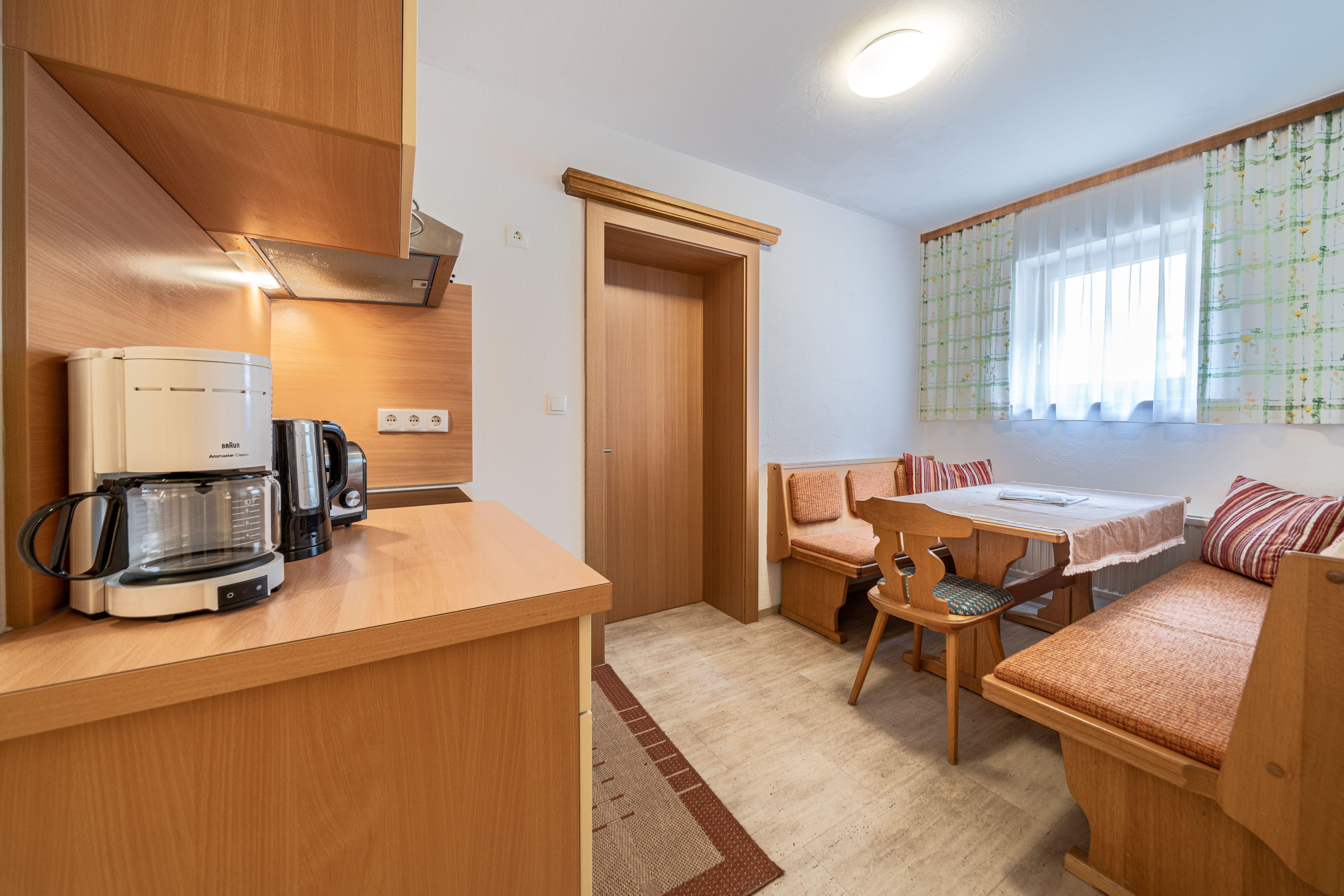 Die Wohnung verfügt über einen Balkon, 1 Doppelzimmer und eine Wohnküche mit Kaffeemaschine, Kühlschrank mit Gefrierfach, Mikrowelle; 4 Plattenhed mit Backofen und natürlich genügend Töpfen, Pfannen, Geschirr und Besteck. Bett-, Hand-und Geschirrtücher vorhanden. Brötchenservice auf Anfrage.