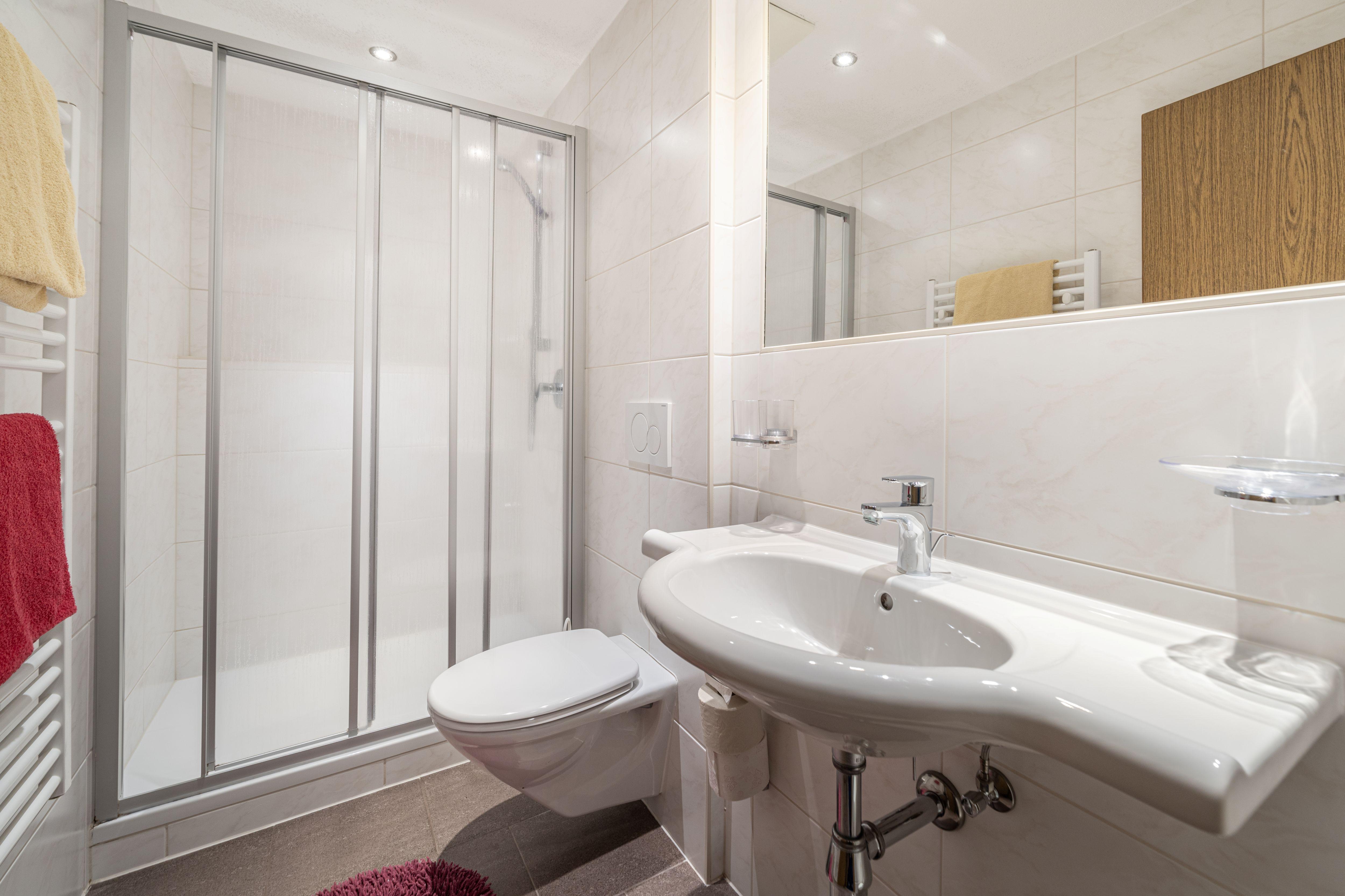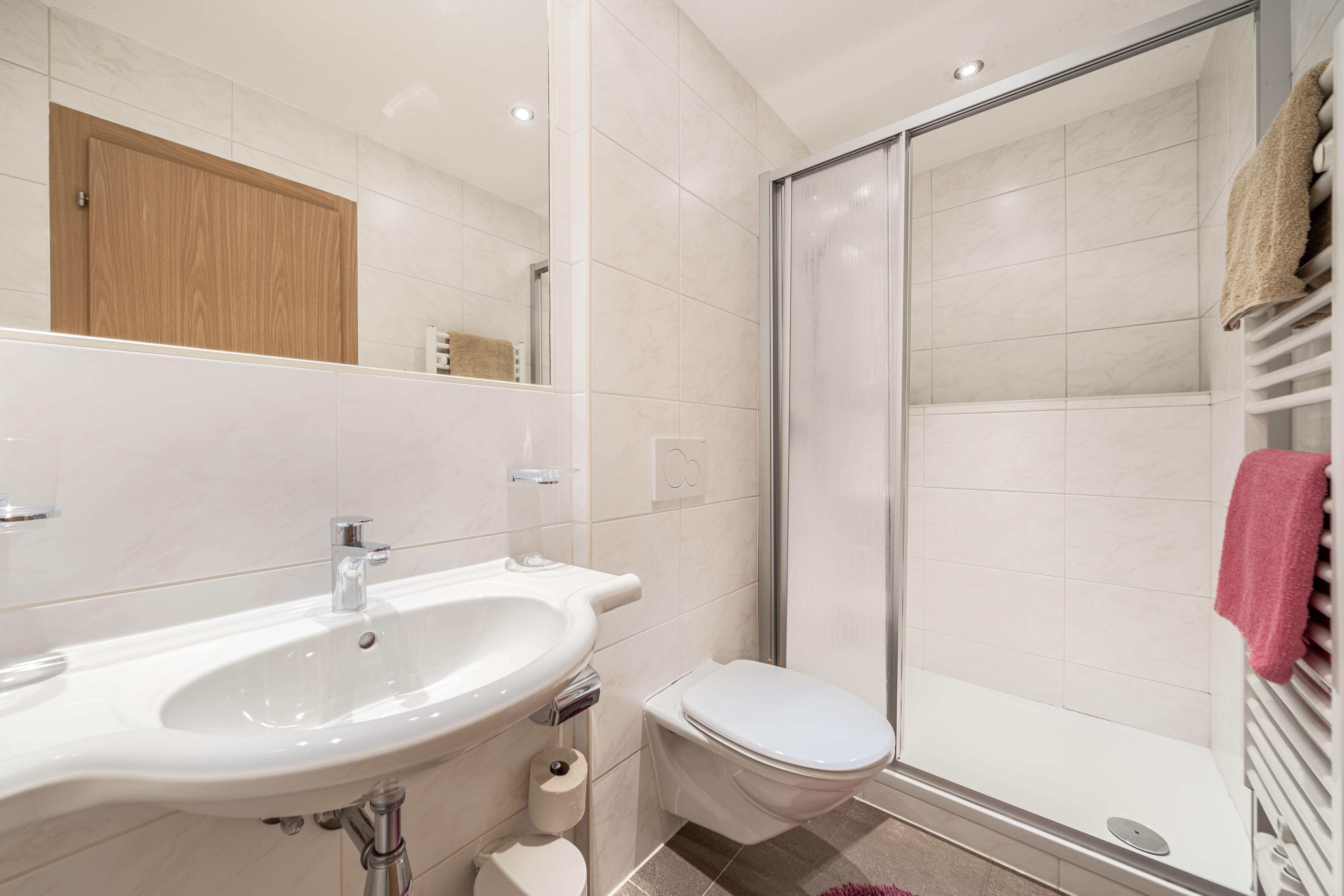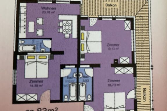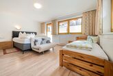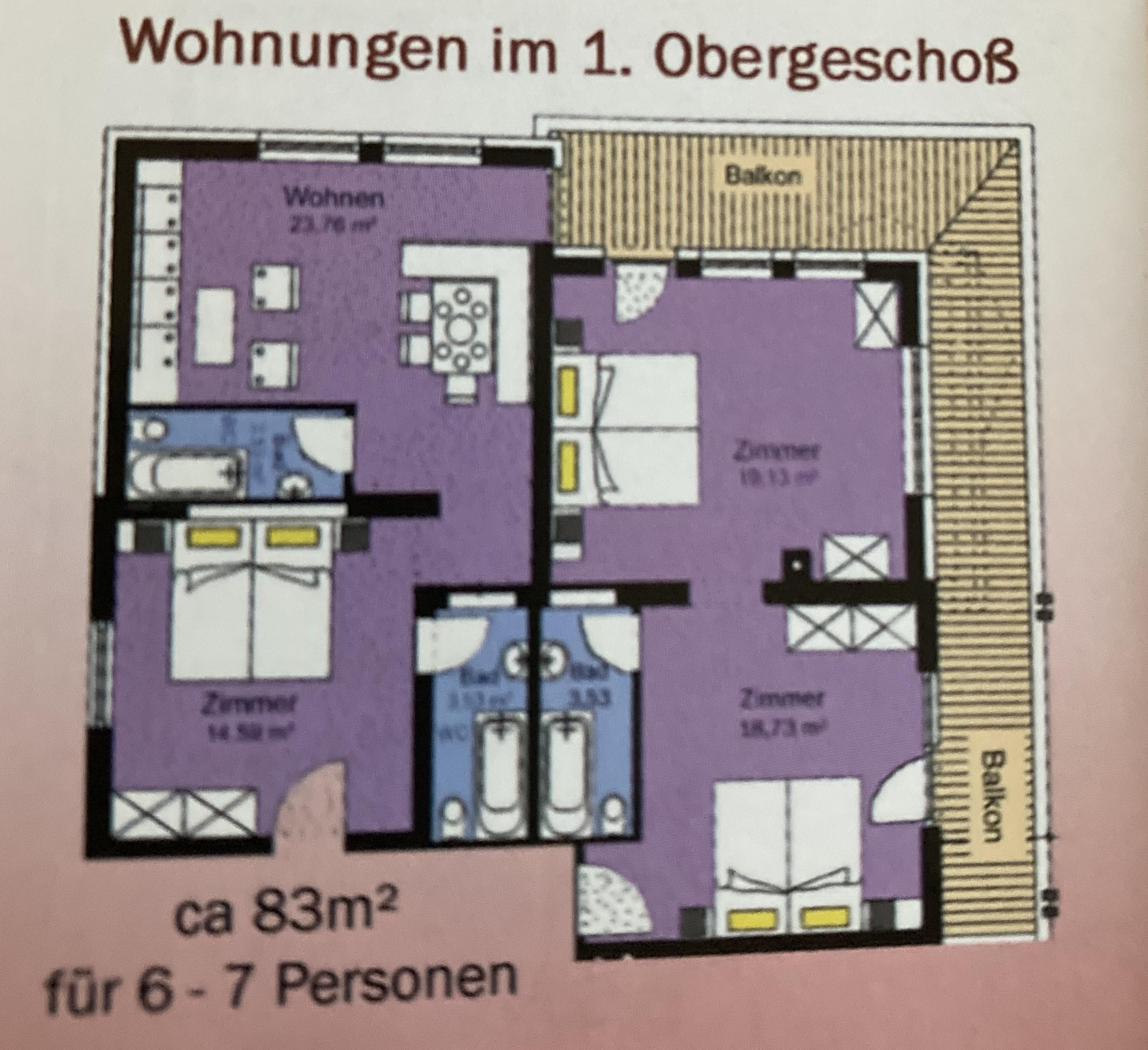 4-Zimmer-Wohnung 80 m2 im 1. Lager. Zweckmässig eingerichtet: 1 Zimmer mit 1 Bett, 1 Doppelbett und Dusche/WC. Durchgangszimmer mit 1 Doppelbett und Dusche/WC. Ausgang zum Balkon. Verbundenes Zimmer mit 1 Doppelbett und Dusche/WC. Ausgang zum Balkon. Wohnküche (4 Kochplatten, Backofen, Geschirrspüler, Mikrowelle usw.) mit Esstisch, Kabel-TV. Hinweis: Zugang zur Wohnung durch ein Schlafzimmer.