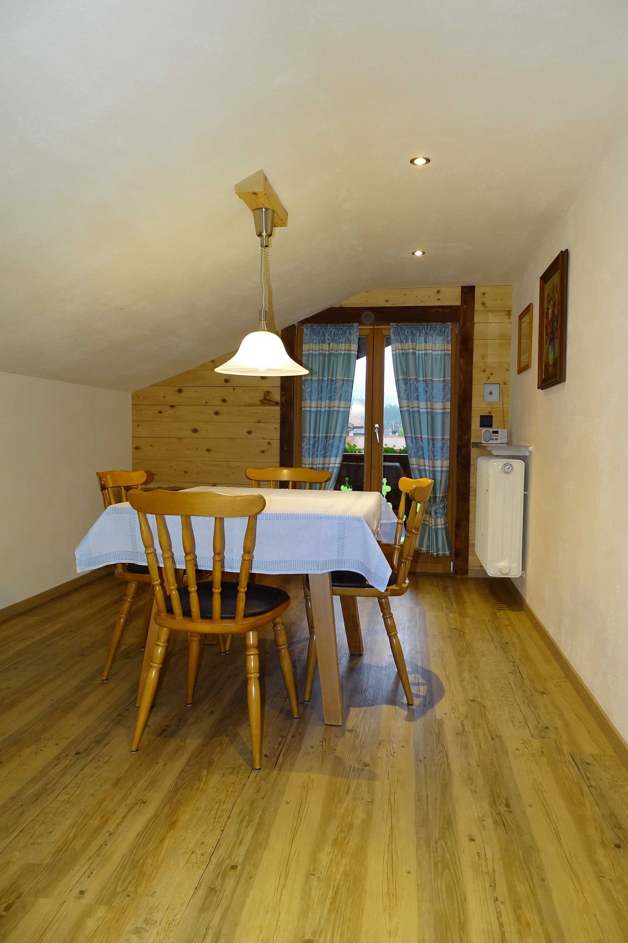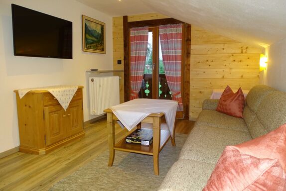 Ferienwohnung im Dachgeschoß. Wettergeschützter Balkon nach Süden mit Blick auf die Blauberge.