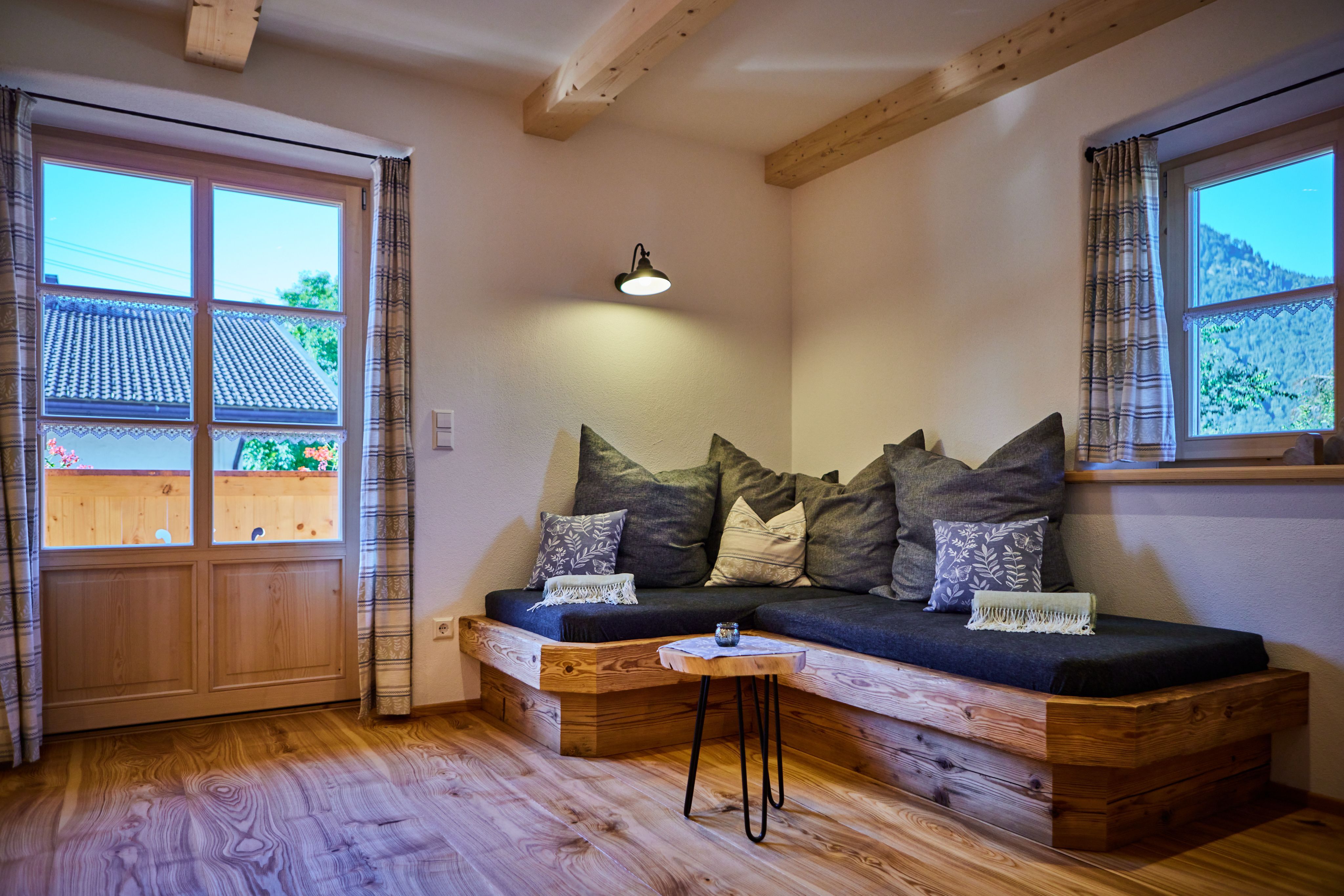 Alle unsere Wohnungen sind mit viel Holz von unseren einheimischen Handwerkern ausgestattet kostbares Zirbenholz für erholsamen Schlaf, hochwertige Esche direkt aus dem Tegernseer Tal & exklusives Altholz was für ein Gefühl wohliger Geborgenheit sorgt.