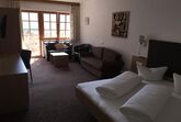 Großzügiges Doppelzimmer aus Massivholz, mit Bad oder Dusche, WC, Sitzecke, Flat-TV, Balkon.