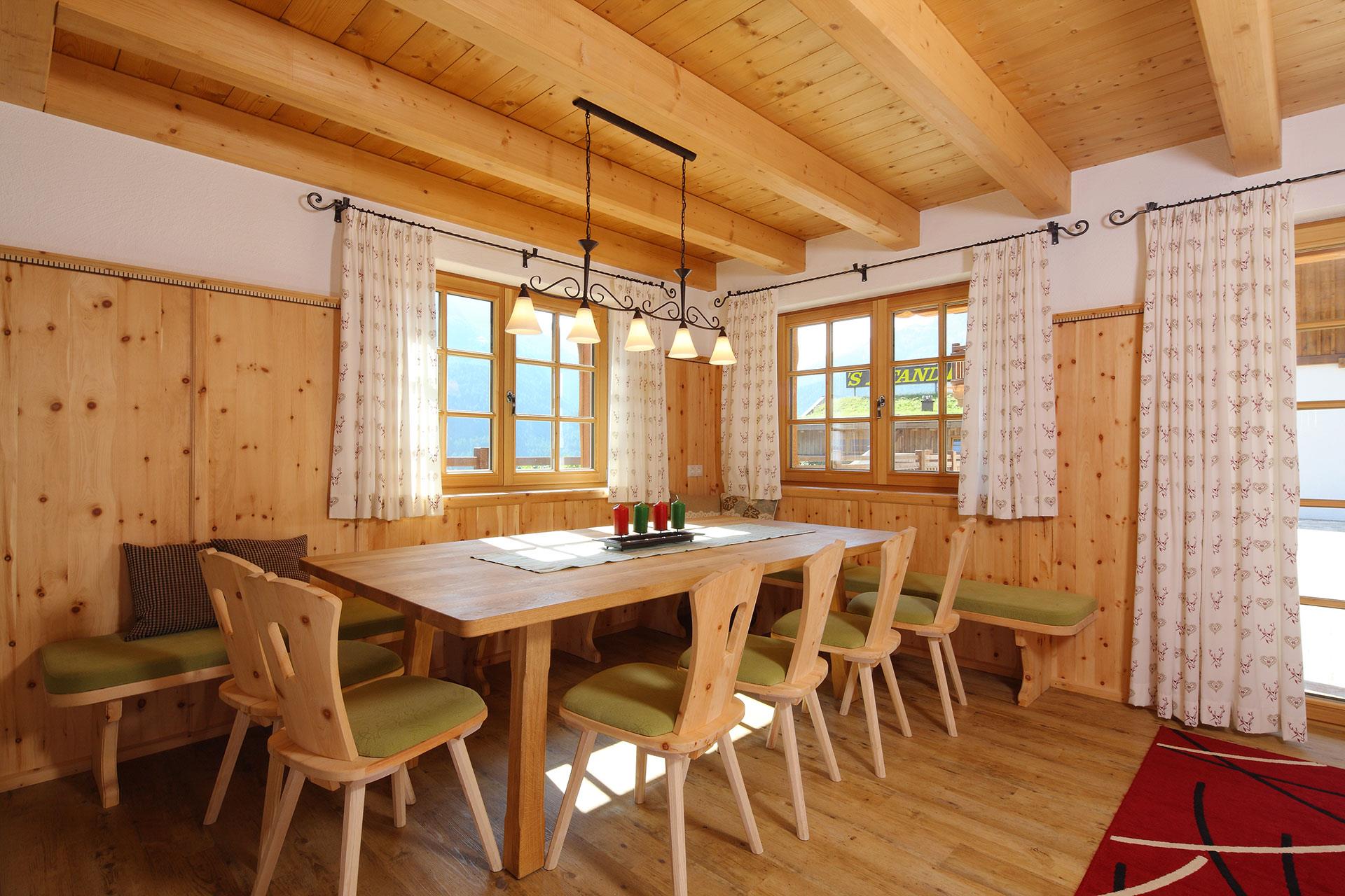 Unsere Häuser erbaut aus heimischen Hölzern im rustikalem Stil für 5 - 10 Personen, mit einzig artiger, wohlig heimelige Atmosphäre, sind direkt an Wander- Radwegen gelegen. Jedes Haus ist mit viel Liebe im typischen Tiroler Stil eingerichtet. Genießen Sie exklusiv, die Vorteile der Summer Card - Alle Höhepunkte des Tales inklusive. Bergbahnen, Busse sowie Aqua Dome und Area 47,.... Seminarraum - kostenlose Garagenplätze, echte-Tiroler Gastlichkeit in unserem angrenzenden Restaurant.