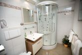 Badezimmer mit Erlebnisdusche (mit Musik und Lichteffekte), WC, Fön und beheiztem Fußboden; W-Lan Anschluß in allen Räumen zur freien Verfügung. Von beiden Räumen hat man einen herrlichen Blick in den Garten Richtung Osten und Süden. Buchbar auch mit Frühstücksbuffet.