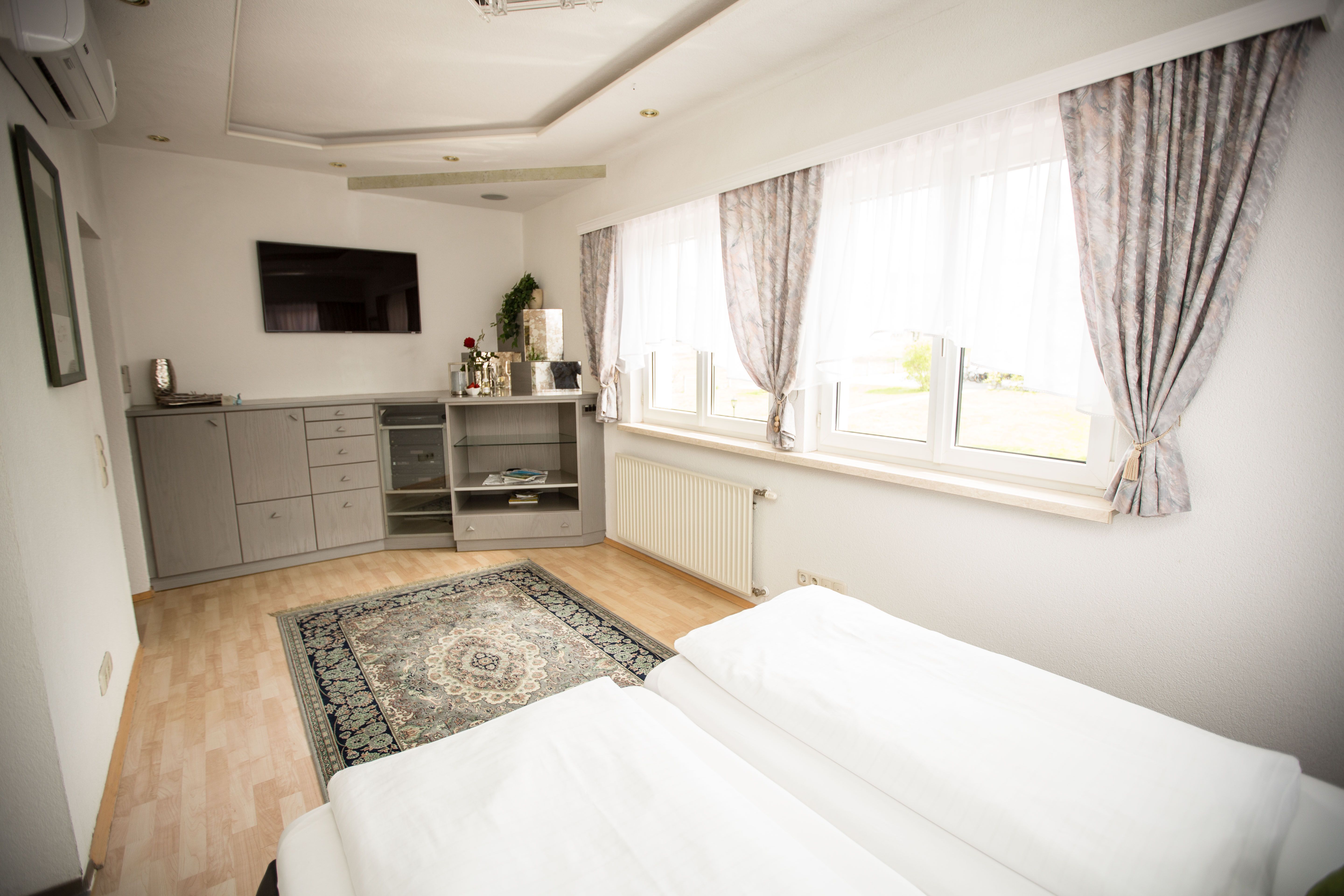 Unsere Fewo Wellness bietet Ihnen Erholung auf 38 m² im luxuriösen Ambiente mit 2 getrennten Räumen plus Badezimmer. Großer Schlafraum mit Whirlpool, Flat-Screen TV, Klimaanlage, elektr. verstellbare Betten, Musikanlage und Safe. Das gemütliche Doppelbett mit Spiegel- und Lichteffekte verleiht zum Träumen und Kuscheln. Küche mit Esstisch, einer vollausgestatteten Küchenzeile (Kühlschrank mit Gefrierfach, Geschirrspüler, Backofen, Kochplatten, Kaffeemaschine, Wasserkocher, Toaster) und eigenem Fernseher. Eine multi-Funktionssitzbank läßt sich zum 3. Schlafplatz adaptieren.