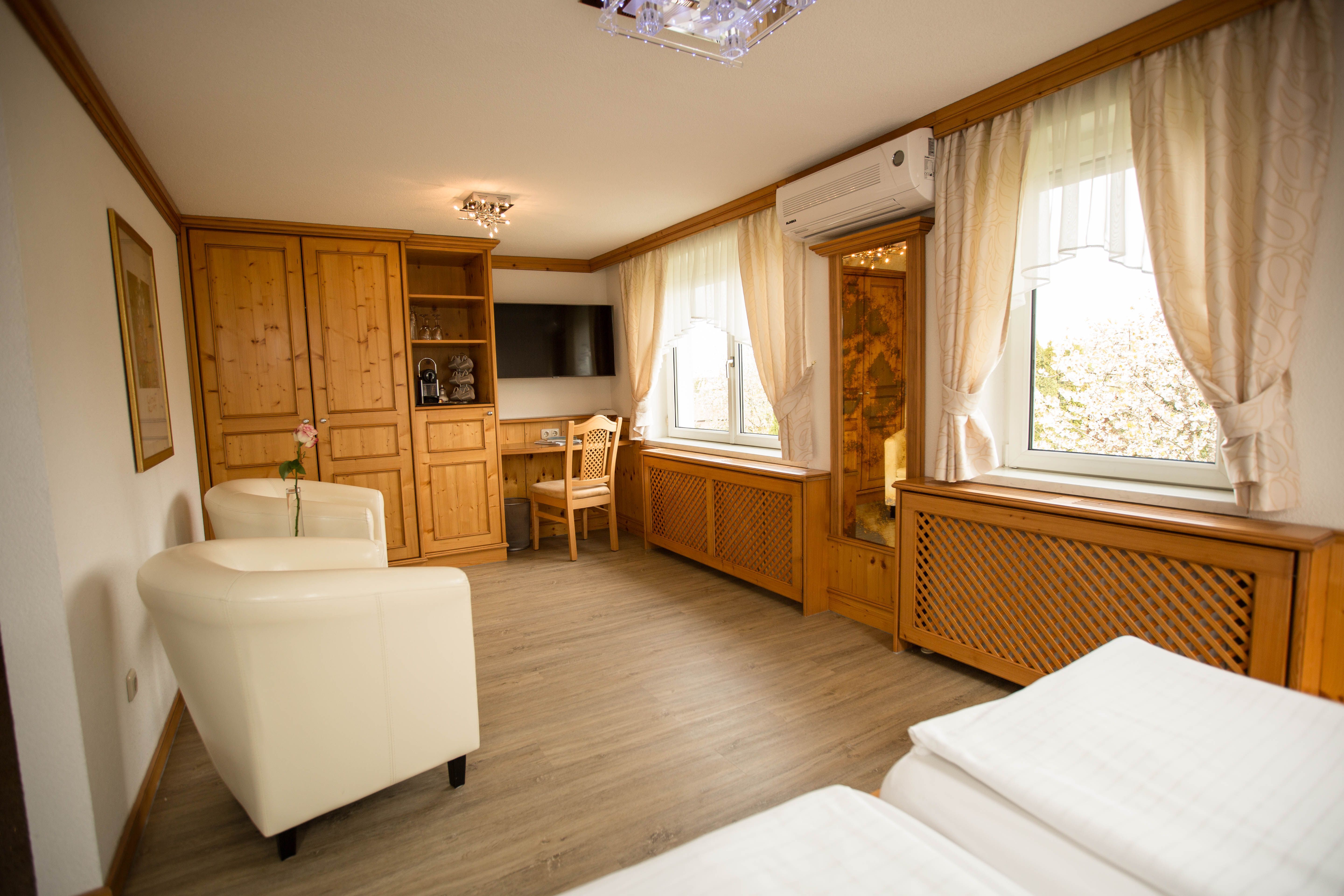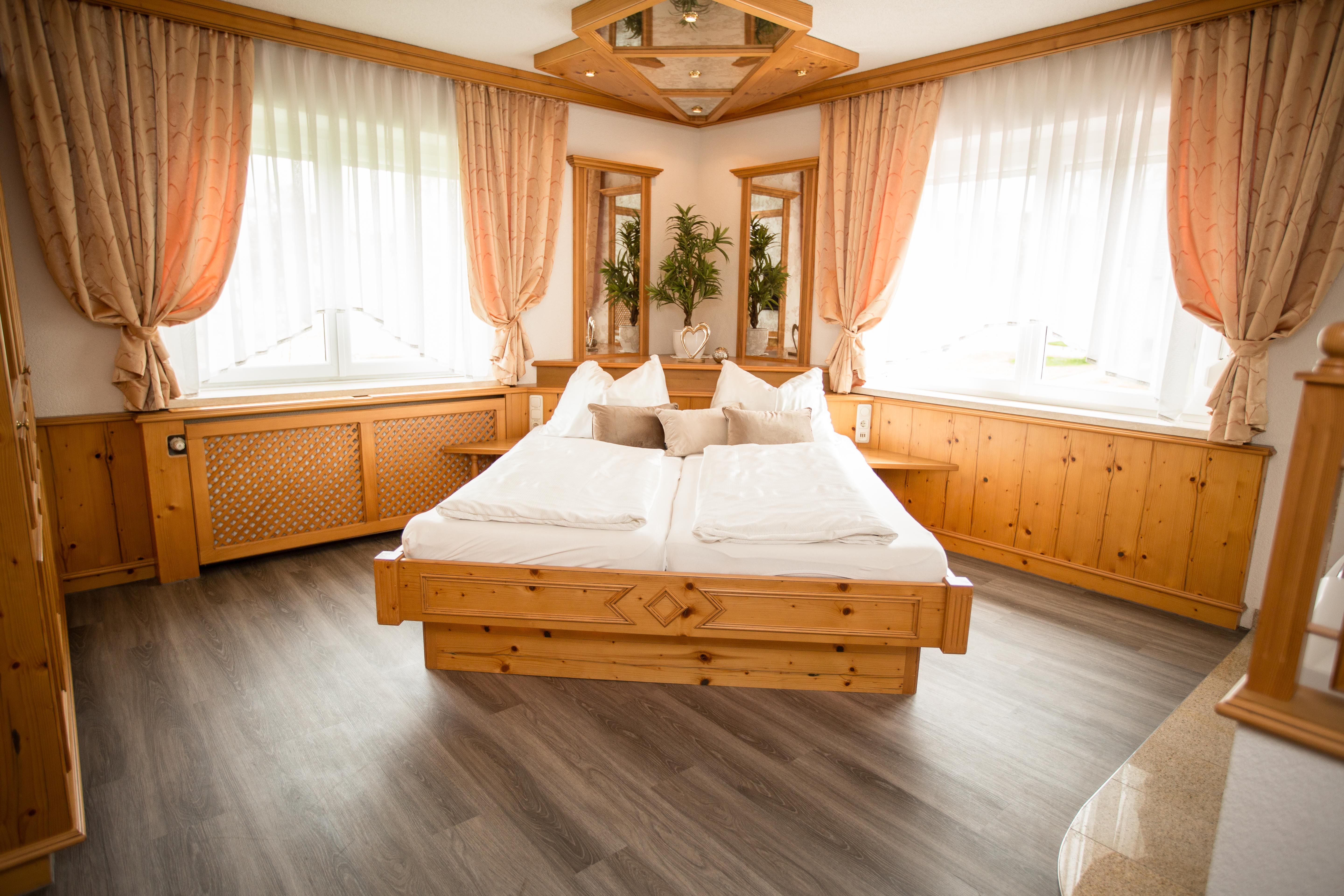 Eine romantische Atmosphäre erwartet Sie in dieser Ferienwohnung auf 22 m² mit einem Doppelbett, das mit Spiegel- und Lichtdecke ausgestattet ist. Die gemütliche Sitzecke sowie der nett gestaltete Küchenbereich versprüht einen heimeligen Charakter. Weiters W-Lan Anschluss, Flat-Screen-TV, Klimaanlage, Safe und Stereoanlage. Der Küchenbereich ist mit Kühlschrank und Gefrierfach, Backofen, Ceranfeld, Kaffeemaschine, Wasserkocher und Toaster ausgestattet. Badezimmer mit Du, Waschbecken, WC und Fön. Ein Blick aus dem Fenster zeigt die Natur - den Garten in Richtung Osten. Buchbar auch mit Frühstücksbuffet.