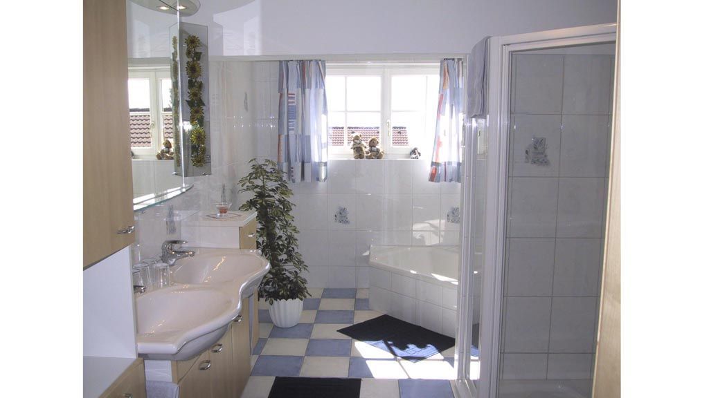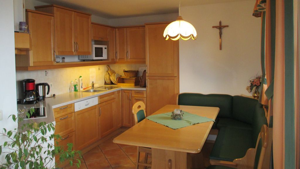 Unsere Ferienwohnung 2 ist der ganze 2. Stock und mit rustikalen Möbeln sowie Parkettböden ausgestattet. Von der Morgensonne geweckt, können Sie am 2m breiten Balkon das Frühstück mit frischen Semmeln und dem traumhaften Blick auf den See und die umliegenden Berge genießen. Die Kinder können am Morgen schon die Tiere füttern oder sich am Spielplatz austoben.