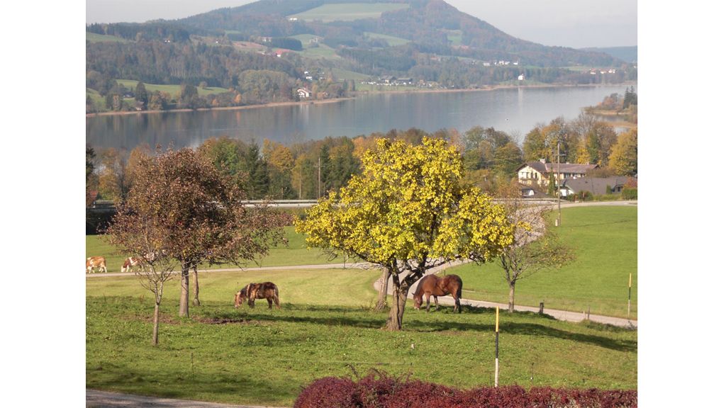 Genießen Sie den herrlichen Blick auf den Irrsee (Zellersee) - nur 500 m entfernt - und tanken Sie Kraft und Energie für einen erholsamen Urlaub im schönen MondSeeLand. 5 bis 10 Gehminuten sind es von unserer Pension zum Ort Zell am Moos bzw. zum Irrsee.