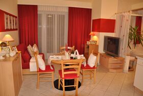 • 1 Wohnküche mit Sitzcouch sowie komplett ausgestatteter Küchenzeile, Nespresso - Kaffeemaschine, Esstisch, großer Flat -TV sowie kostenloses SKY-TV mit zahlreichen Sport- u. Filmprogrammen.