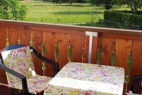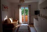 Ferienwohnung im Haus Amalia mit Balkon für 2 Personen, Schlafzimmer mit TV, Küche/Wohnbereich mit TV, Bad mit Dusche, Einzel WC, ca. 34 m2