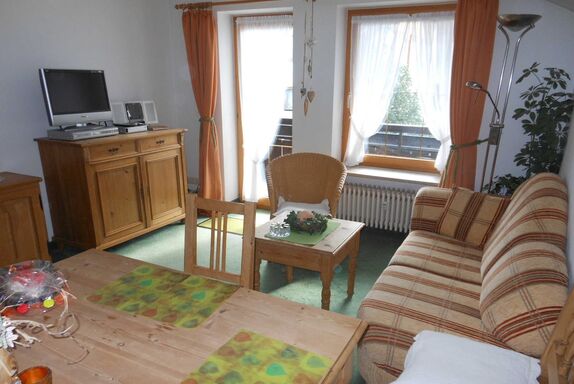 Gemütliche und großzügige Ein-Zimmerferienwohnung für bis zu vier Personen im Allgäuer Landhausstil in der Golf-und Skiresidenz Steibis. Geschmackvoll und liebevoll eingerichtet. Schöner sonniger Balkon, Einbauküche mit Elektrogeräten (außer Spülmaschine), TV Flachbildschirm, DVD, Radio, gemütliche s Schlafsofa, Bad mit Dusche.