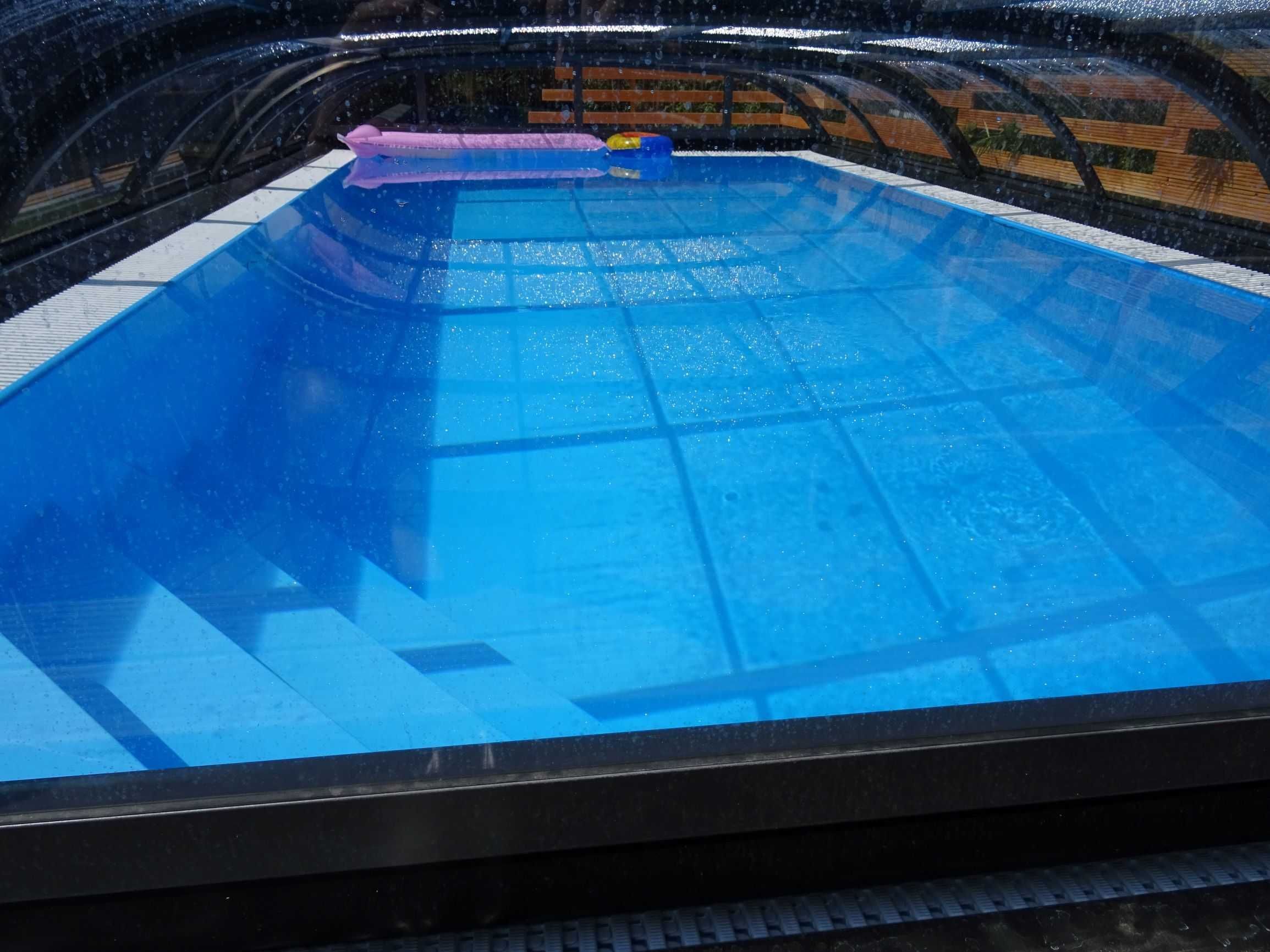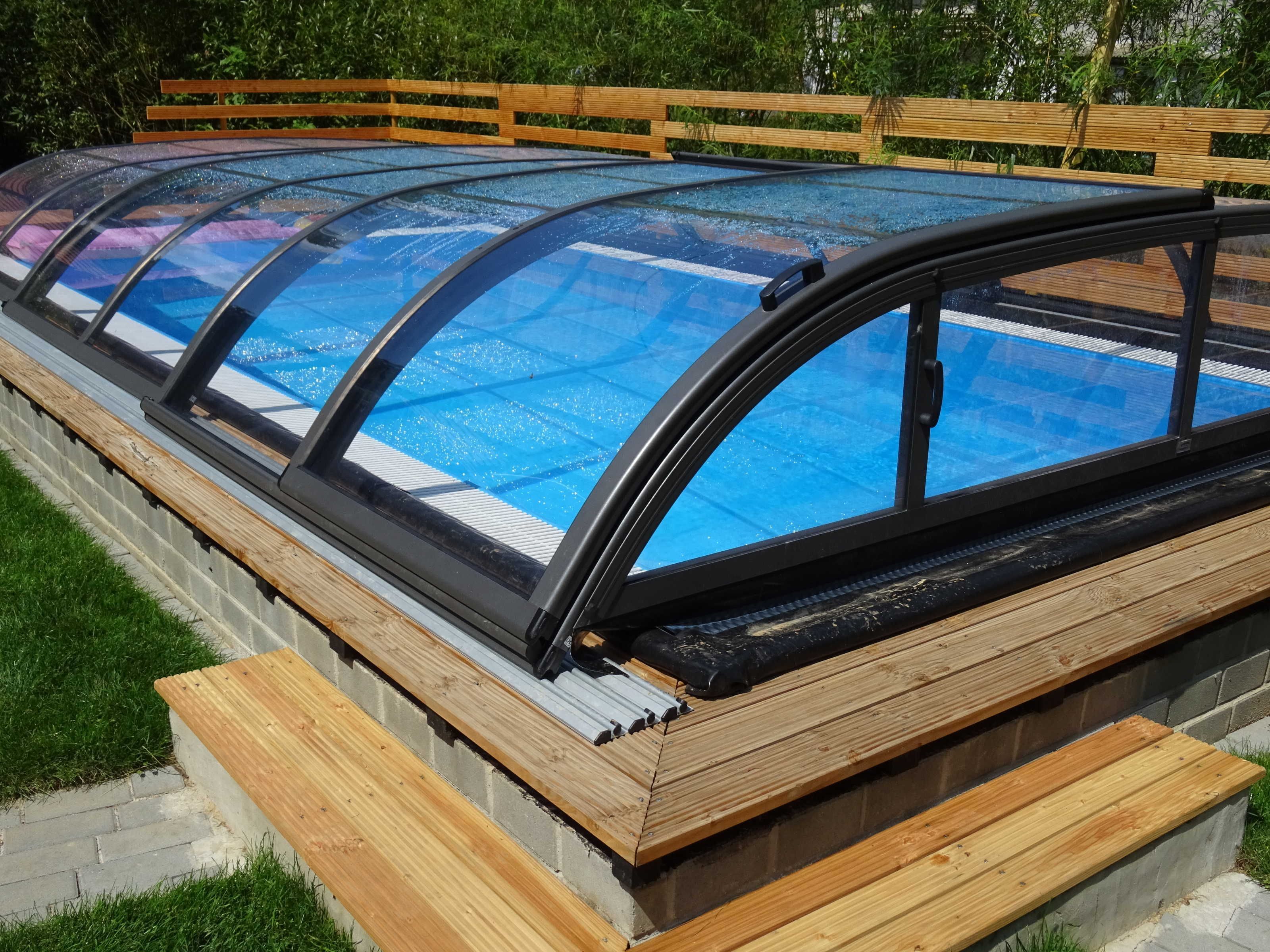 Überlauf-Pool-Komplettset mit Überdachung, Schwimmbecken 3,00 x 6,00 x 1,50m und Pool-Gegenstromanlage zum endlosen schwimmen.Salzwasserelektrolyse Brilix Hidrolife mit pH-Regulierung, inkl. Salz - ganz ohne Chlor.