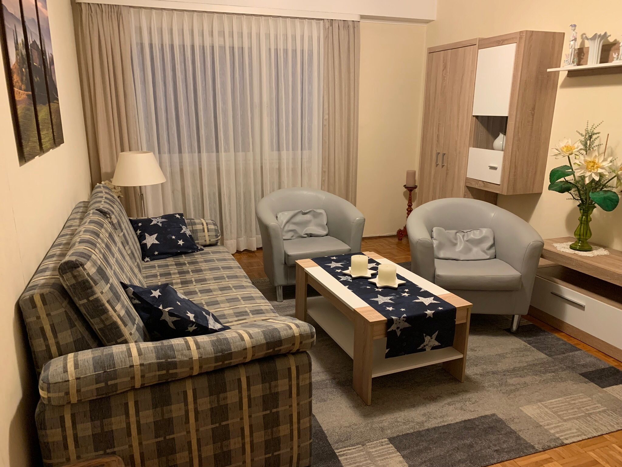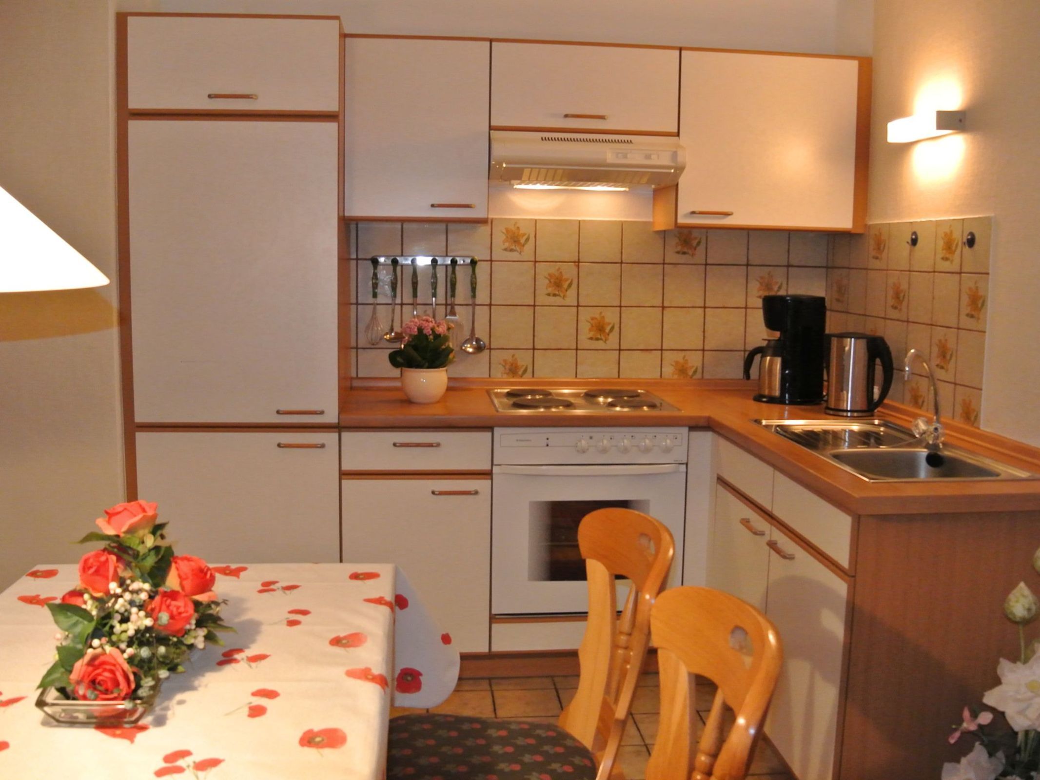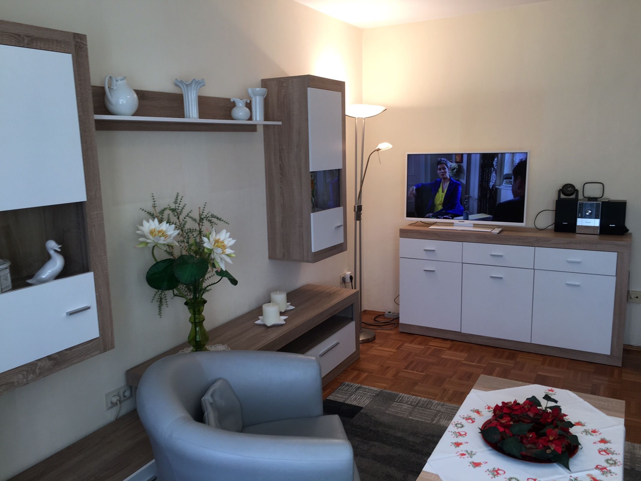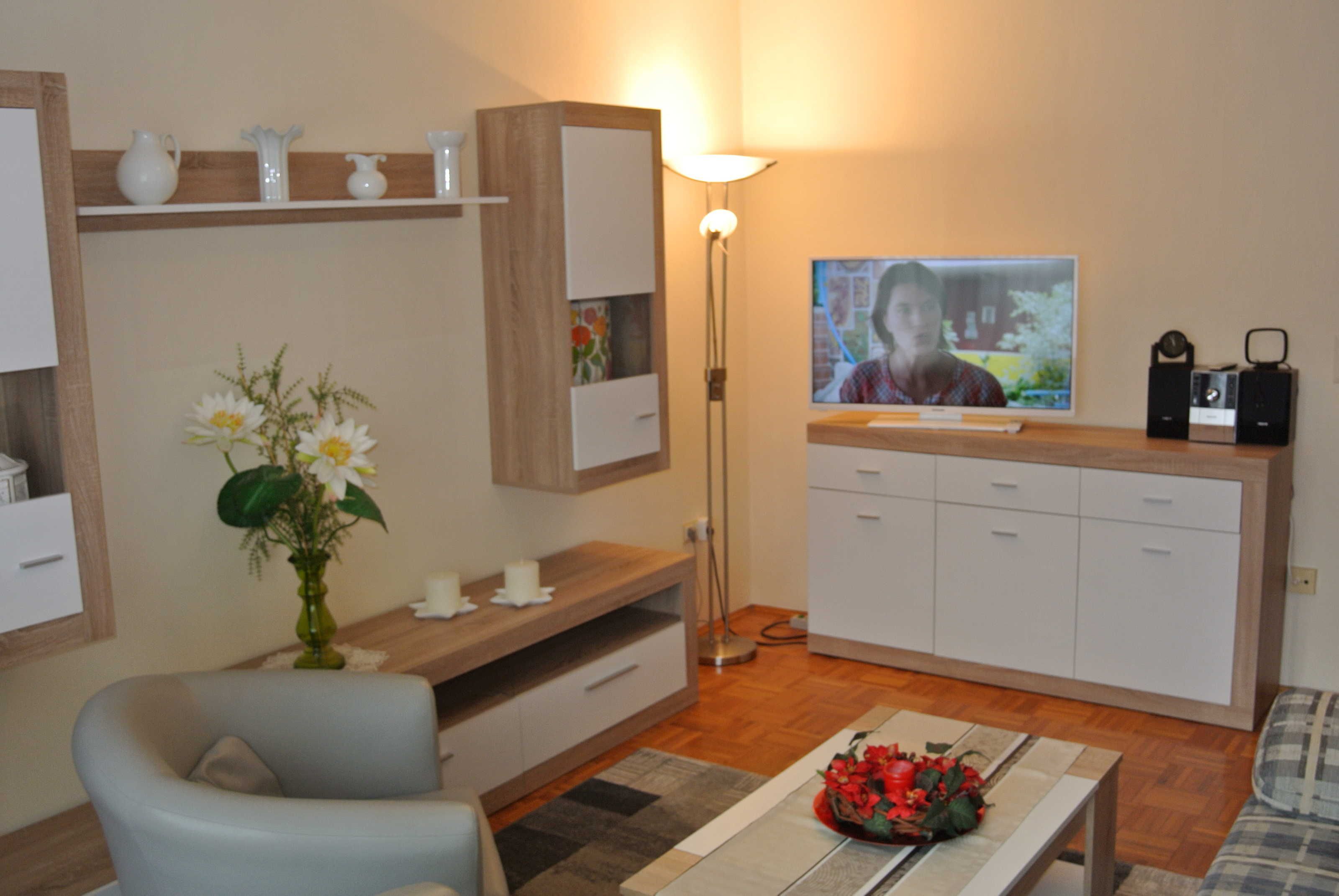 Die Wohnung ist ca. 60 qm groß. Sie verfügt über einen eigenen Eingang mit Windfang und ist ausgestattet mit einer komplett eingerichteten modernen Wohnküche einschließlich moderner elektrischer Küchengeräte, Mikrowelle und Geschirrspülmaschine sowie einer gemütlichen Sitzecke.