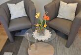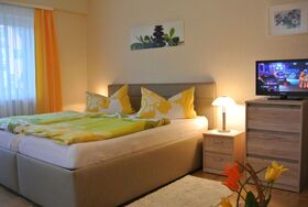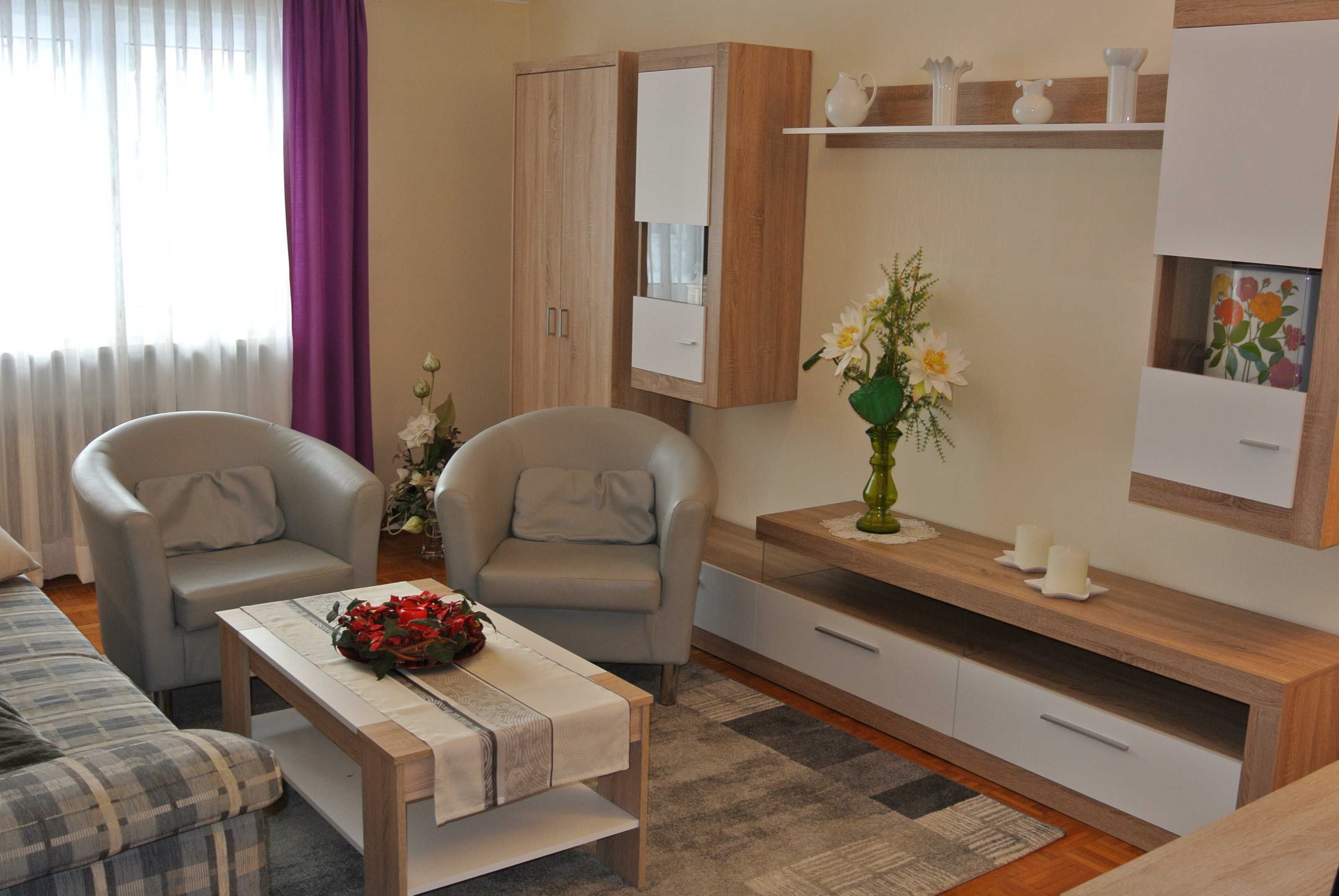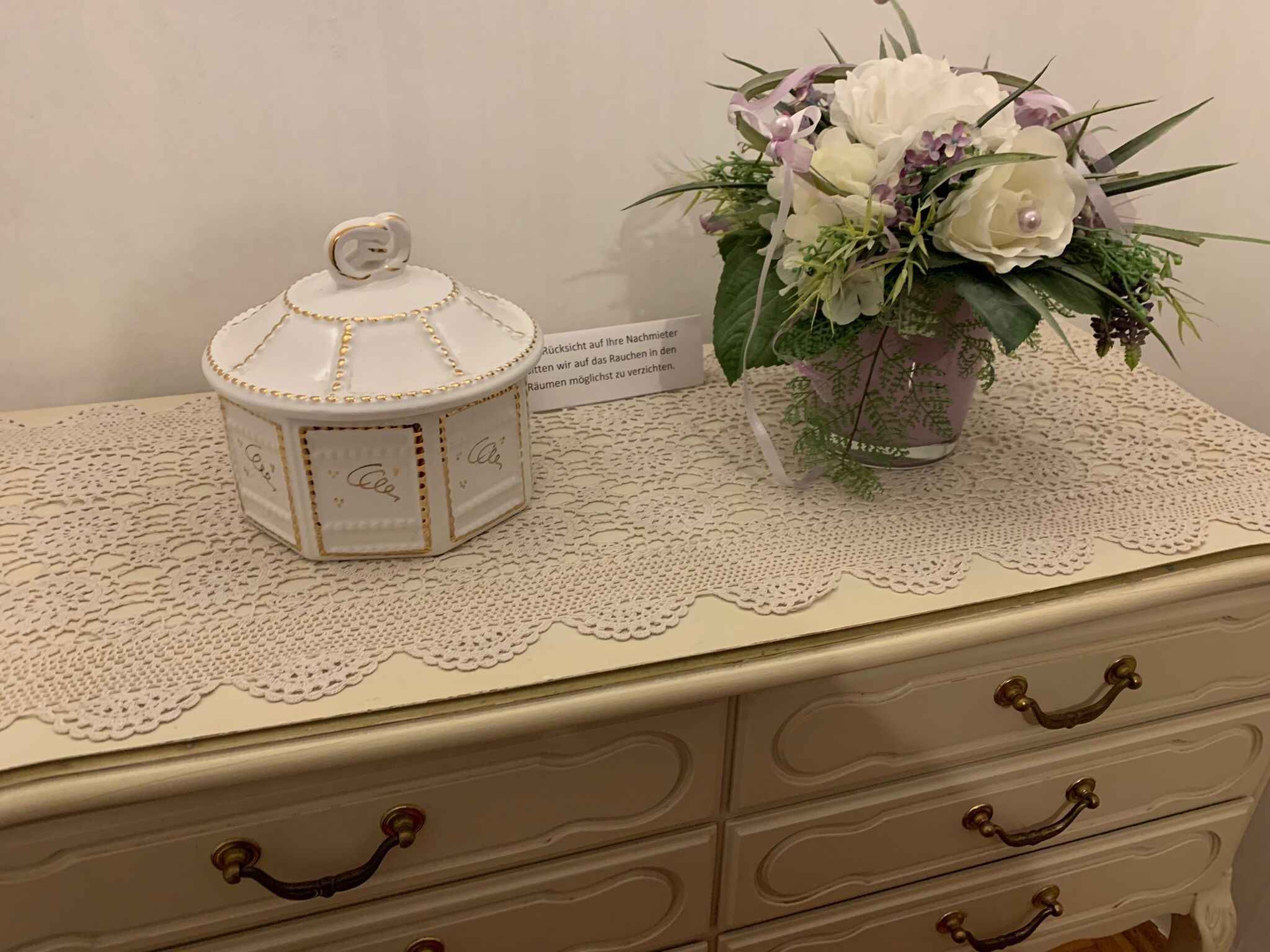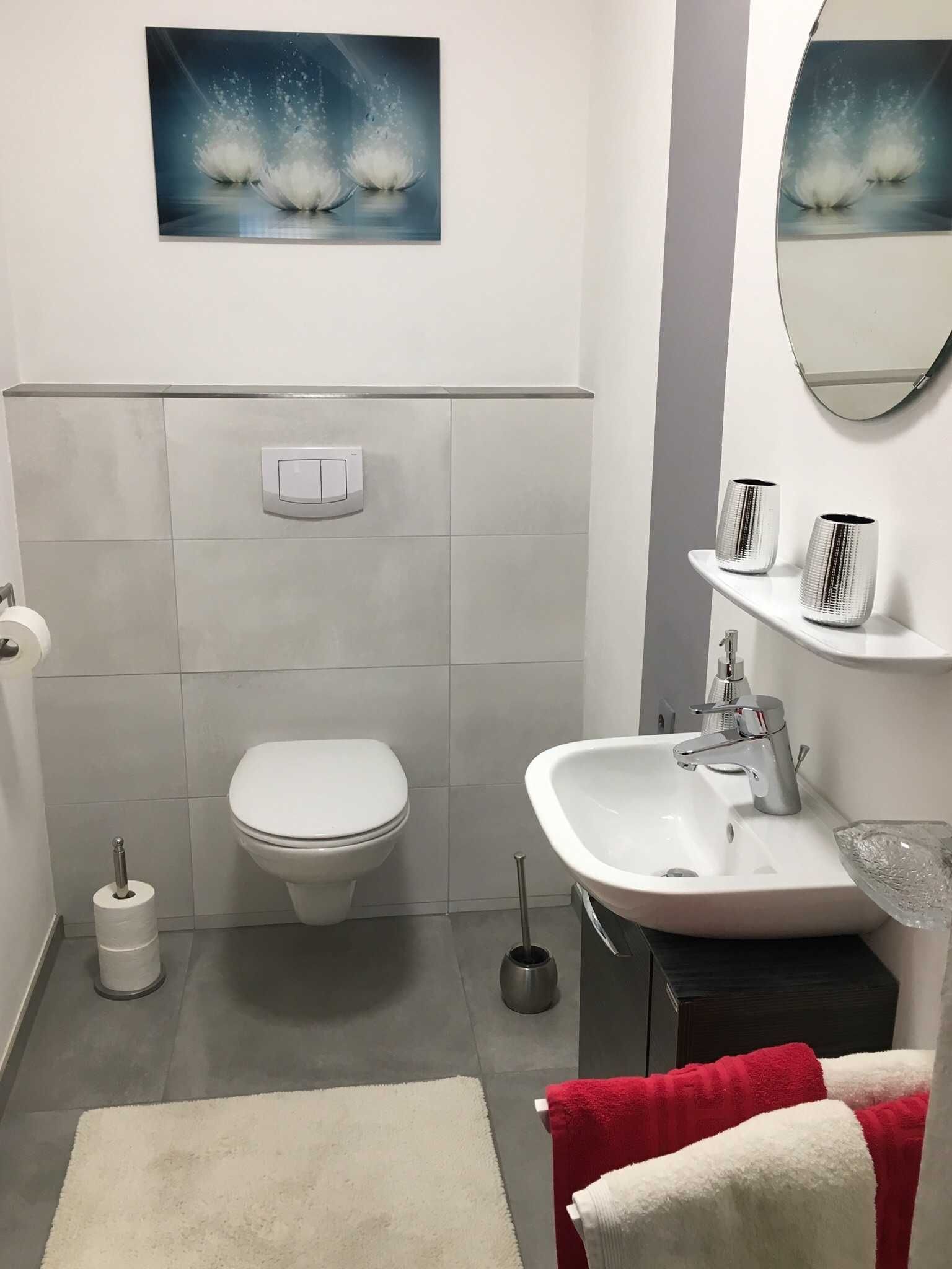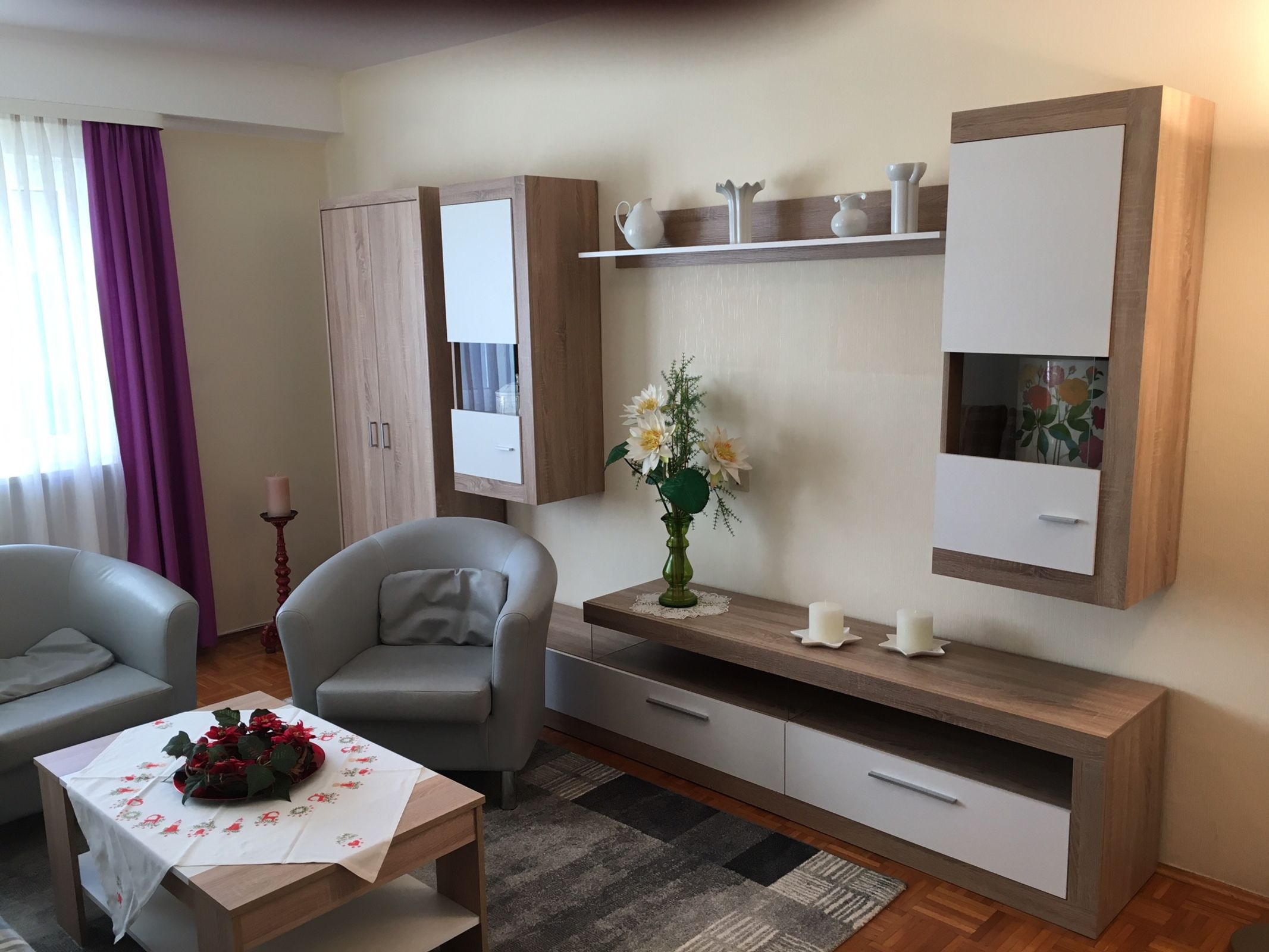 Die Wohnung ist ca. 60 qm groß. Sie verfügt über einen eigenen Eingang mit Windfang und ist ausgestattet mit einer komplett eingerichteten modernen Wohnküche einschließlich moderner elektrischer Küchengeräte, Mikrowelle und Geschirrspülmaschine sowie einer gemütlichen Sitzecke.