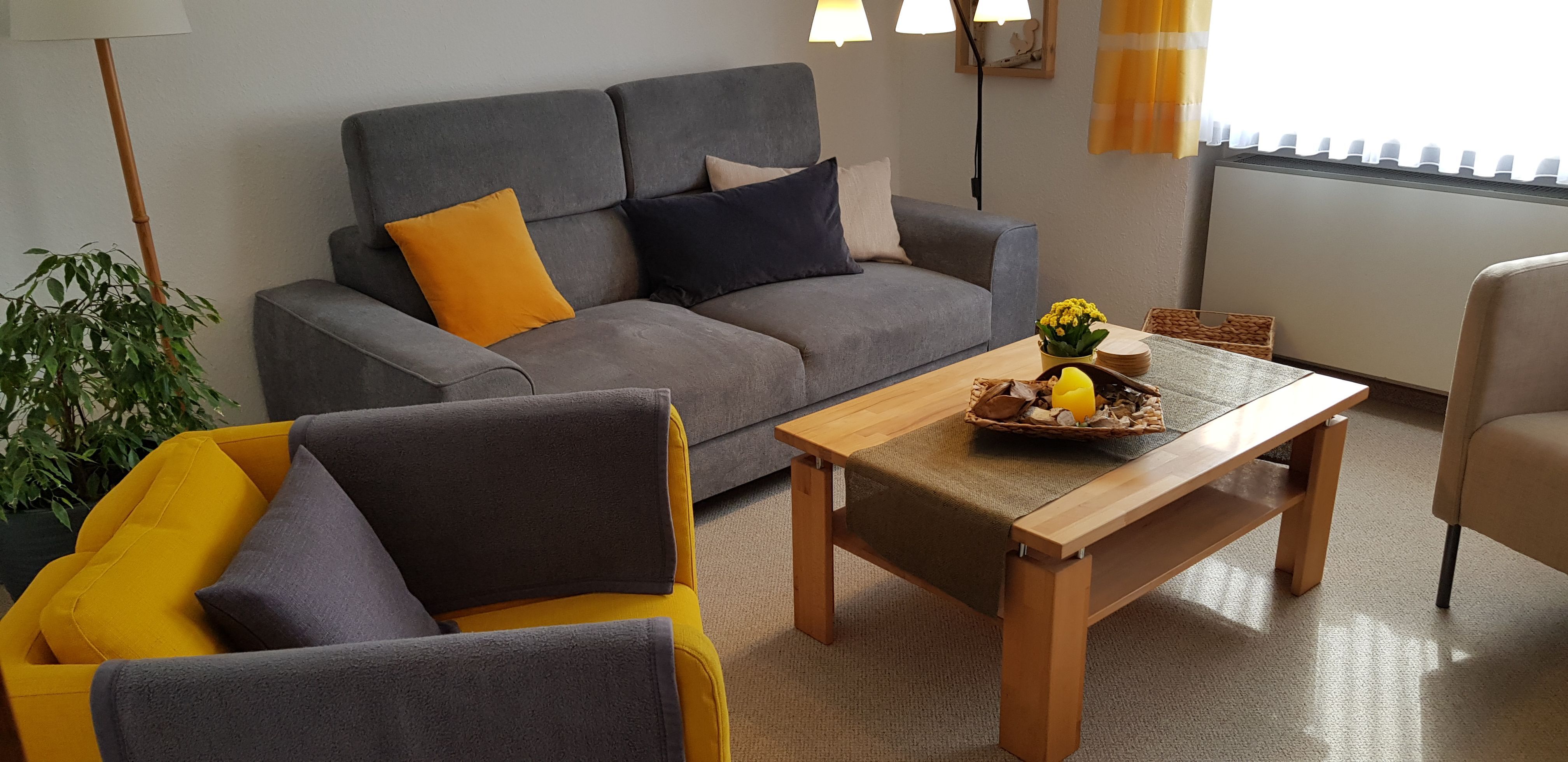 Unsere Ferienwohnung (95 qm) liegt ebenerdig, ohne Stufen und Treppen, auch zum Garten mit Sitzplatz und Liegewiese, ist äußerst gemütlich und modern eingerichtet. Die Ferienwohnung wurde komplett neu instandgesetzt.