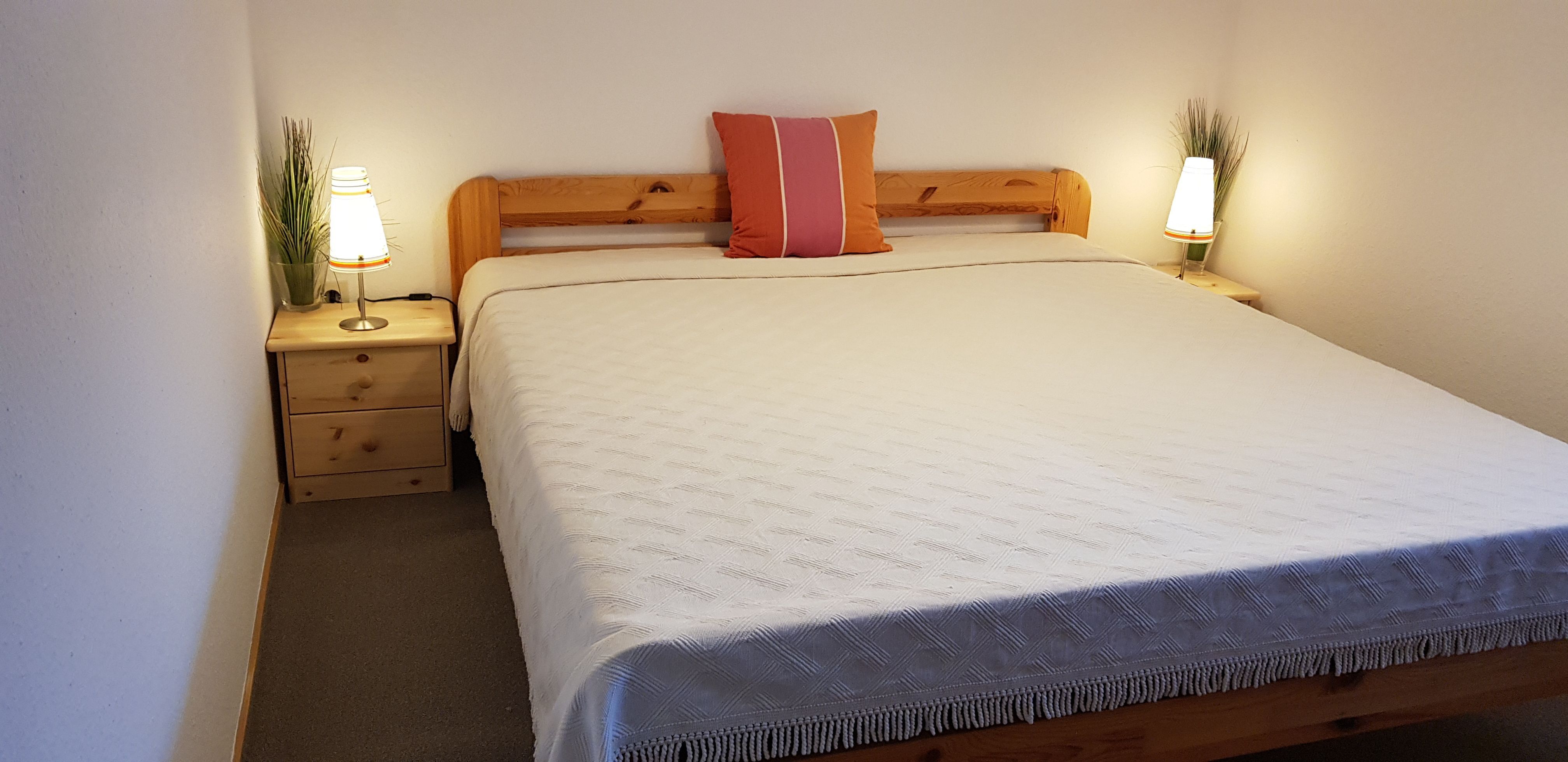 3 Schlafzimmer: jeweils Doppelbetten mit verstellbaren Lattenrosten, 2 der Schlafzimmer mit Waschbecken, in jedem der Schlafzimmer Radio und Föhn.