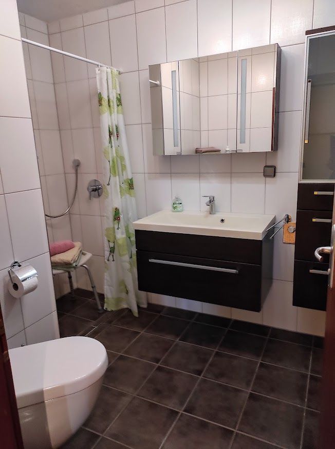 Unsere Ferienwohnung umfasst 68 qm + eine 12qm Terrasse und ist durch den ebenerdigen, barrierefreien Zugang für Personen mit Gehbehinderung geeignet.