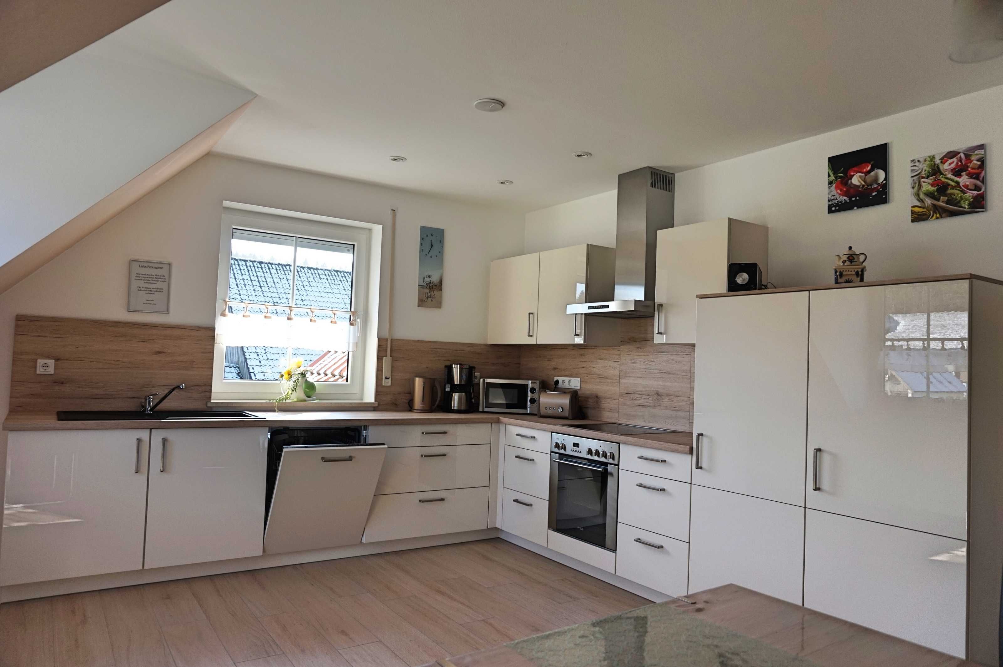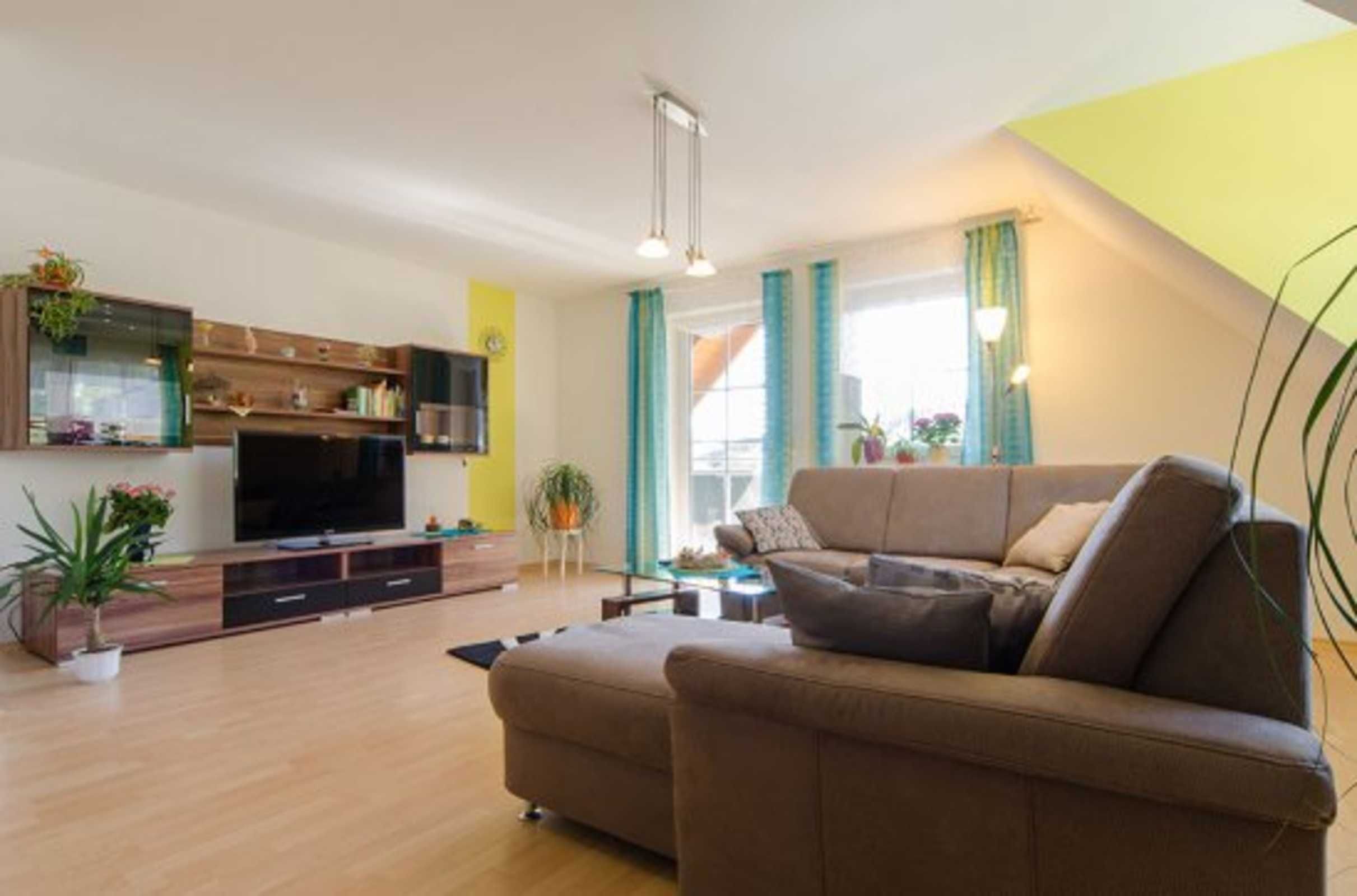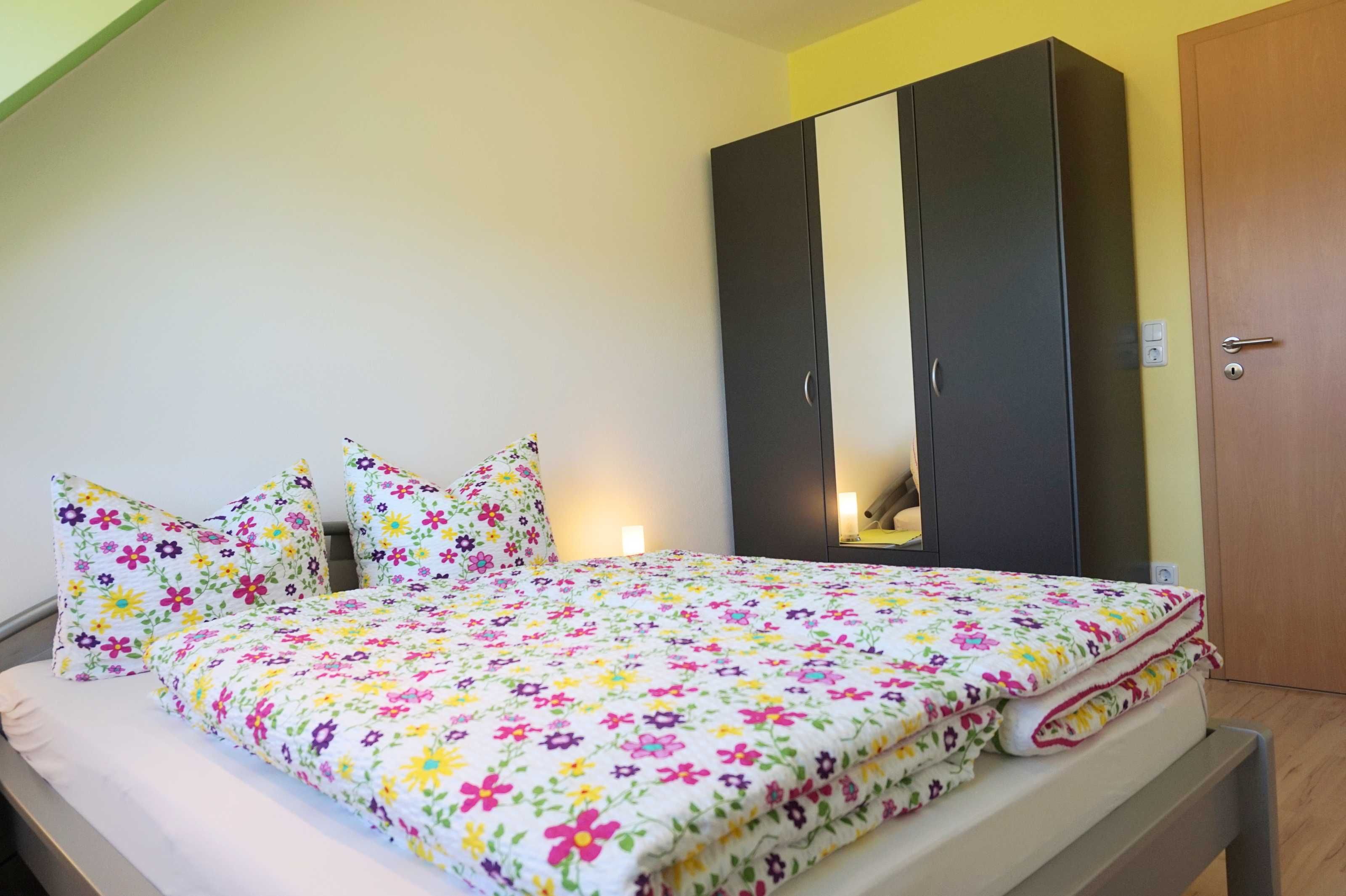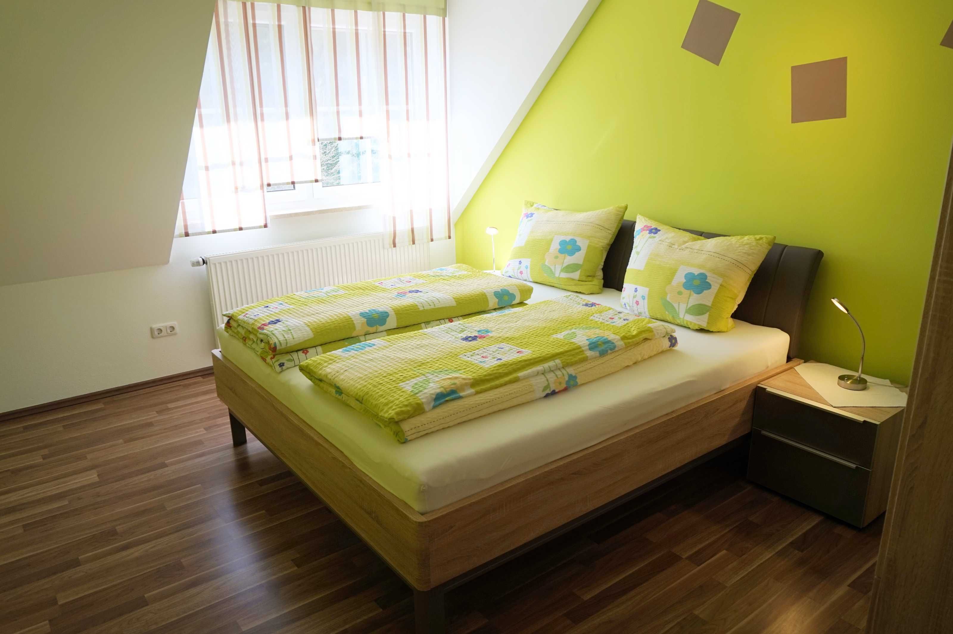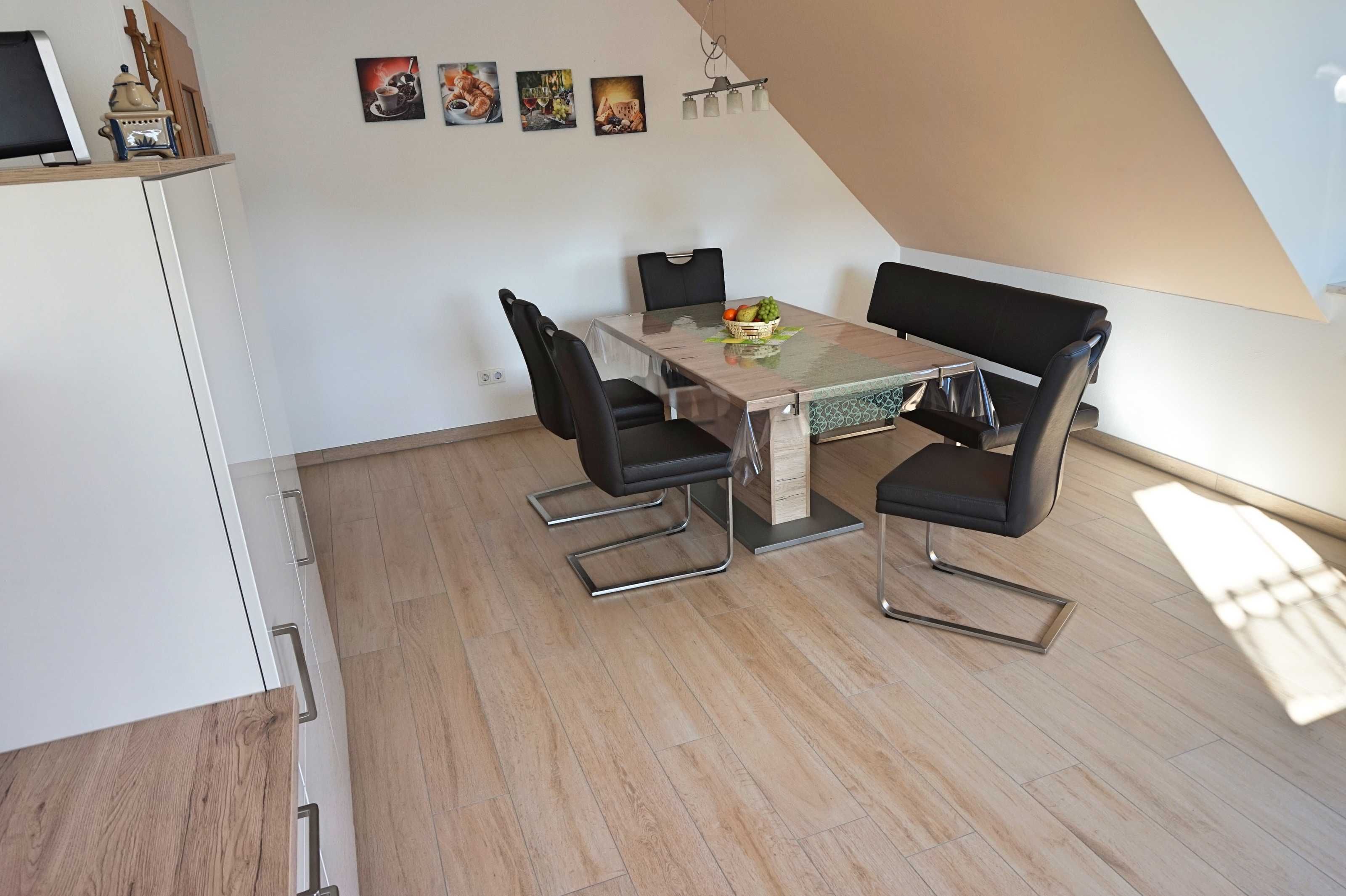 Wir bieten Ihnen eine neu komfortable Ferienwohnung für 2 bis 5 Personen (alternativ bis 7 Personen nutzbar). Unsere Ferienwohnung befindet sich im Dachgeschoss. Auf ca.100 qm Wohnfläche lässt es sich wohlfühlen mit einem Doppelschlafzimmer, zwei Kinderzimmer (ein Kinderzimmer kann auch als Doppelzimmer genutzt werden), Küche, Bad, Wohnzimmer mit Schlafcouch und Balkon.