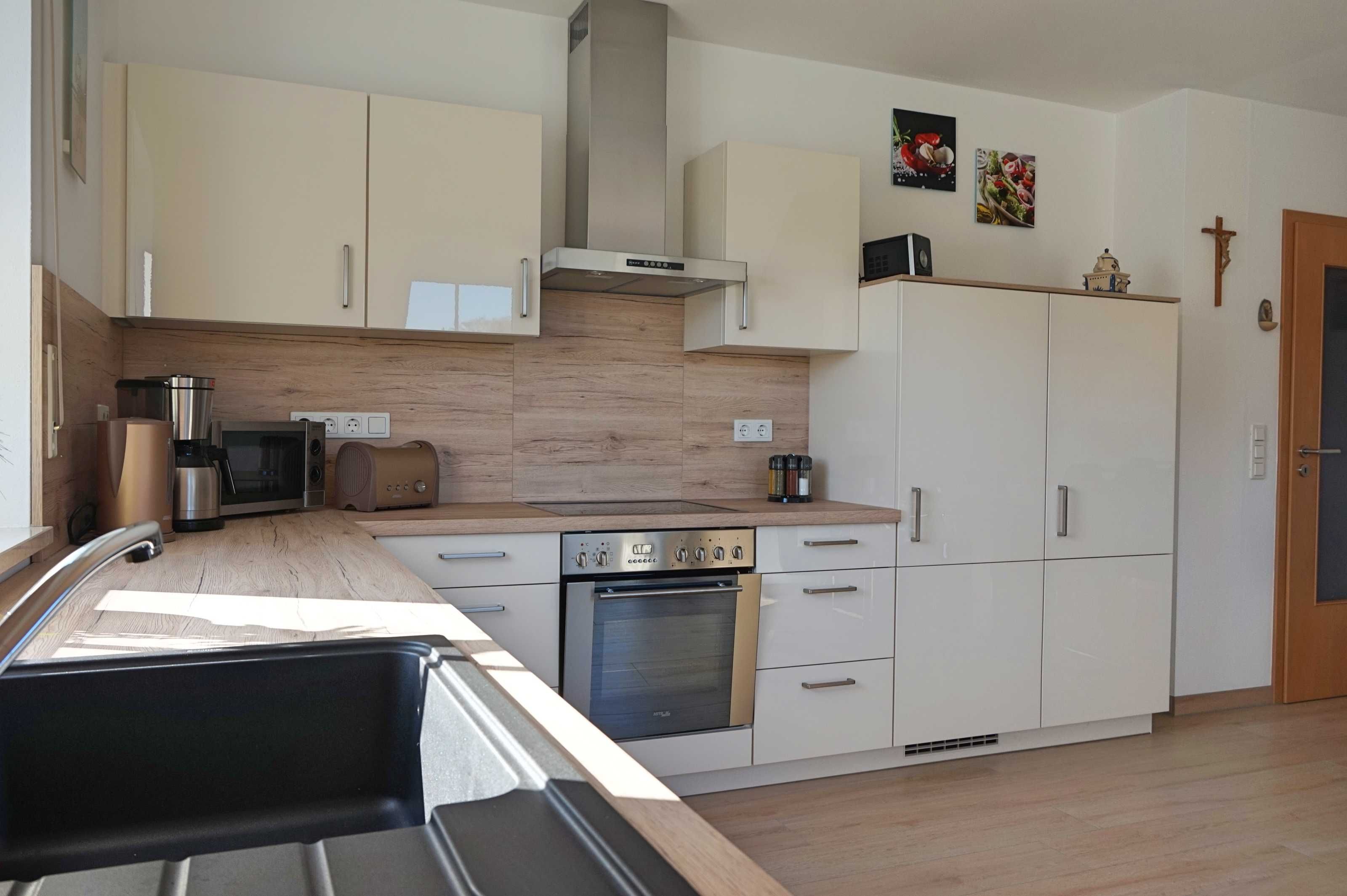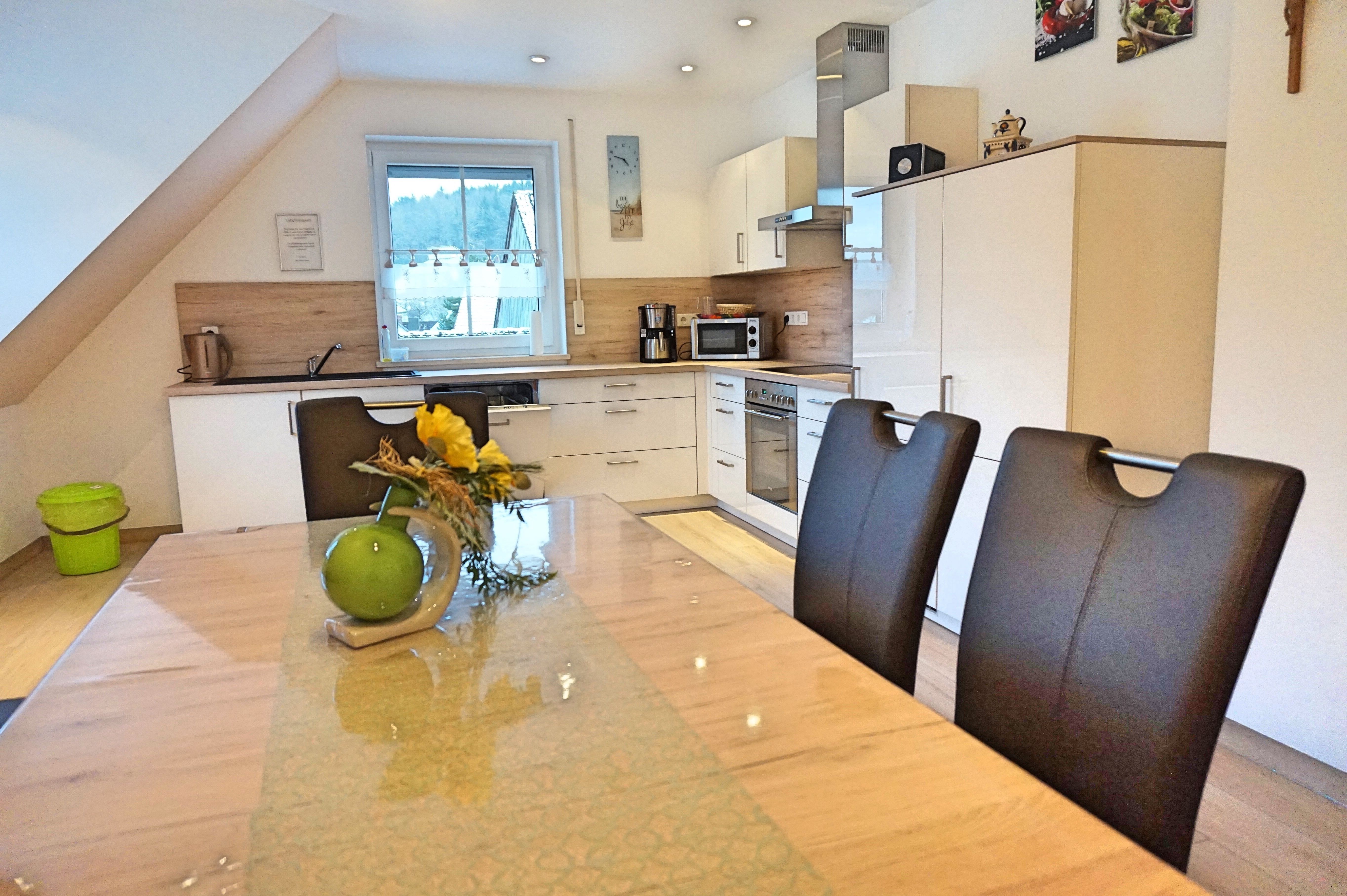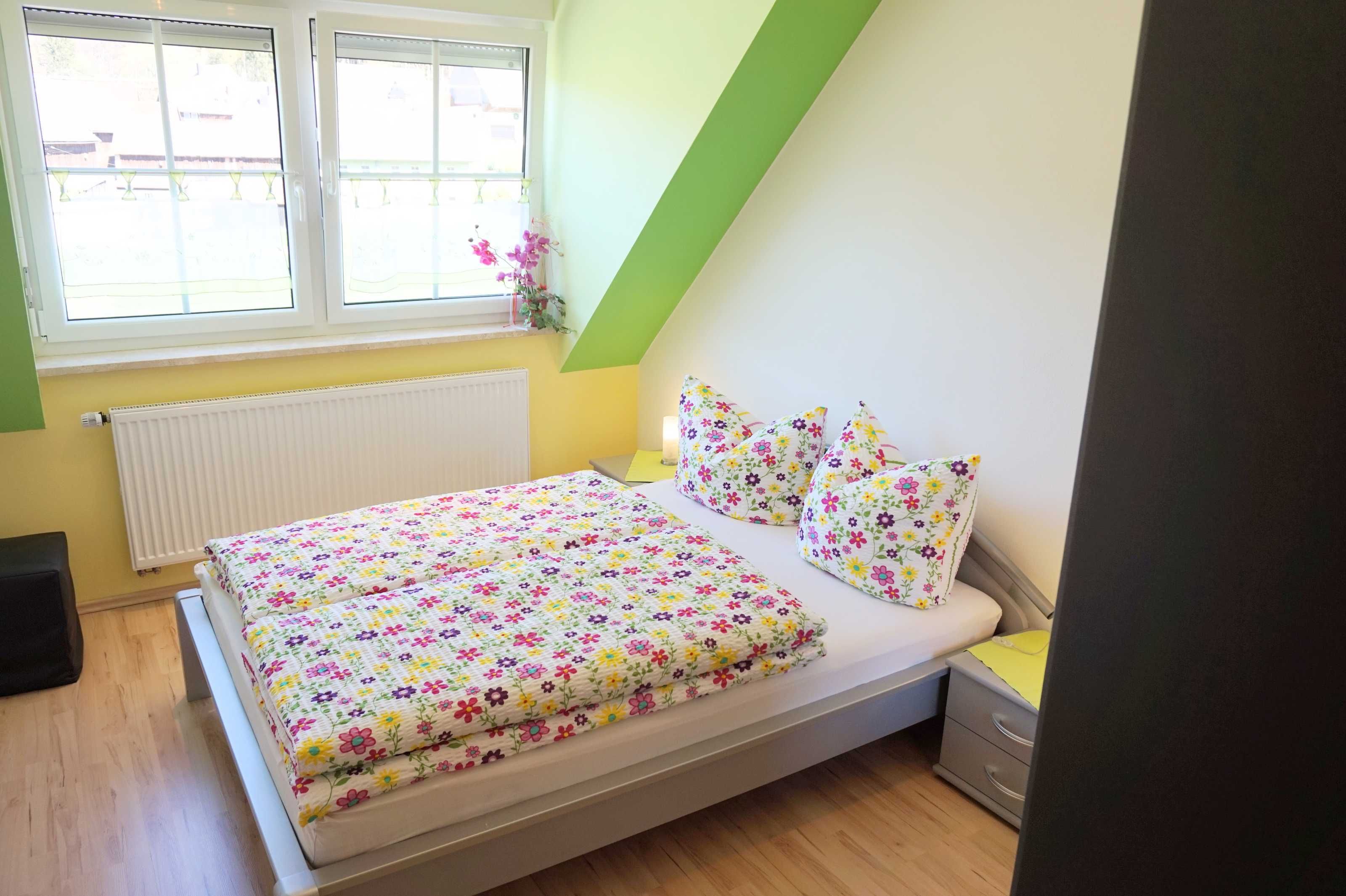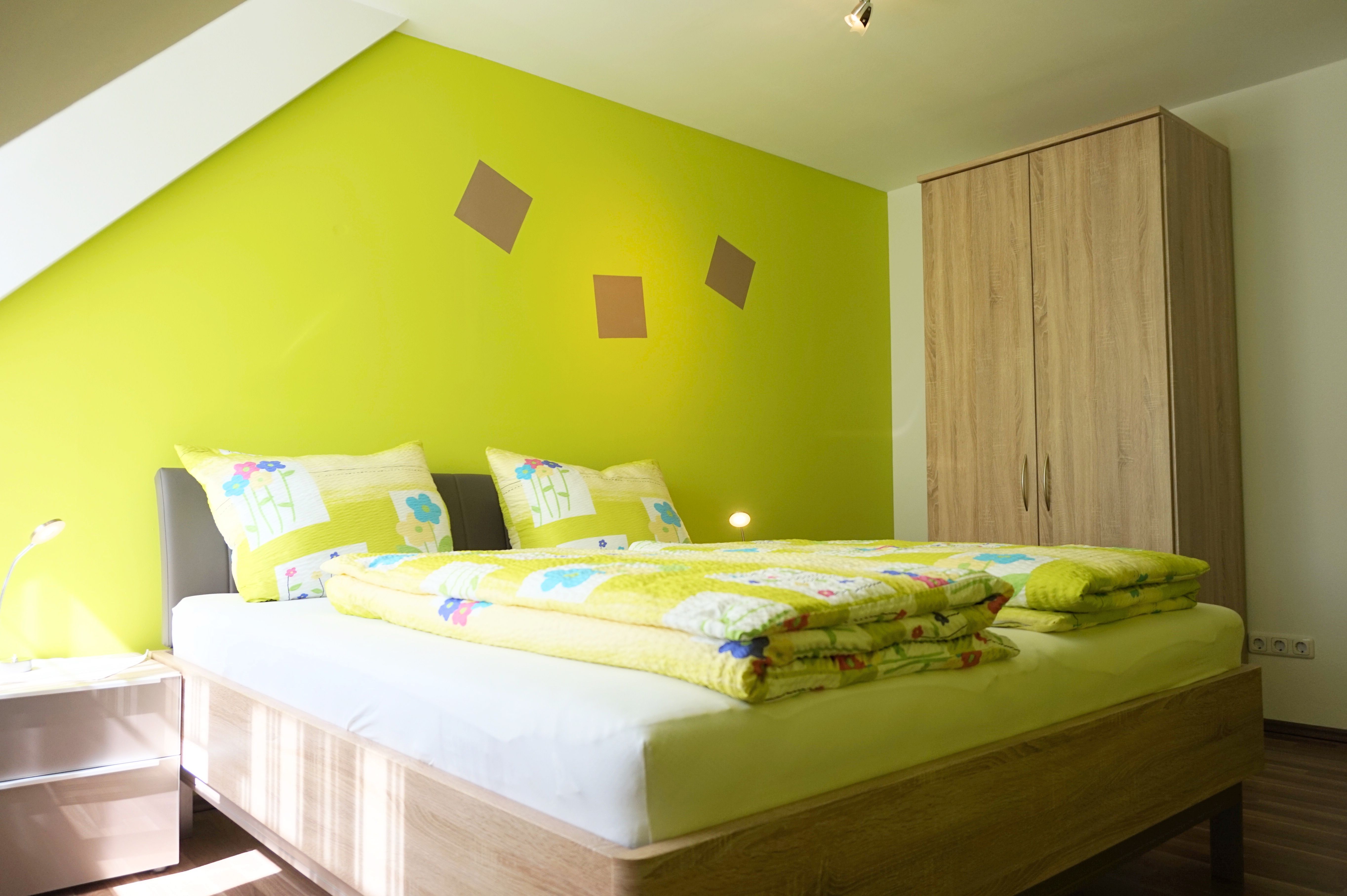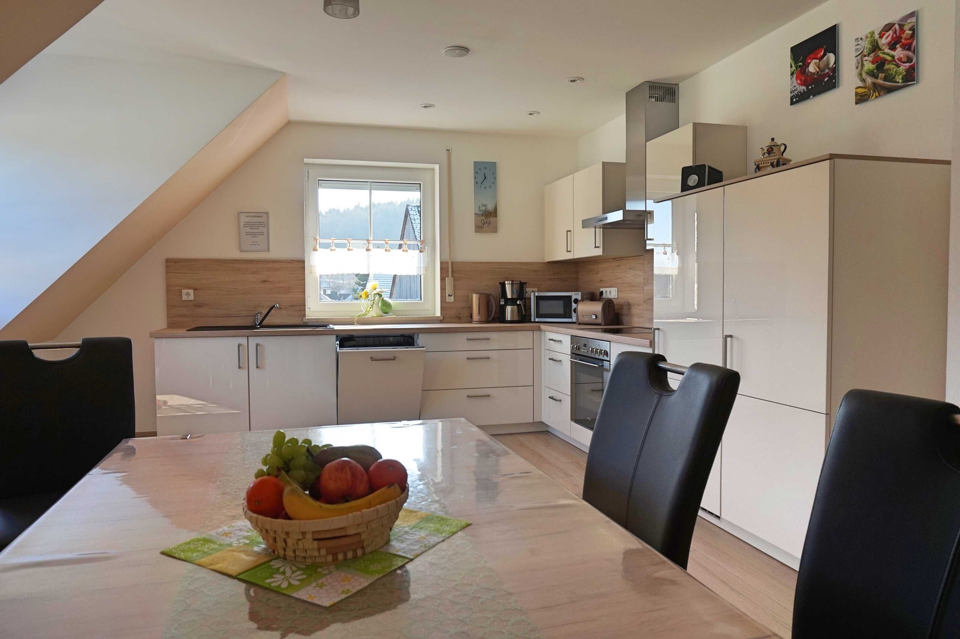 Wir bieten Ihnen eine neu komfortable Ferienwohnung für 2 bis 5 Personen (alternativ bis 7 Personen nutzbar). Unsere Ferienwohnung befindet sich im Dachgeschoss. Auf ca.100 qm Wohnfläche lässt es sich wohlfühlen mit einem Doppelschlafzimmer, zwei Kinderzimmer (ein Kinderzimmer kann auch als Doppelzimmer genutzt werden), Küche, Bad, Wohnzimmer mit Schlafcouch und Balkon.