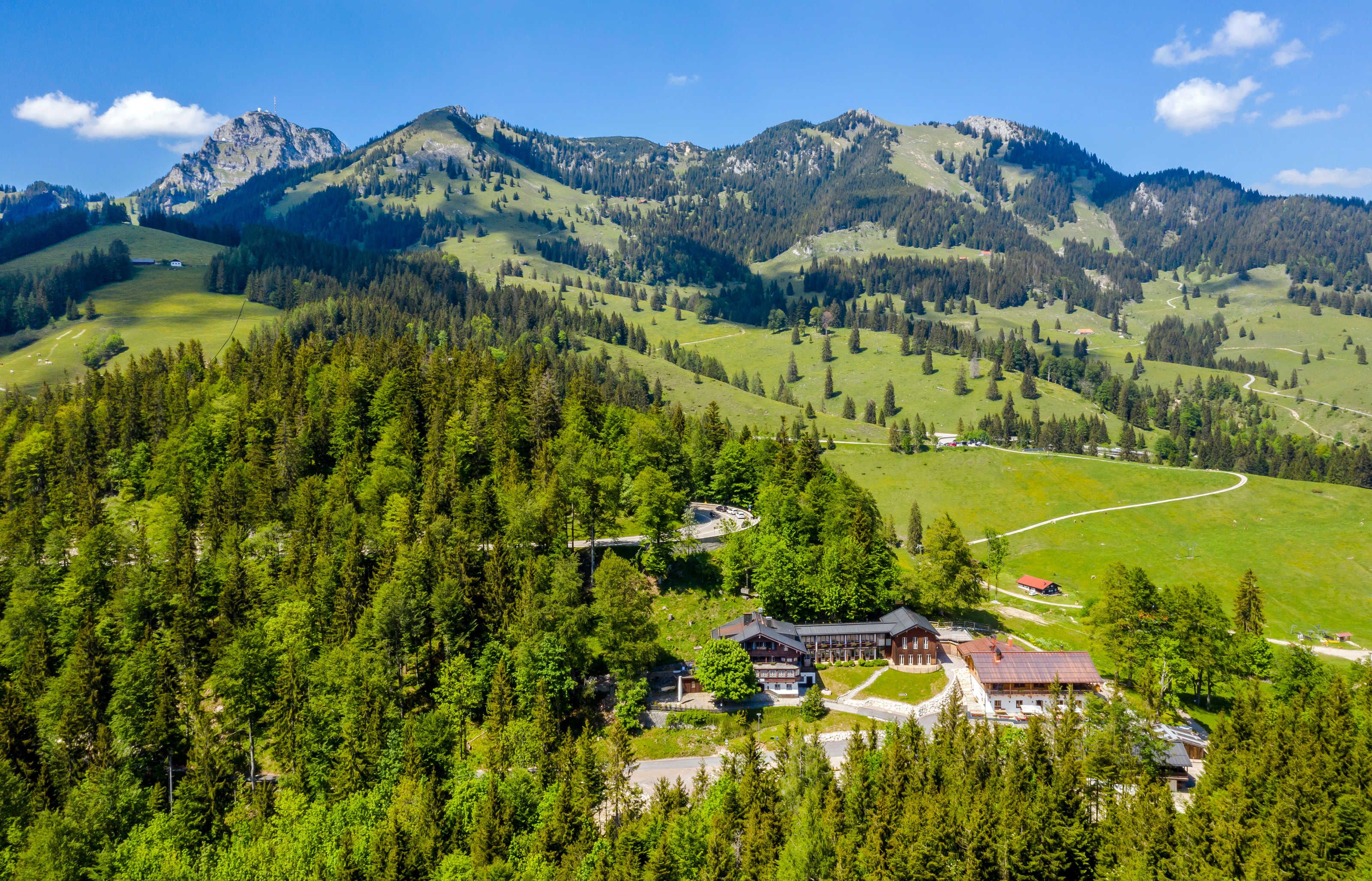 Idyllisch umgeben von Wäldern und Almen auf 1.100 m ü. NN im wunderschönen Wendelsteingebiet liegt das Berghotel Sudelfeld direkt am Skigebiet Sudelfeld. Wanderer, Familien, Mountainbiker und Wintersportler finden hier einen traumhaften Ort für ihren Urlaub inmitten der Natur der bayrischen Bergwelt. Der einzigartige Blick auf die faszinierenden Berge und Almen lädt jeden Morgen zu einer neuen Wanderung oder einer Mountainbike-Tour ein. Weit ab vom Verkehr können Sie die malerische Naturkulisse so richtig genießen.