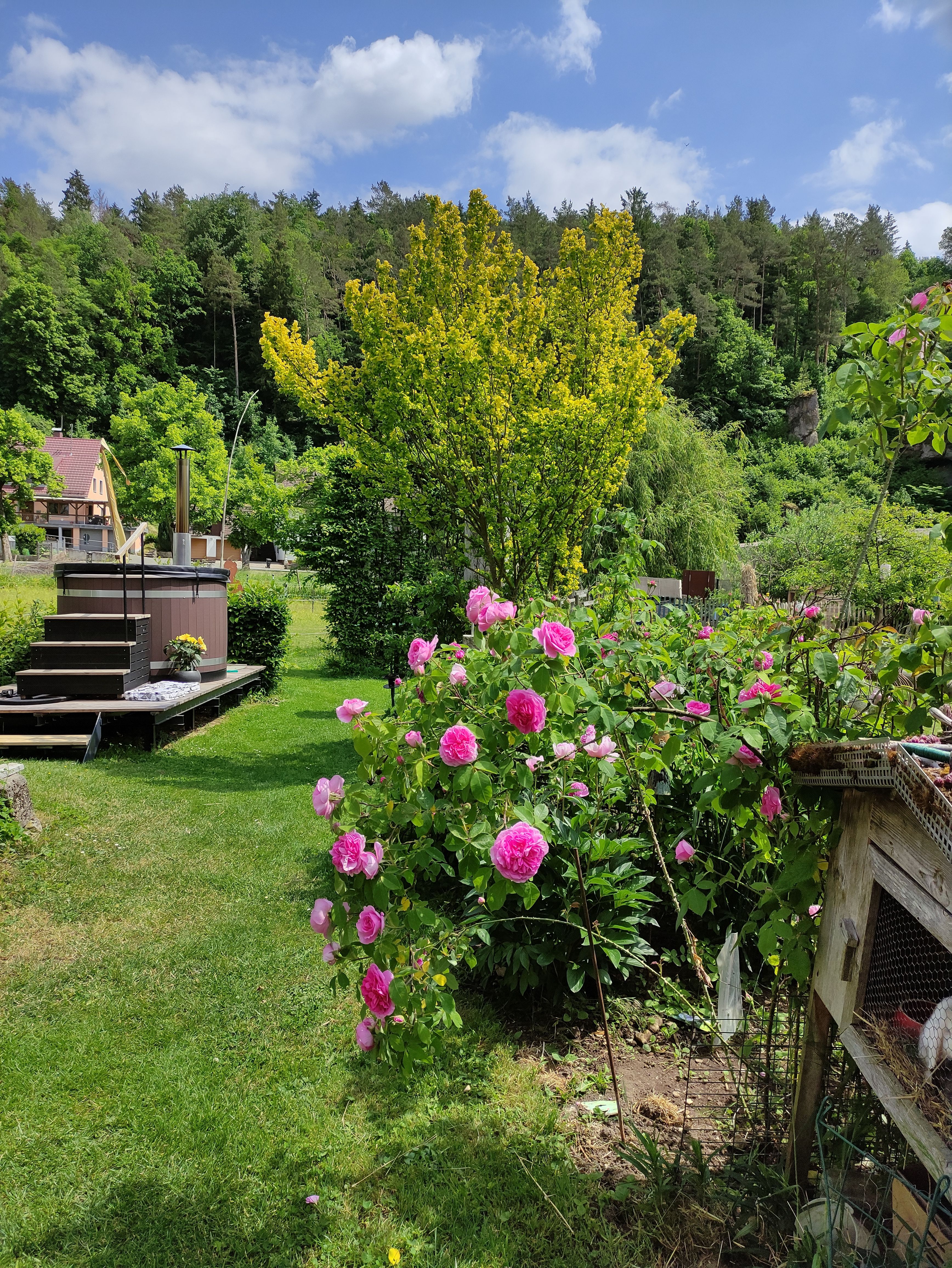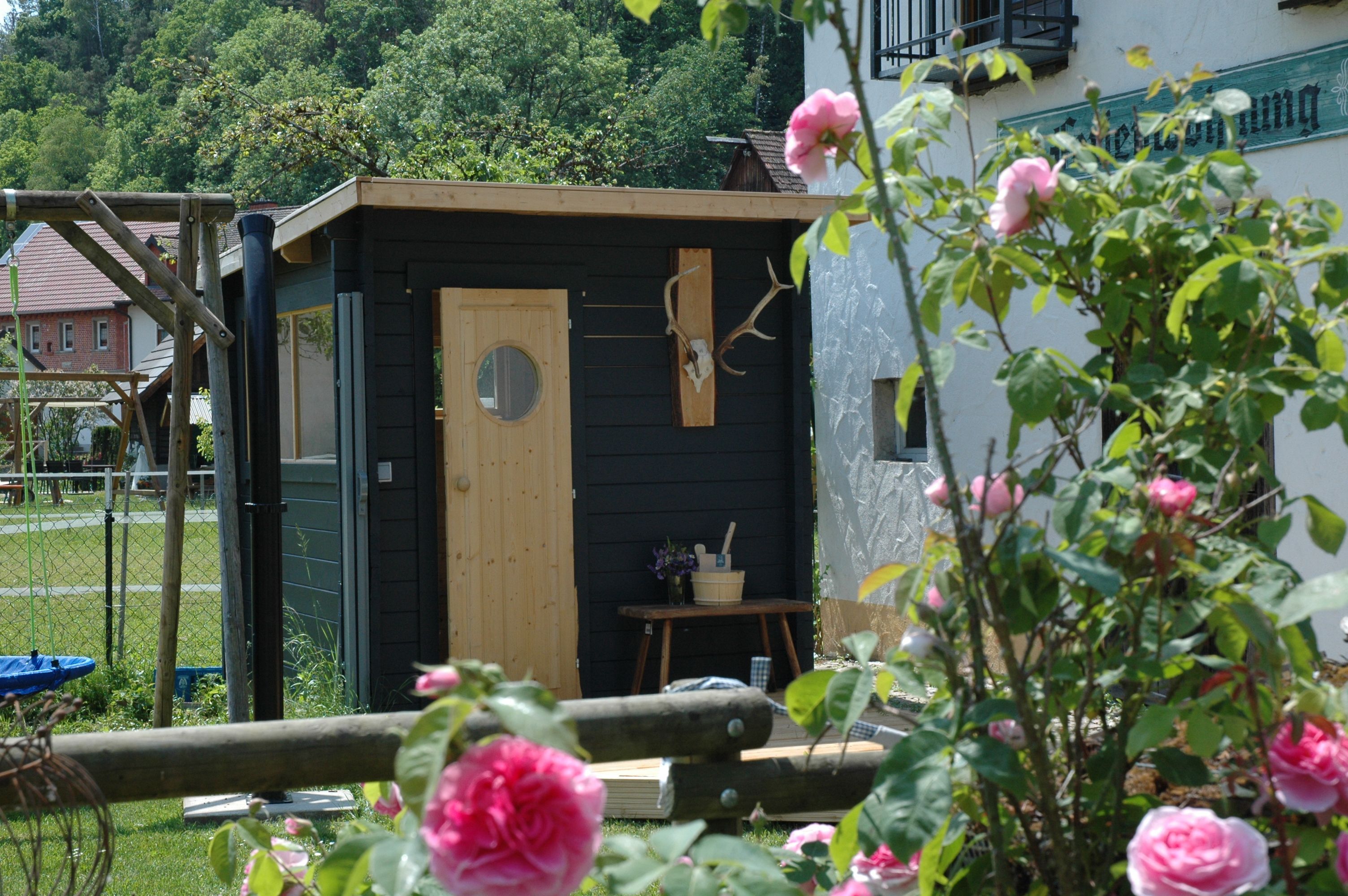 Vom großen Balkon schweift der Blick ins malerische Wiesenttal und über den weitläufigen Bauerngarten mit duftenden Kräutern und Rosen. Hier fühlen sich auch unsere Hasen, Hühner, Katzen und Enten pudelwohl. Wer mehr über 'Wilde Kräuter' erfahren möchte, geht mit der Hausherrin - einer ausgebildeten Kräuterpädagogin - auf Entdeckertour.