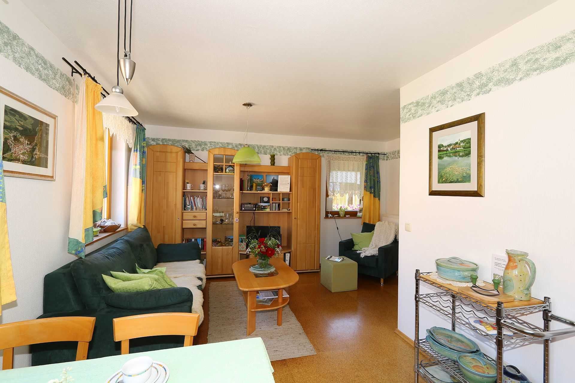Die Ferienwohnung befindet sich im 1. Stock eines separaten Gebäudes. Liebevoll und sehr komfortabel ausgestattet verfügt sie über zwei Schlafzimmer (Doppelbett, 2 Betten) einen gemütlichen Wohn-Eßbereich und über ein großes Tageslichtbad. Außerdem gibt es einen großen Balkon.