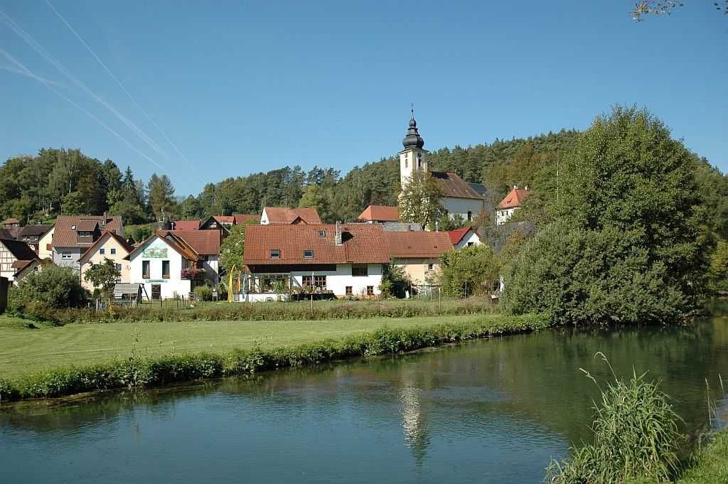 Unser sympathisches Landhaus liegt inmitten eines 300 Seelen-Dorfes direkt an der Wiesent. Von bizarren Felsen gesäumt, schmiegt sich Nankendorf sanft in den romantischen Talgrund mit seinem leise murmelnden Wasser.