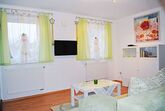 Nach einem erlebnisreichen und aktiven Tag entspannen Sie im Wohnbereich auf der gemütlichen Couch, die bei Bedarf mit wenigen einfachen Handgriffen auch zum Schlafsofa umgewandelt werden kann. Stilvolle helle Möbel unterstreichen die wohnliche Atmosphäre und laden Sie ein, sich wie daheim zu fühlen. So kann der Tag bei einem guten Film über SAT-TV harmonisch ausklingen.