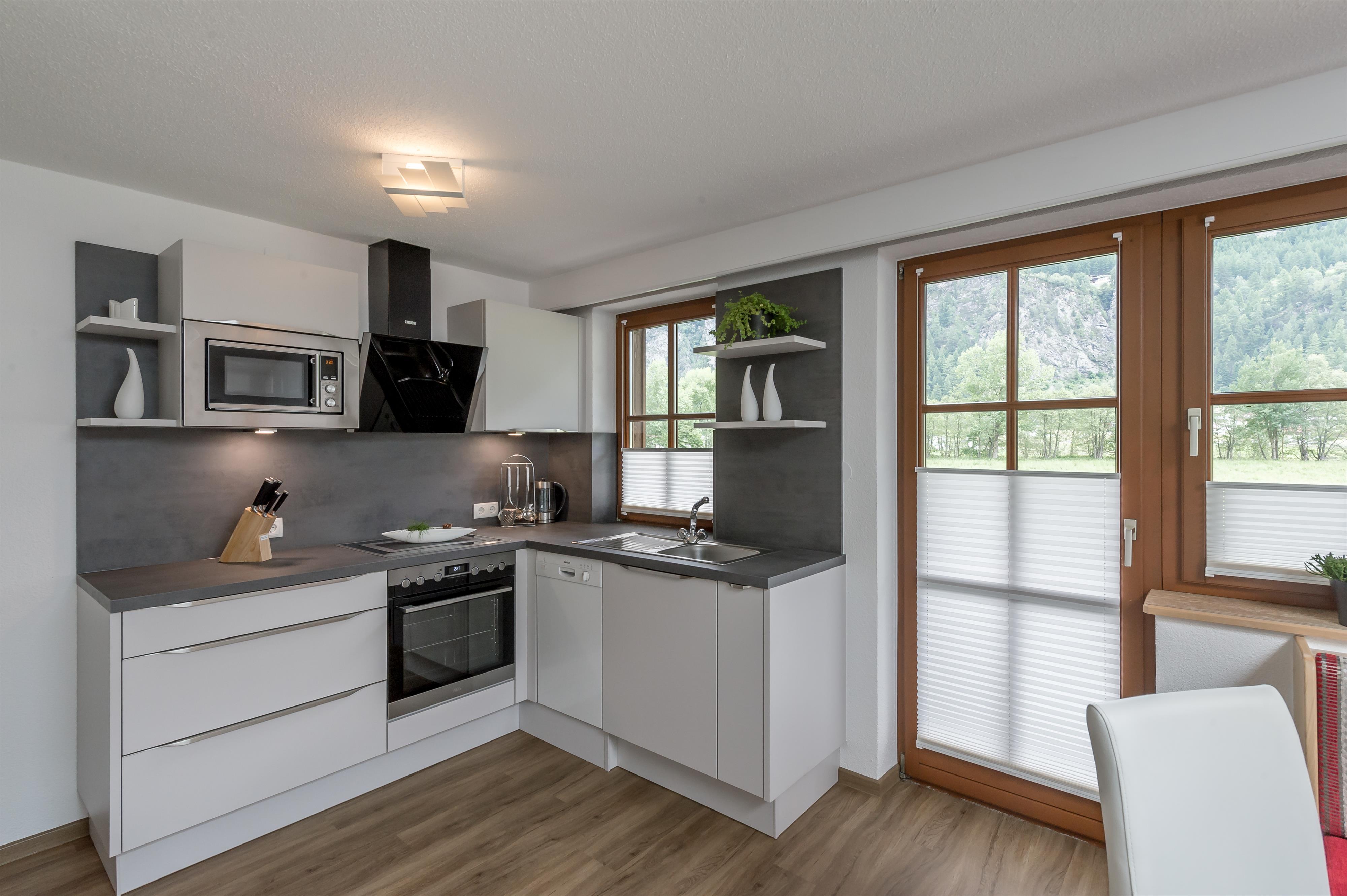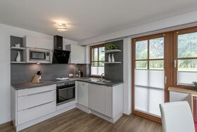 1 komplett ausgestattete Küche mit Essecke, Sat-TV, Ceranfeld, Backrohr, Spülmaschine, Mikrowelle, Kühlschrank, Wasserkocher, Espresso Kaffeemaschine